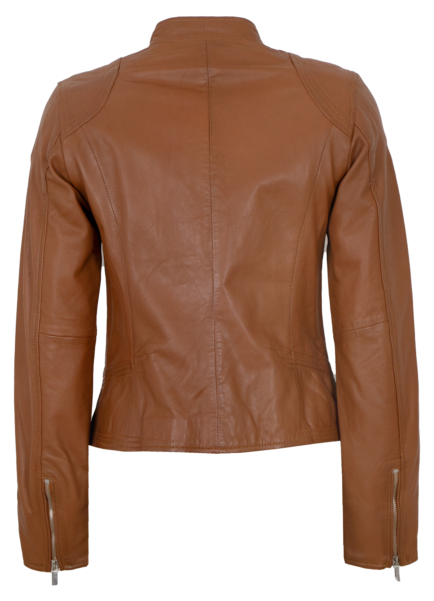 Diese Jacke verfügt über zwei praktische seitliche Taschen mit Reißverschluss sowie eine Brusttasche, ebenfalls mit Reißverschluss, um Ihre Wertsachen sicher zu verstauen. Die Schultern sowie der seitliche Abschlussbund sind durch gezielte Abnäher und Ziernähte betont, was der Jacke eine modische Note verleiht und gleichzeitig für eine optimale Passform sorgt. Ob für einen lässigen Alltag oder besondere Anlässe – diese Lederjacke wird garantiert zum Lieblingsstück in Ihrem Kleiderschrank!