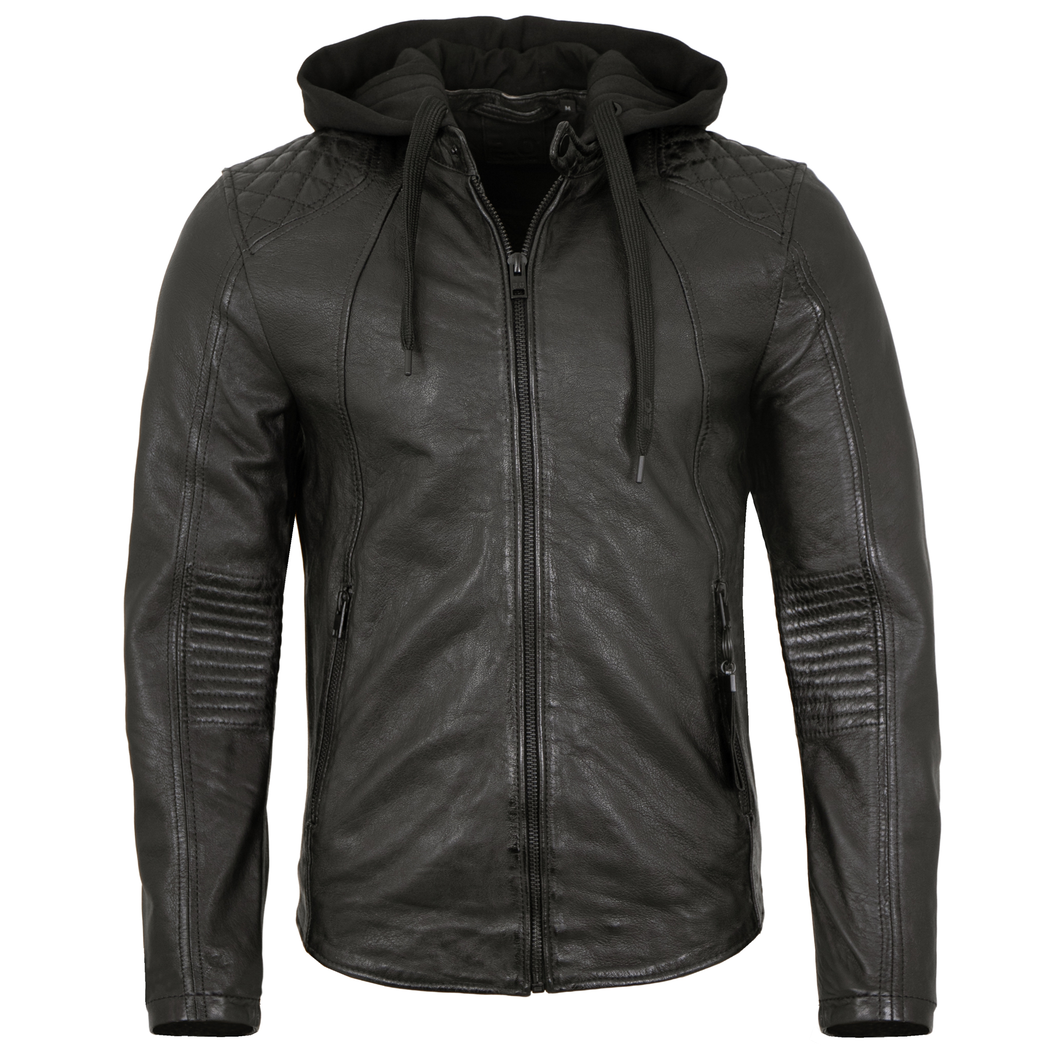 2.0 by Mauritius - Herren Lederjacke Kapuze Lammnappa schwarz-14253-7