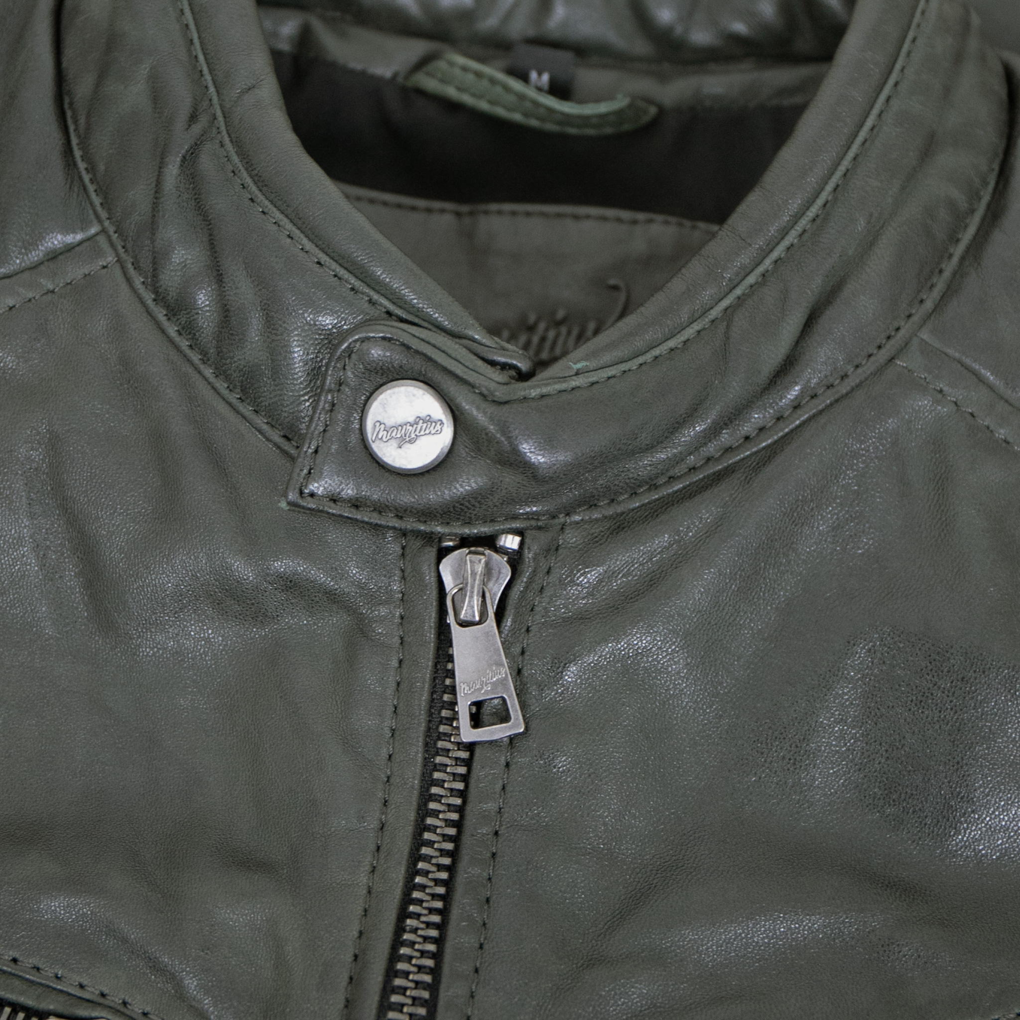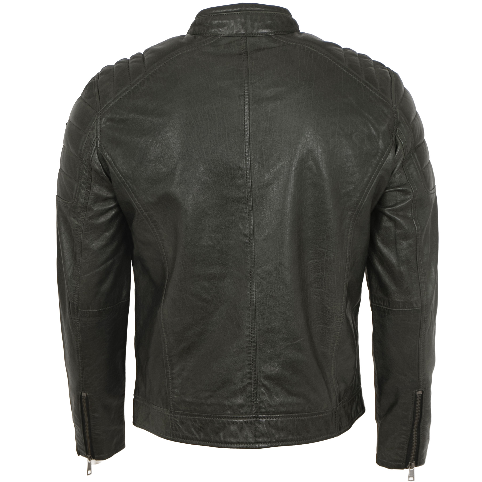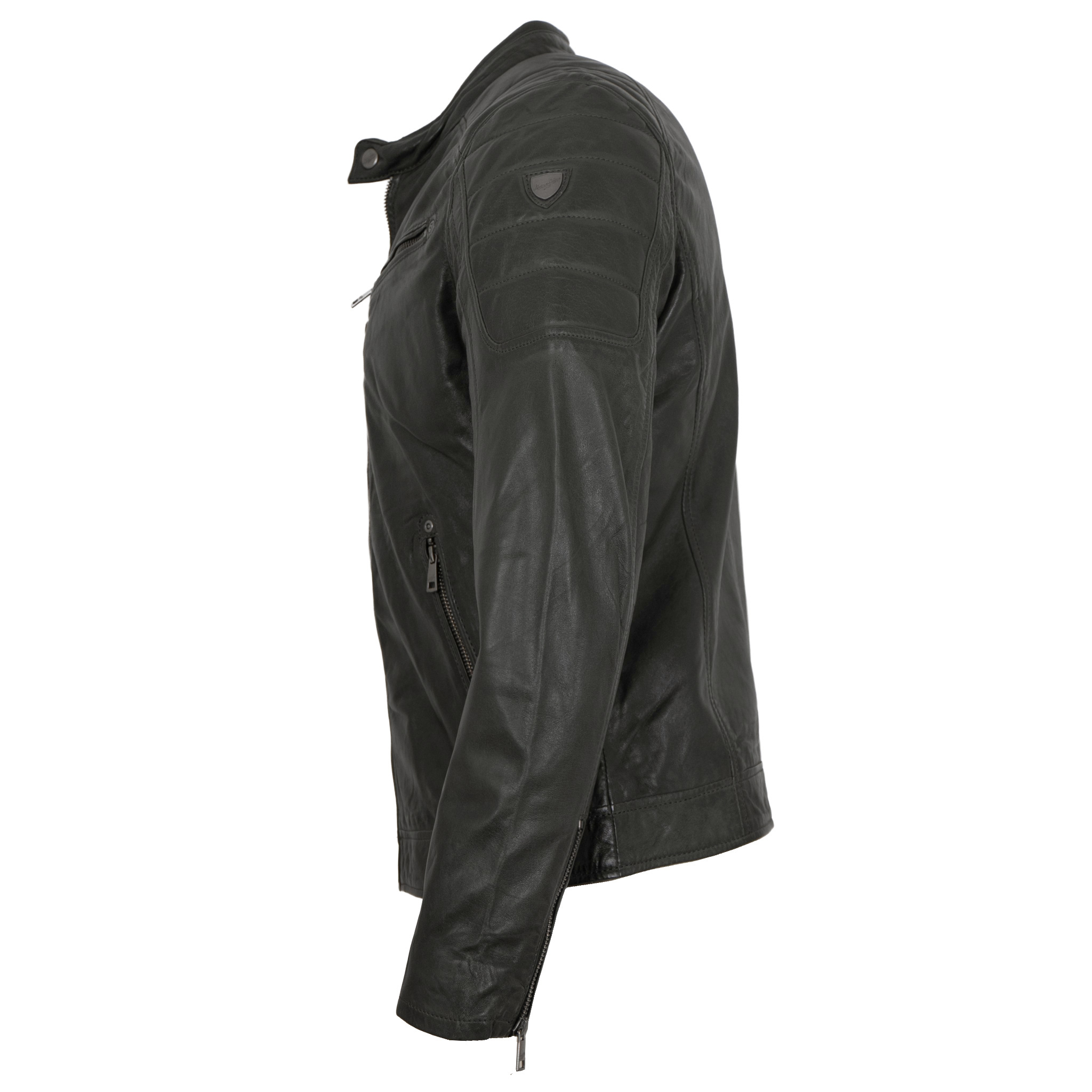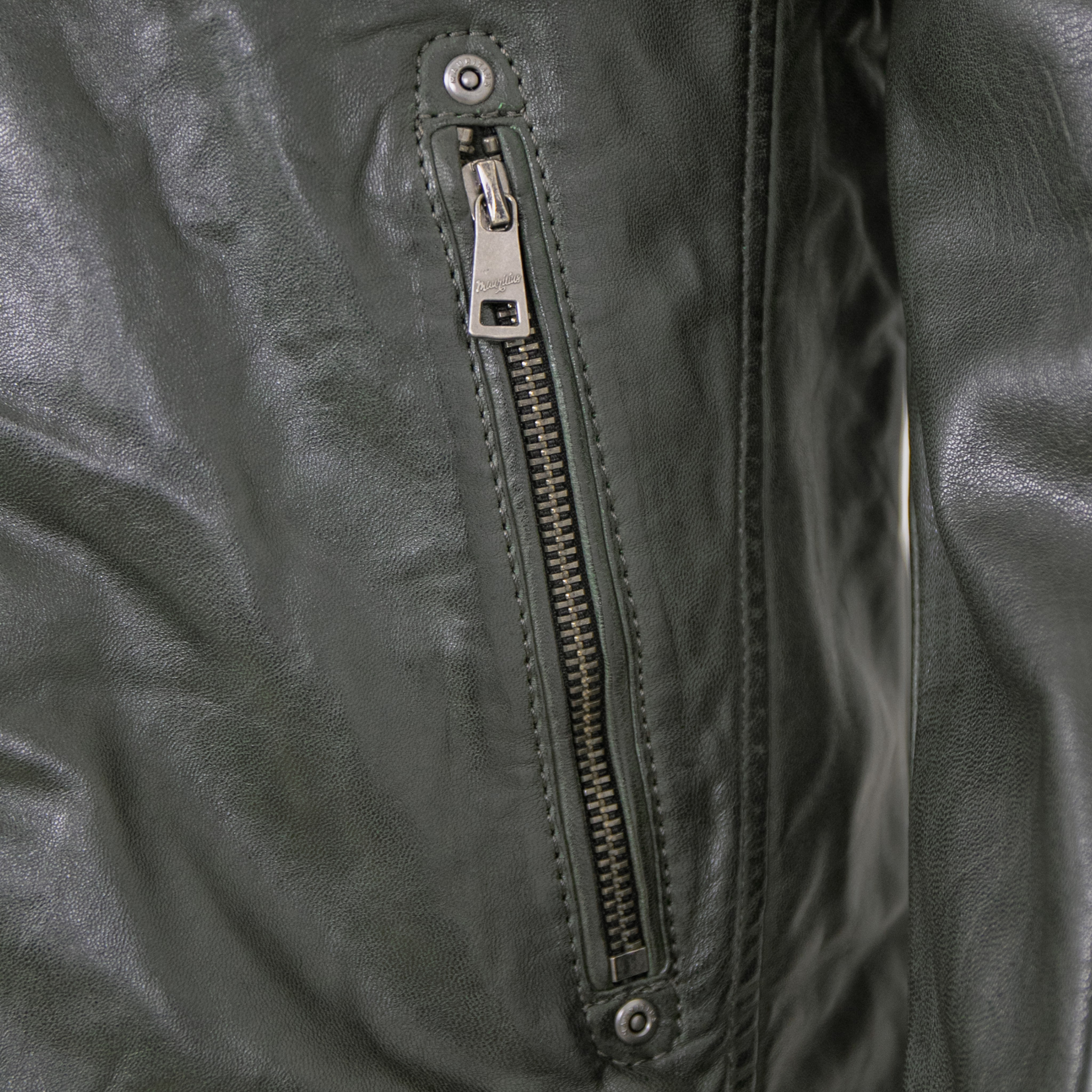 Mauritius - Herren Lederjacke Bikerjacke Lammnappa dark green