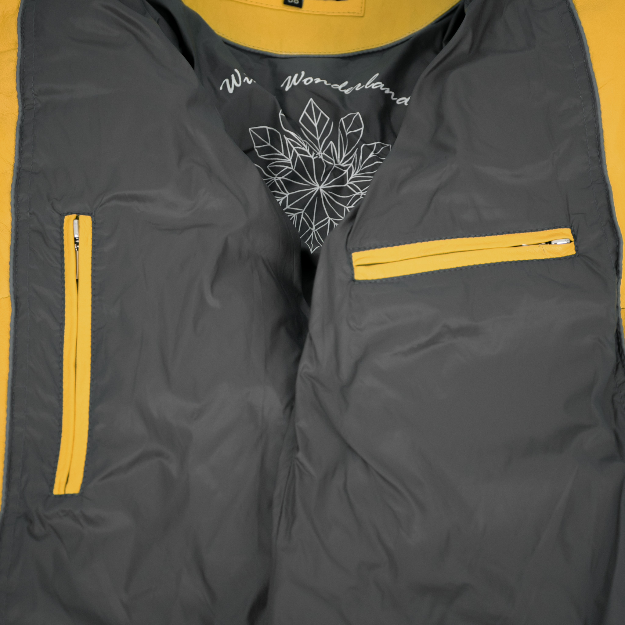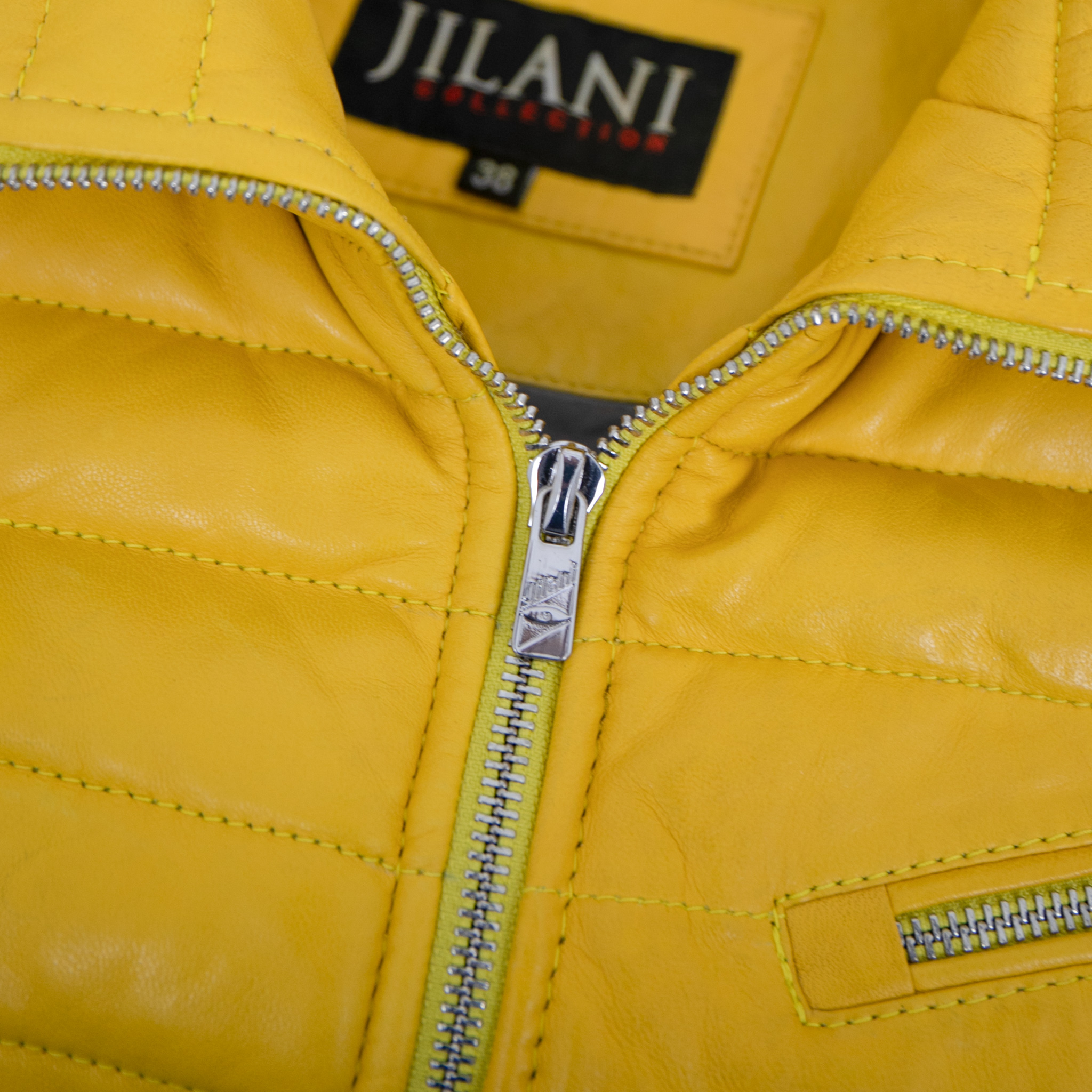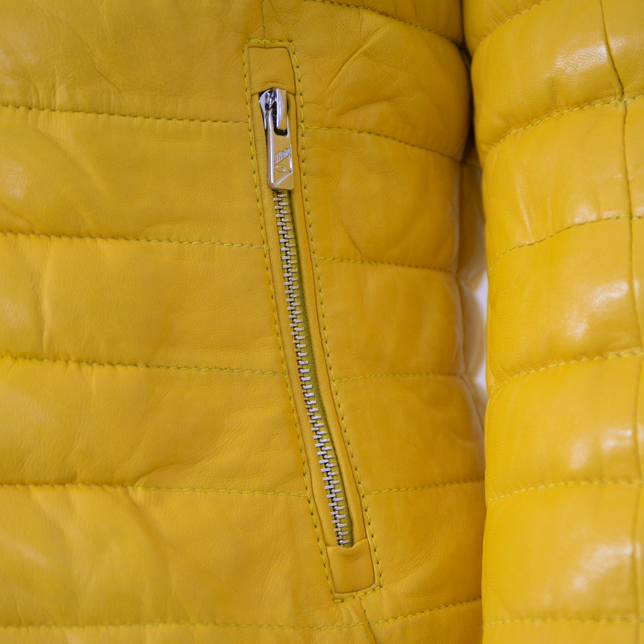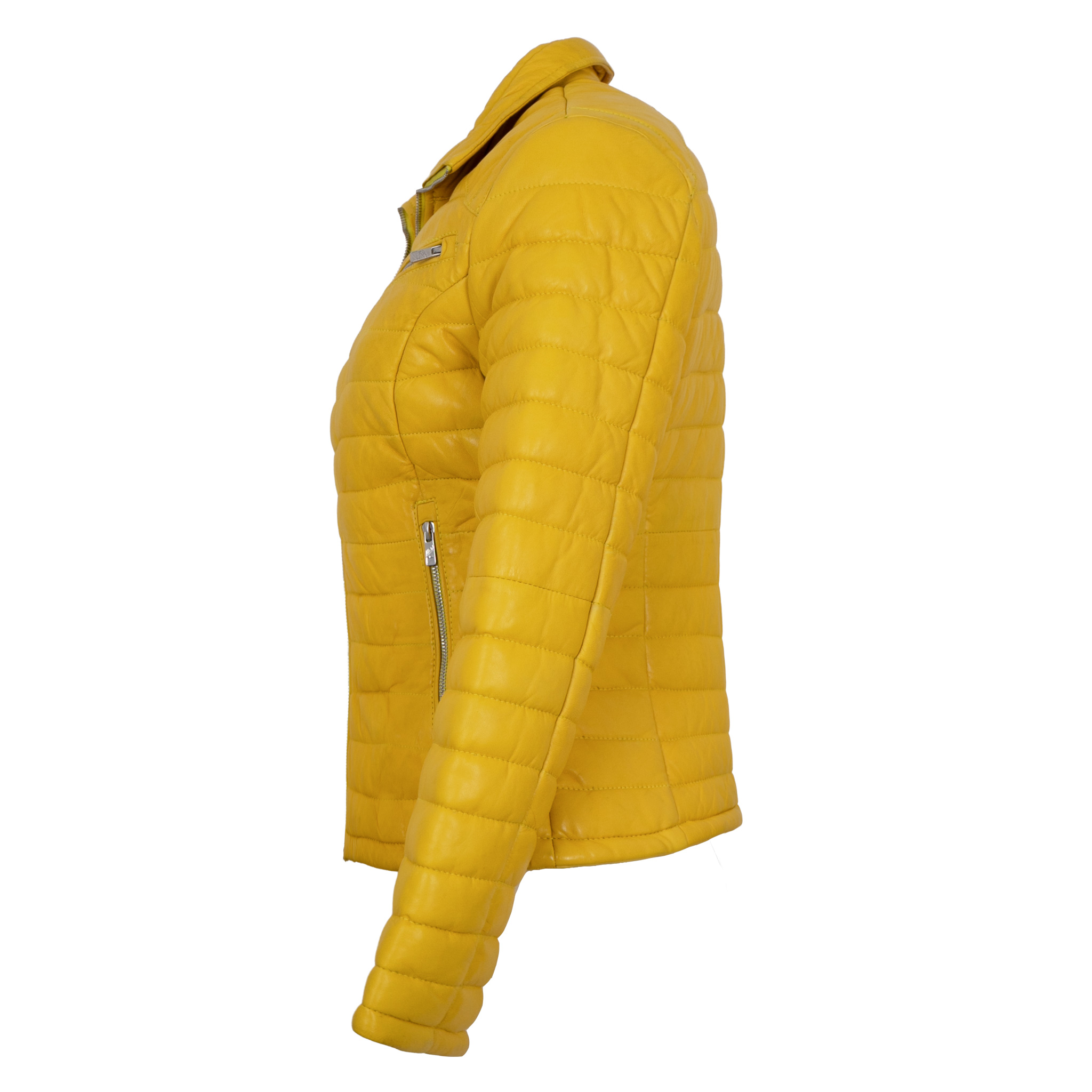 Jilani Collection - Damen Lederjacke Steppjacke Lammnappa gelb