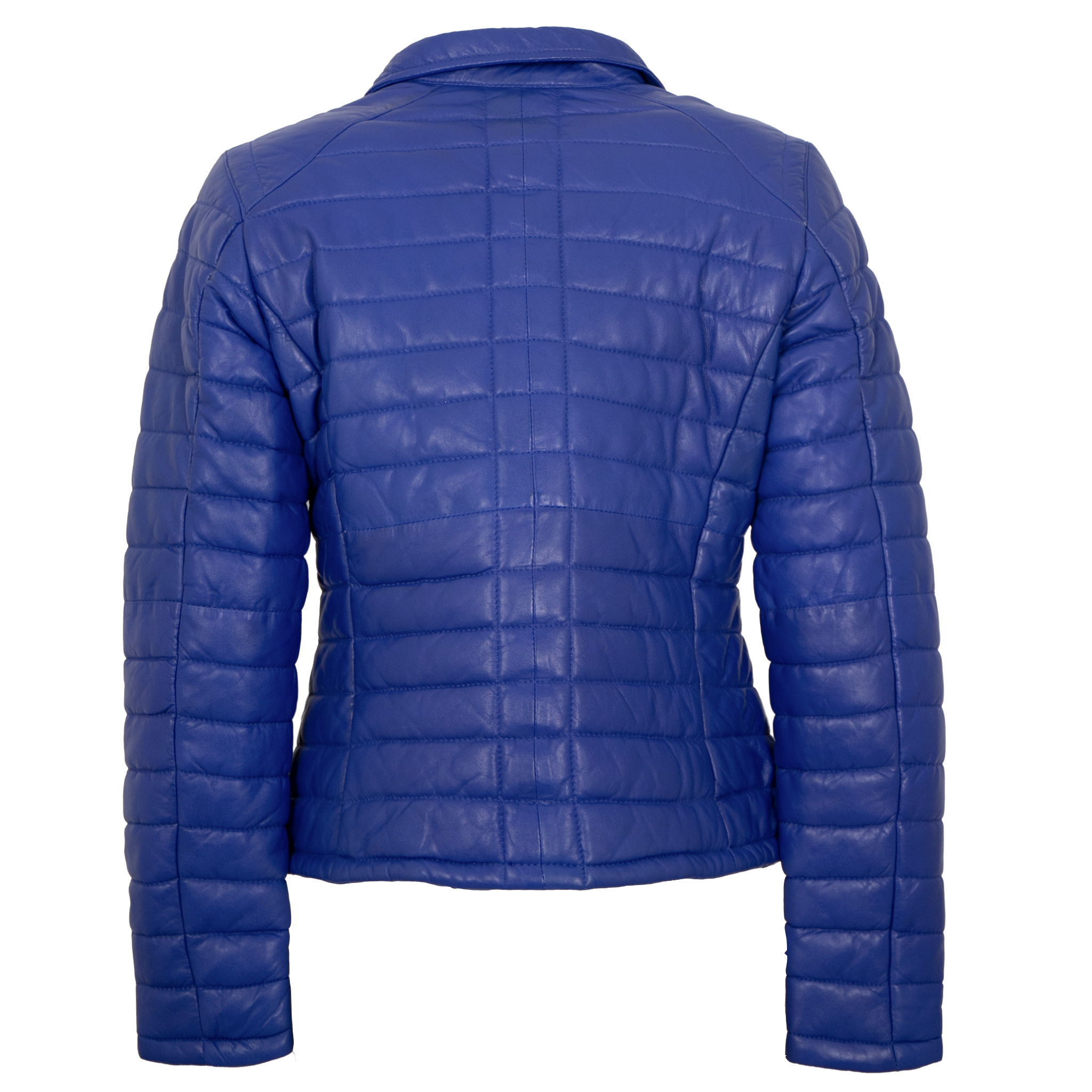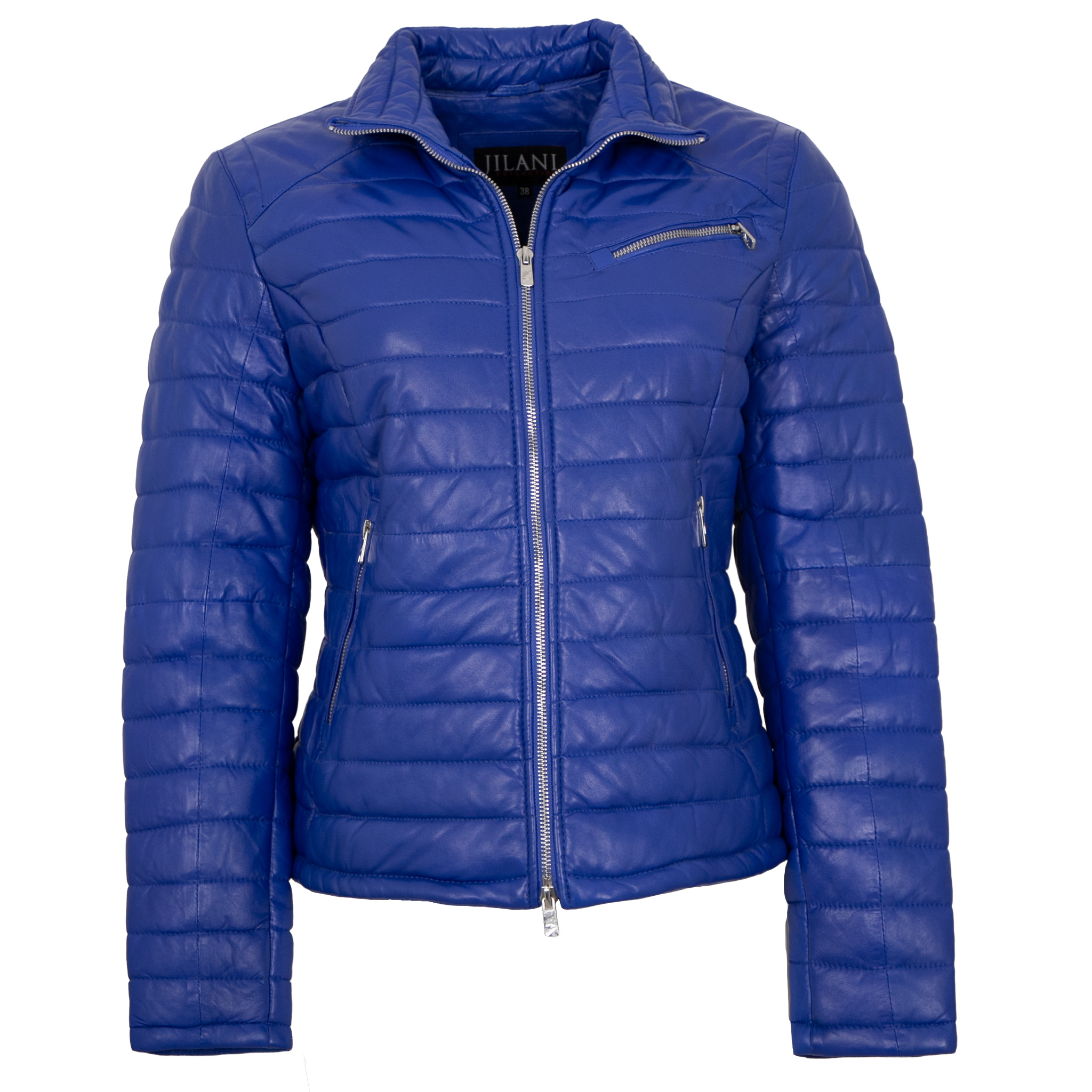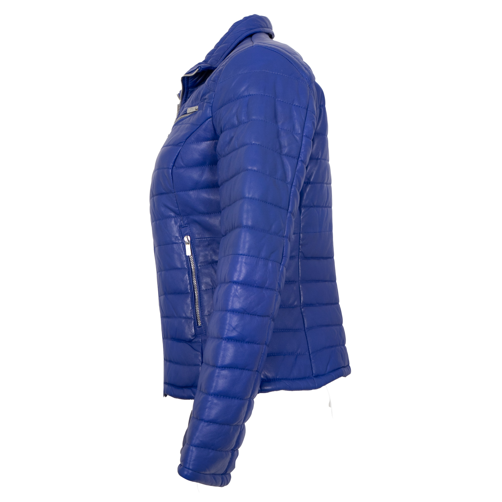 Jilani Collection - Damen Lederjacke Steppjacke Lammnappa blau