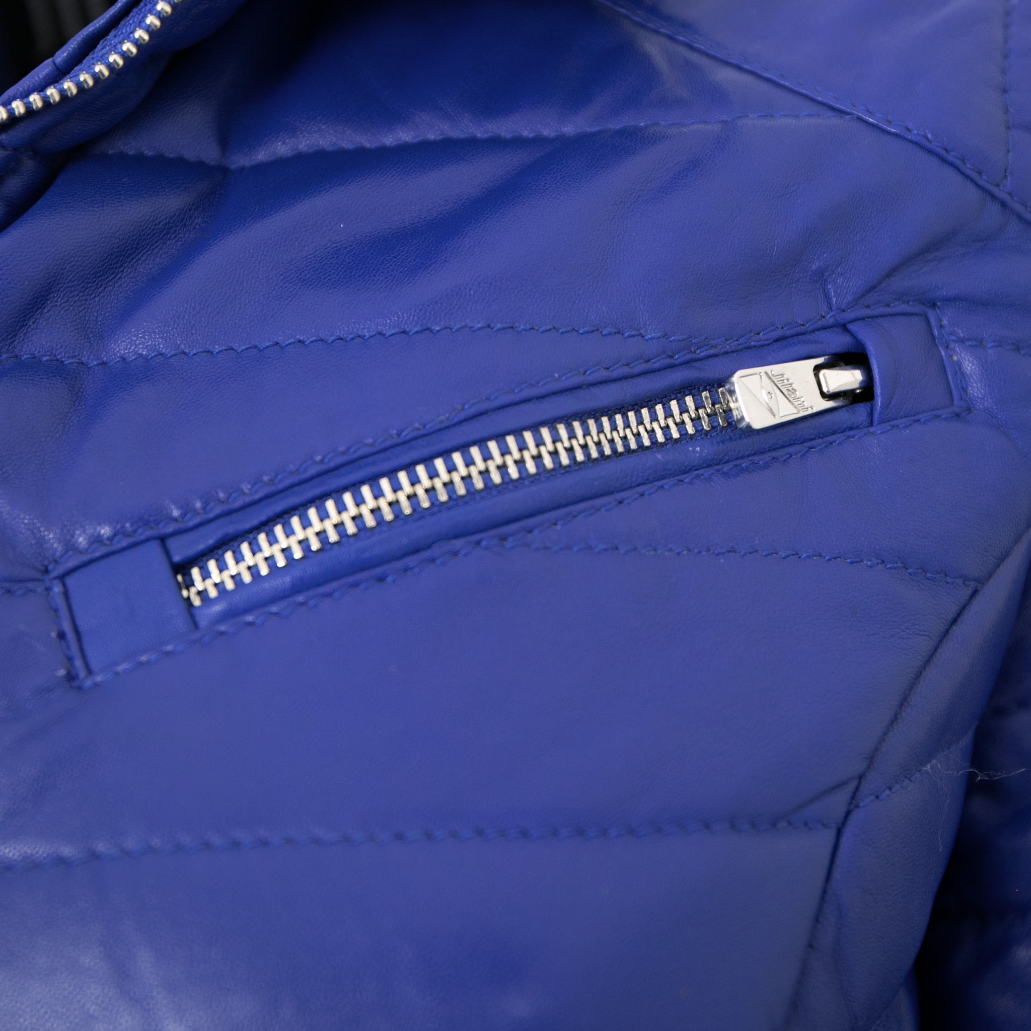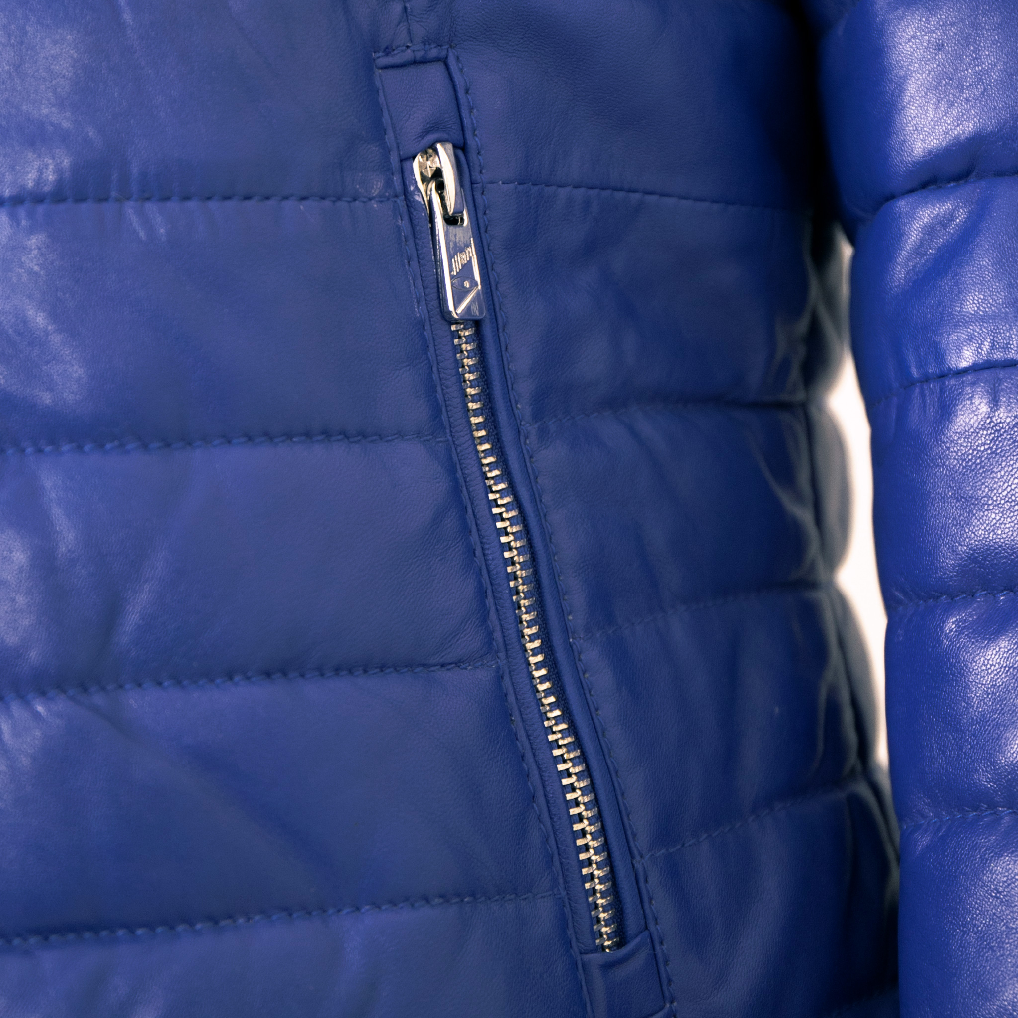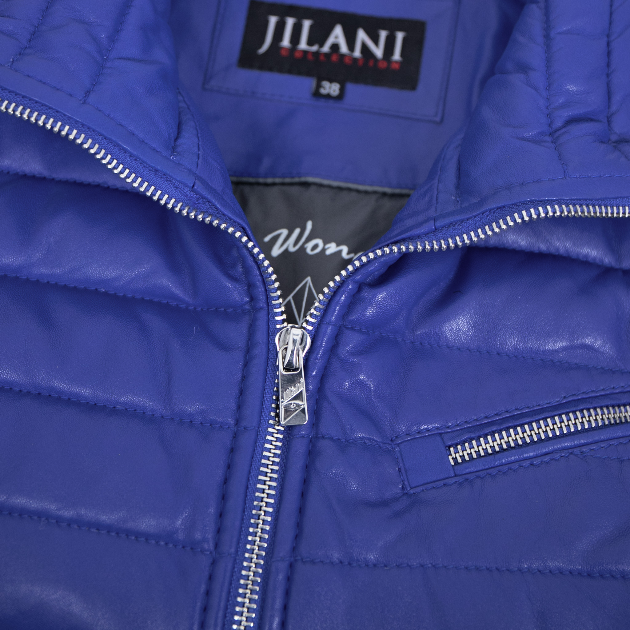 Jilani Collection - Damen Lederjacke Steppjacke Lammnappa blau