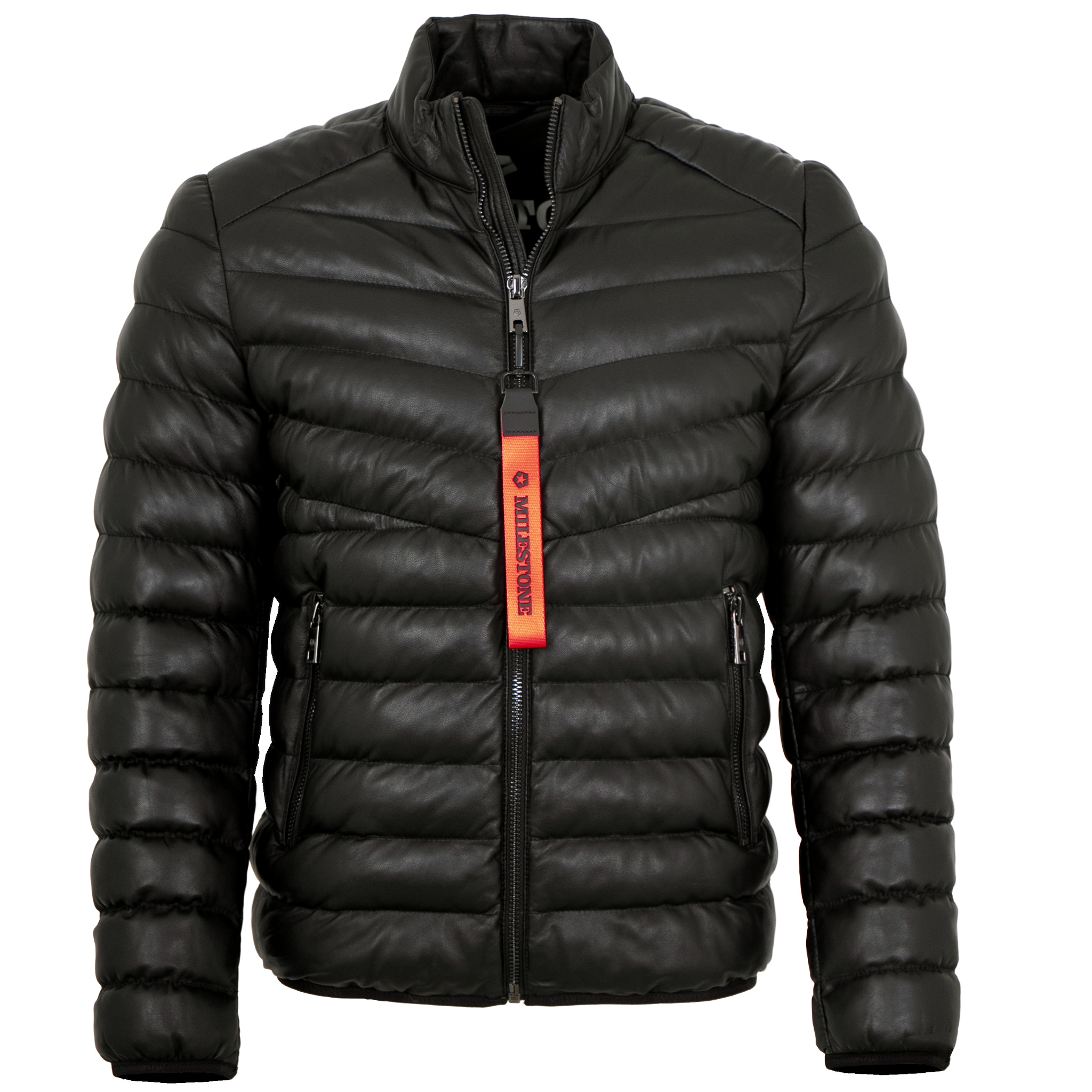 Milestone - Herren Lederjacke Steppjacke Lammnappa schwarz