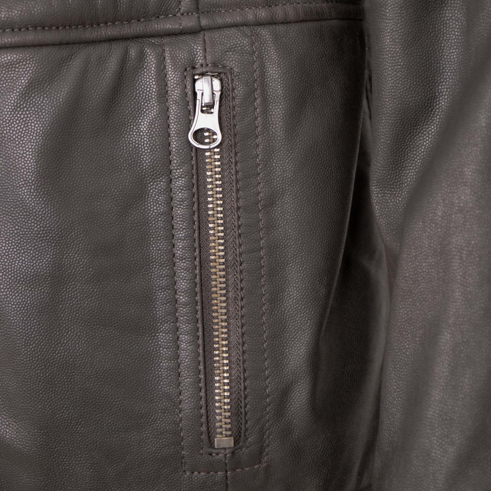Im Inneren der Jacke sorgt weiches Kunstfell für ein angenehmes Tragegefühl und spendet zusätzliche Wärme. Die markant gearbeiteten Nähte verleihen der Jacke eine robuste Optik und heben die Qualität ihrer Verarbeitung hervor. Ein doppelter Schnallenverschluss am Kragen rundet den Look optimal ab und setzt stimmige Akzente. Diese Herren Lederjacke ist die perfekte Ergänzung für einen lässigen, coolen Style.