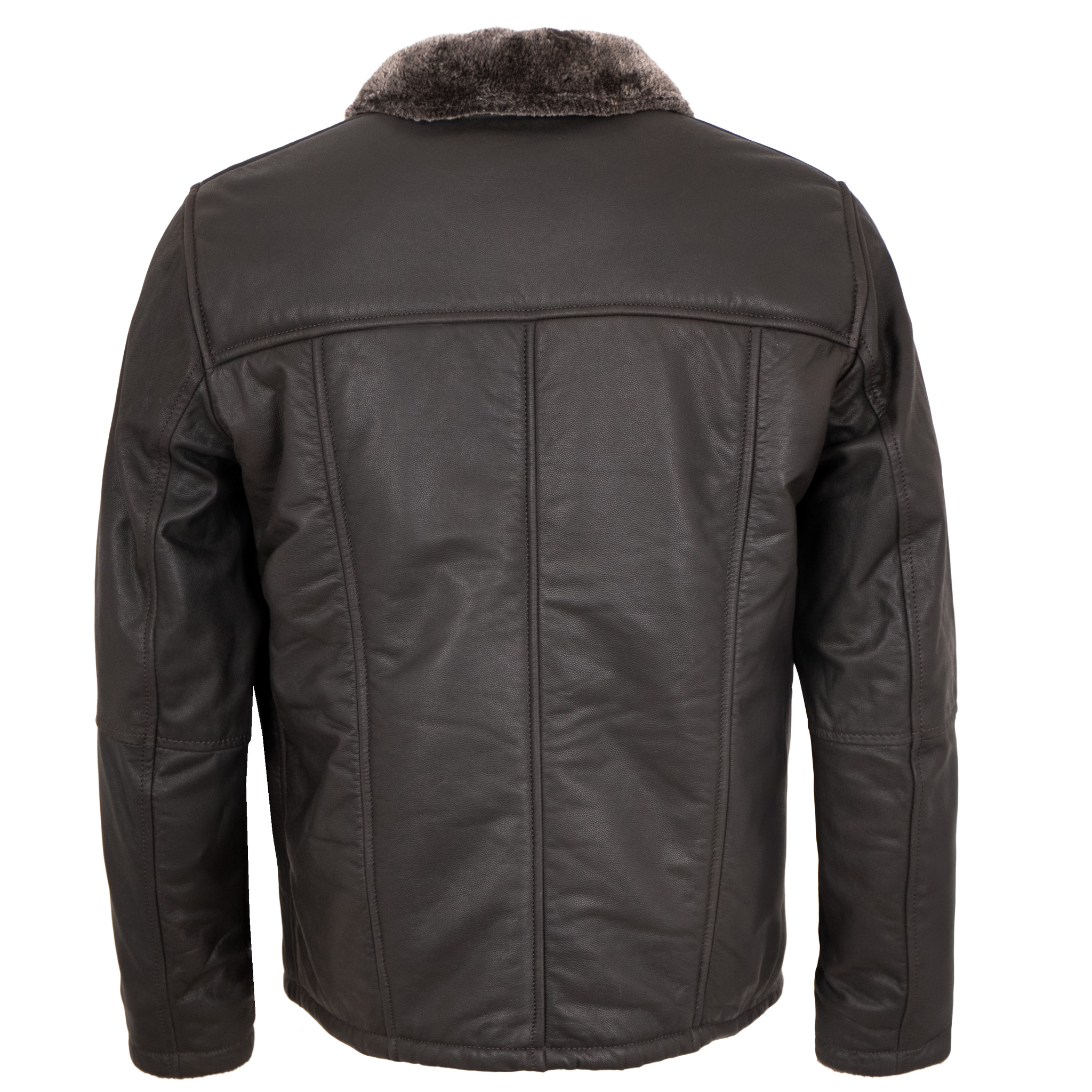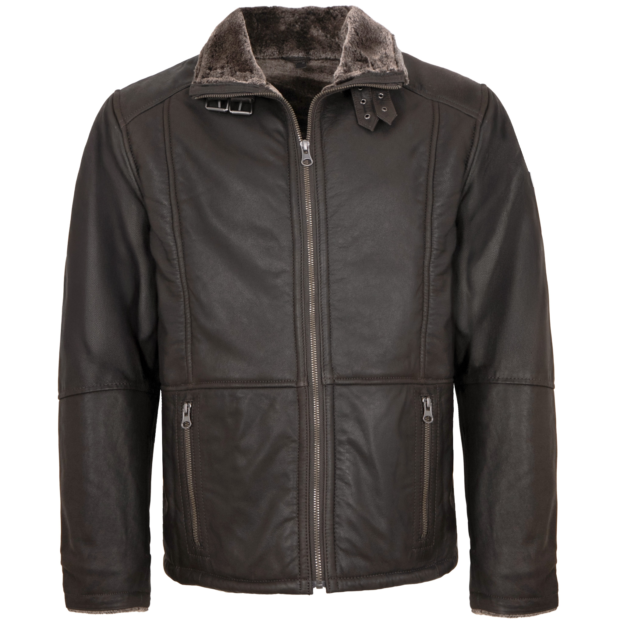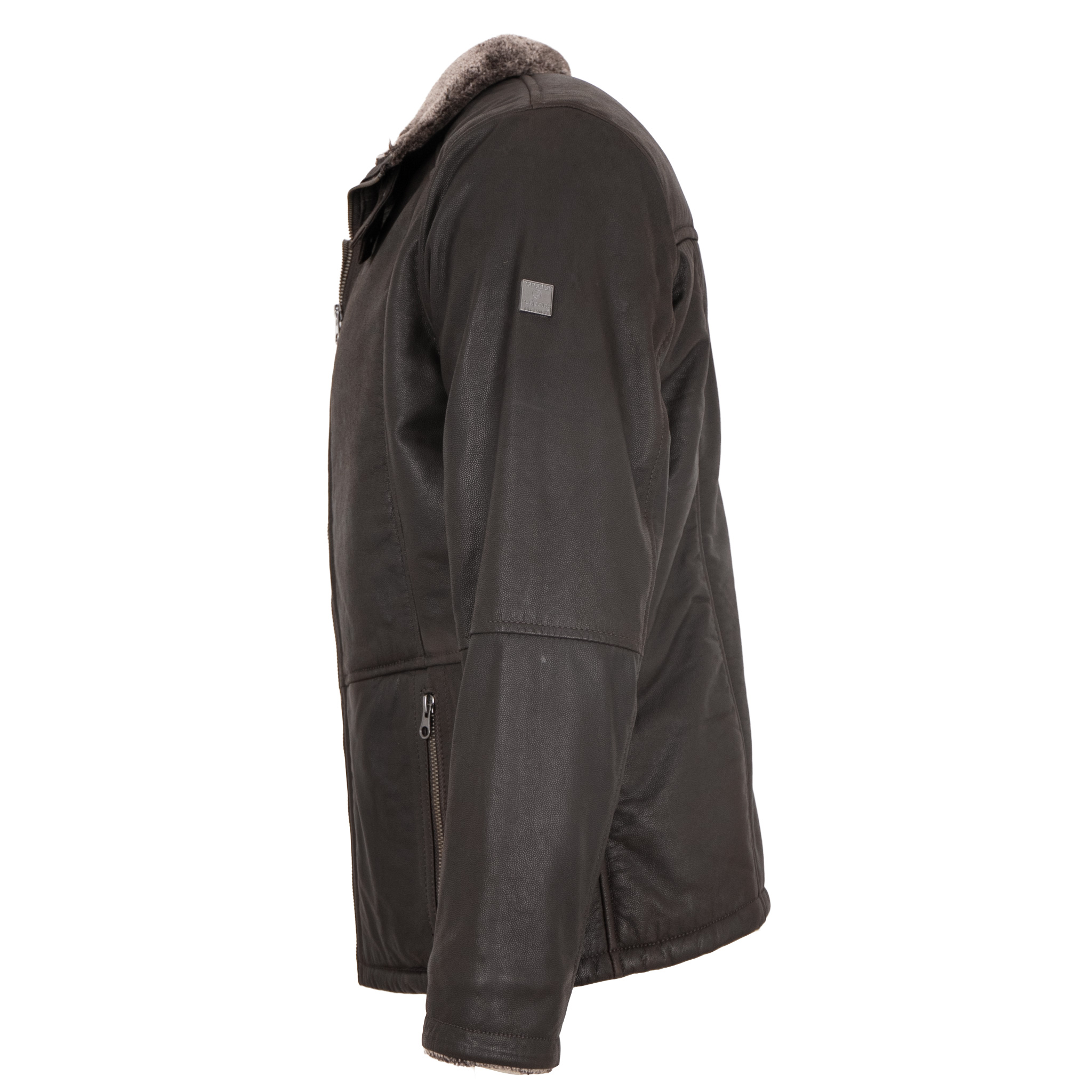 Redpoint - Herren Lederjacke Lammnubuk Kunstfell dunkelbraun