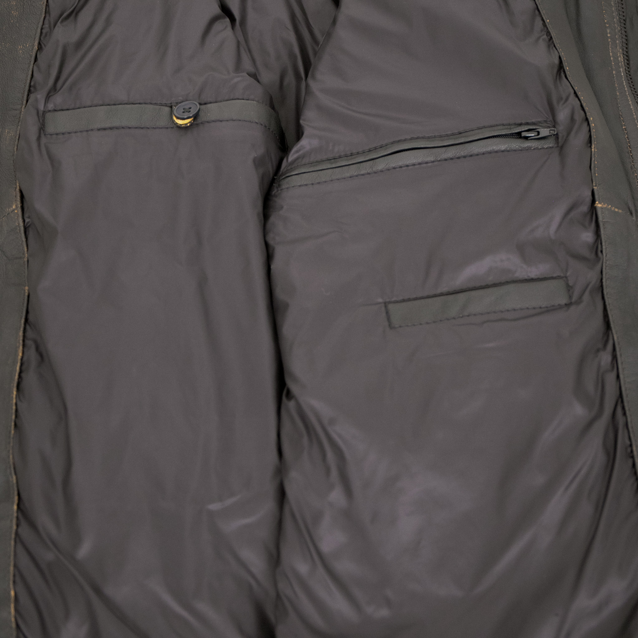 Das Leder dieser Lederjacke wurde in einem aufwändigen Verfahren nach der Färbung gewaschen, um den speziellen „Vintage Washed Look“ und den einzigartigen softigen Griff zu erzielen. Farbabweichungen (sog. „Fading“) und Schattierungen im Leder sind typische Merkmale und kennzeichnen den speziellen Look dieser Lederjacke. Die Veredelung dieser Lederjacke macht sie zu einem wertvollen Einzelstück. Wir empfehlen vor dem ersten Tragen eine Imprägnierung mit farblosem Leder-Pflegespray, so werden Sie lange Freude an Ihrem neuen Bekleidungsstück haben.