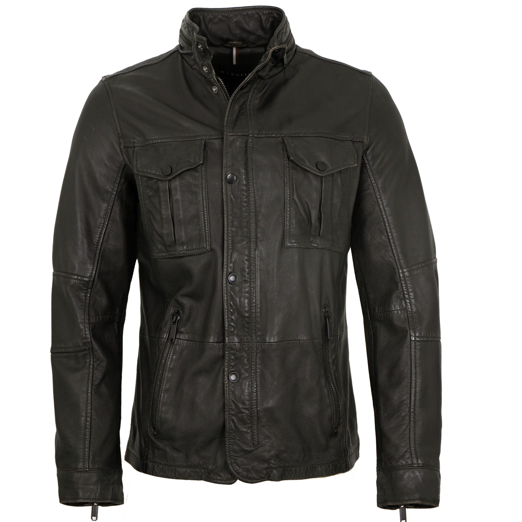 Bugatti - Herren Lederjacke Lammnappa holzkohle