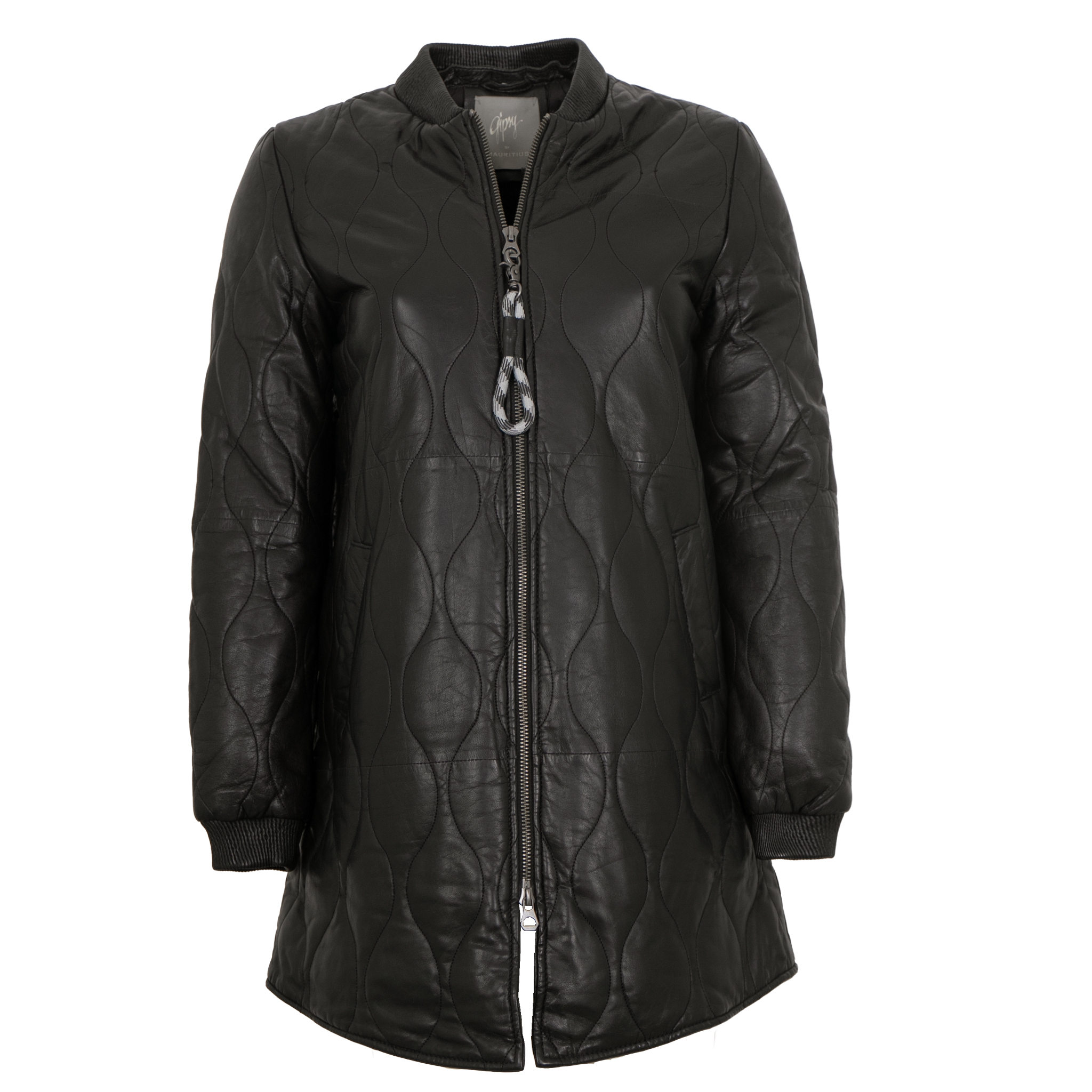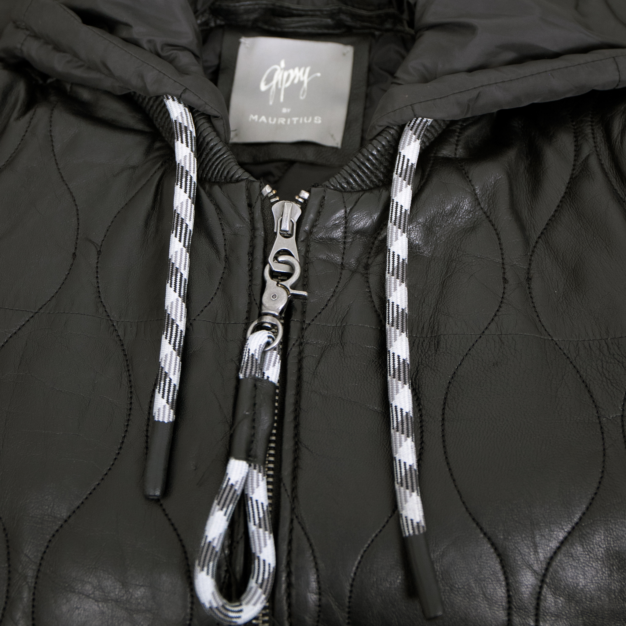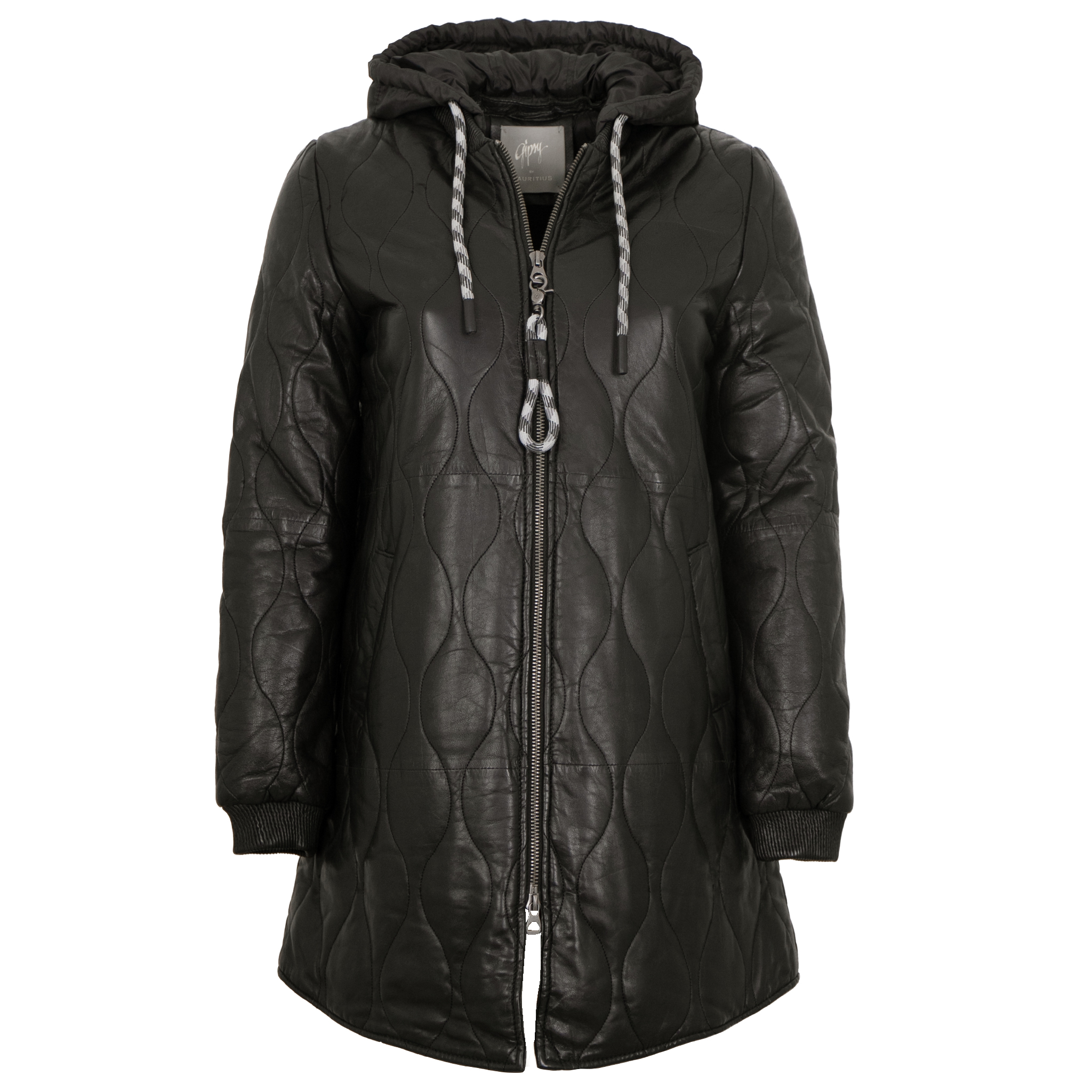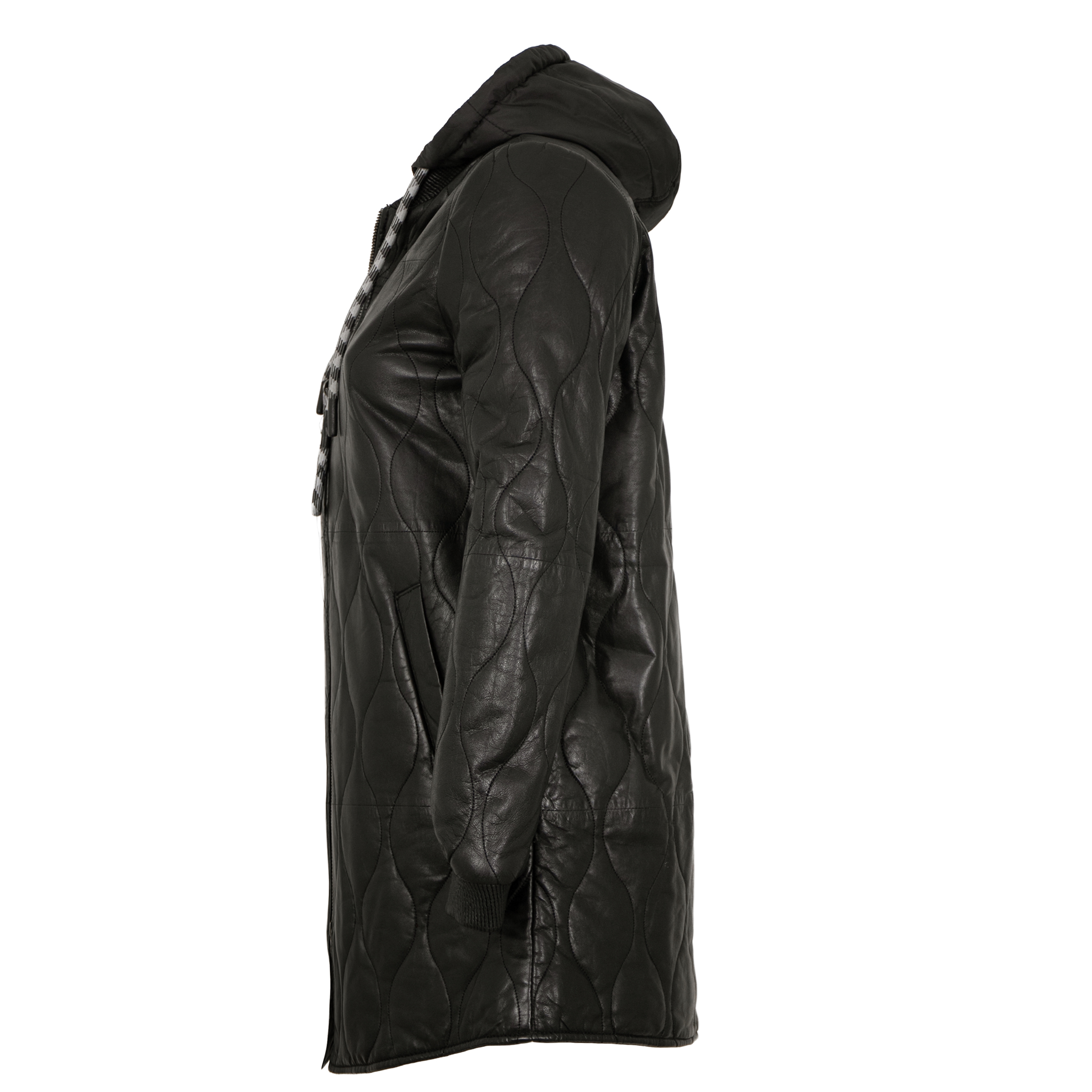 Gipsy by Mauritius - Damen Ledermantel Steppmantel Kapuze Lammnappa schwarz