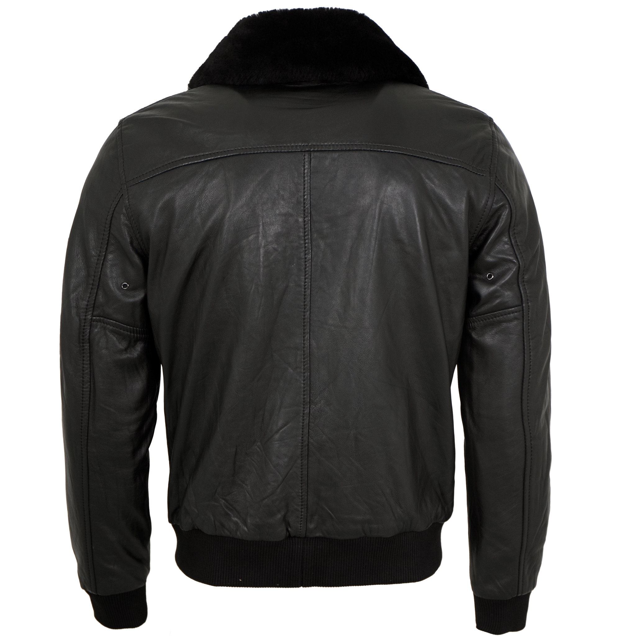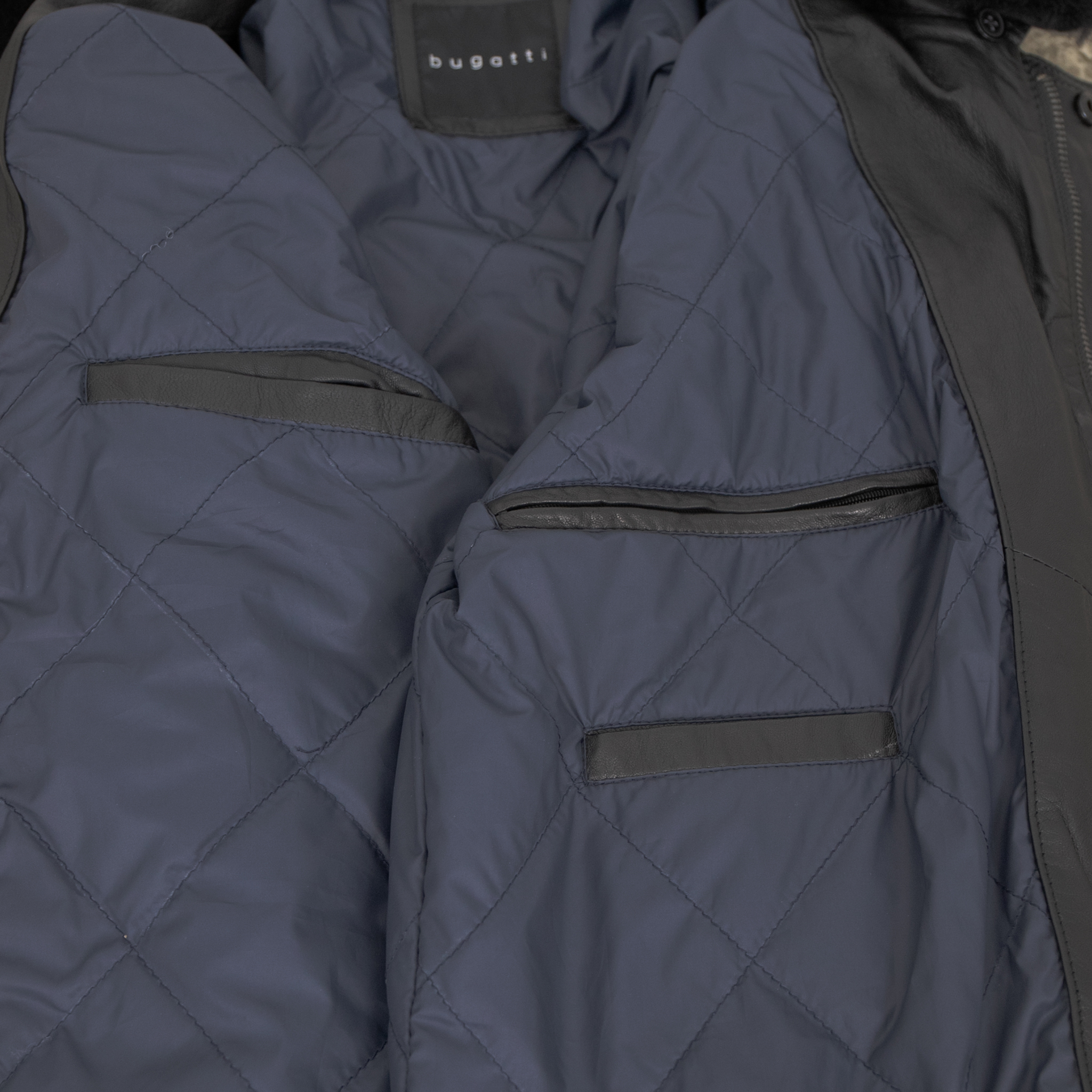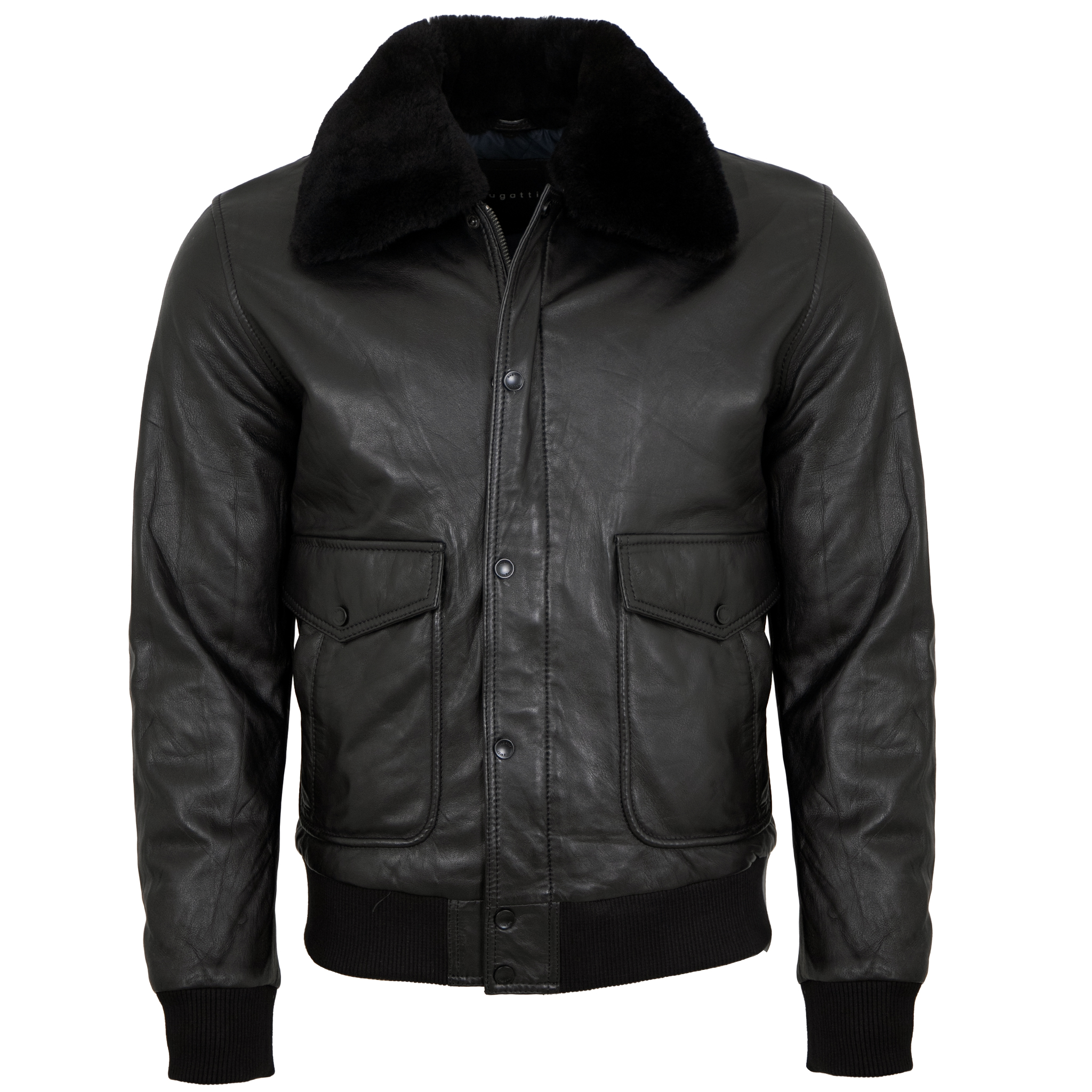 Bugatti - Herren Lederjacke Weste Lammnappa Lammfellkragen schwarz