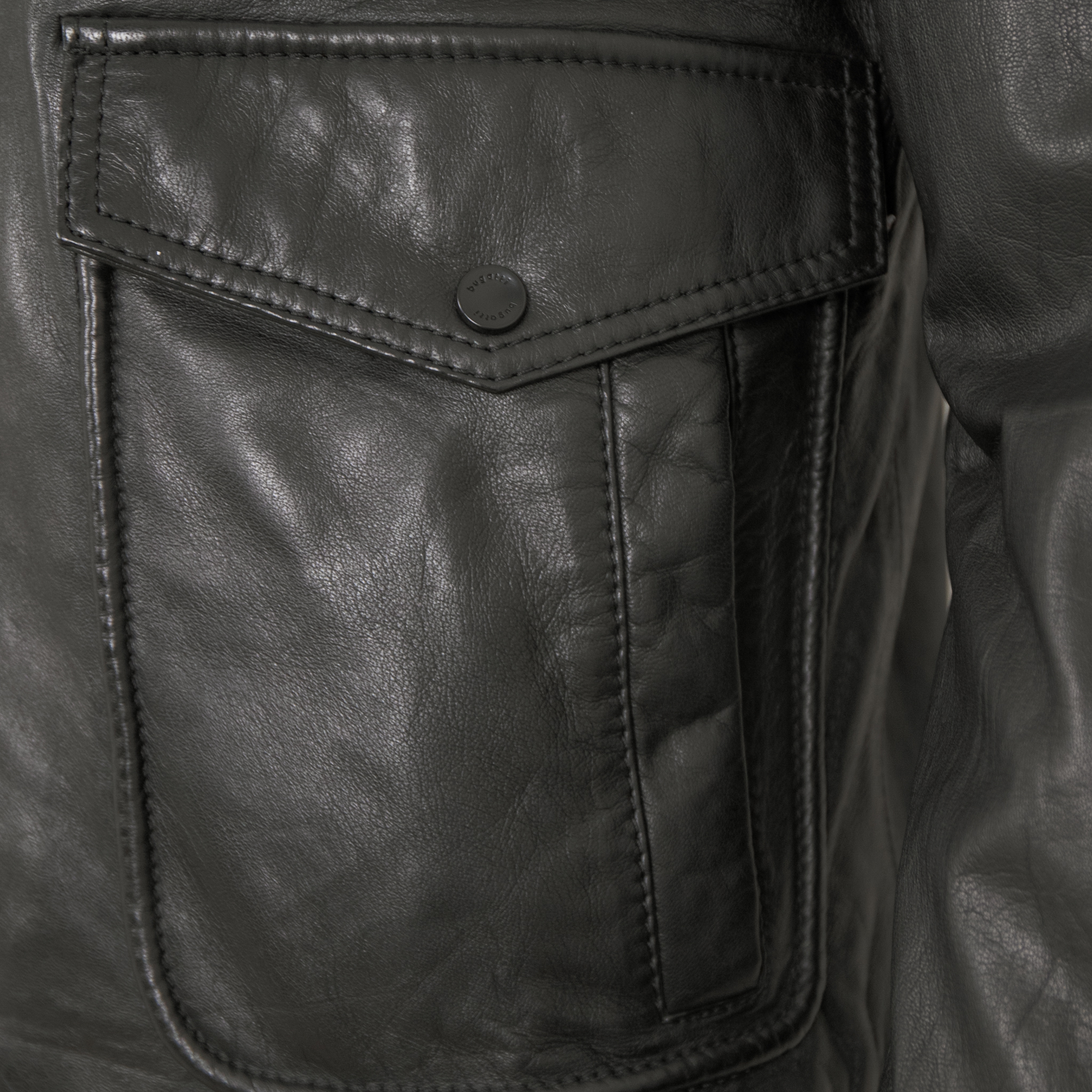 Der Kragen lässt sich bei Bedarf dank Knöpfen unkompliziert abnehmen, wodurch Sie das Wearable flexibel an wechselnde Wetterlagen anpassen können. Praktische Details wie zwei aufgesetzte Brusttaschen mit Patte und Druckknopf sowie der seitliche Eingriff bieten Stauraum und schnellen Zugriff. Mit dieser Lederjacke setzen Sie stilvolle Akzente und genießen zugleich höchsten Tragekomfort.