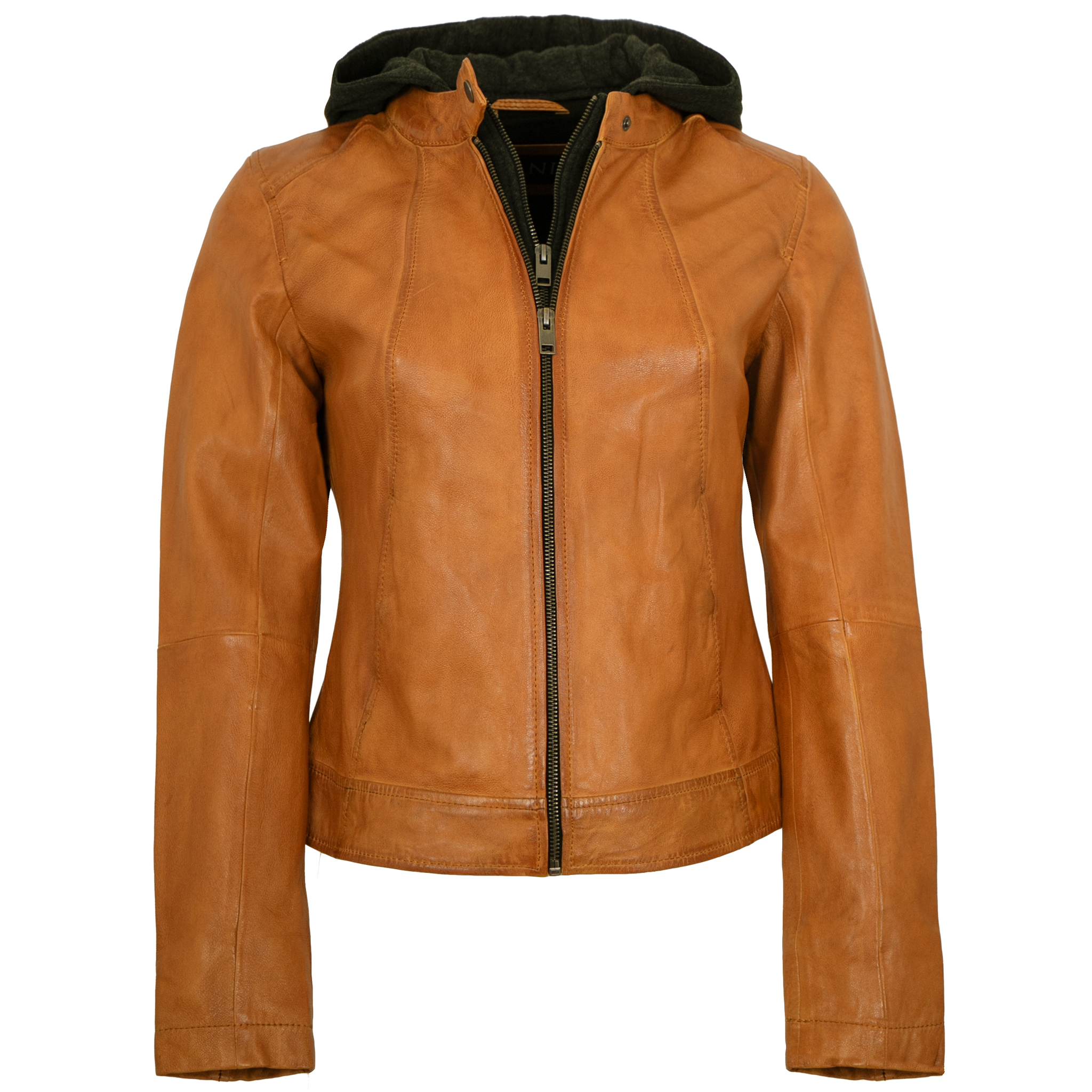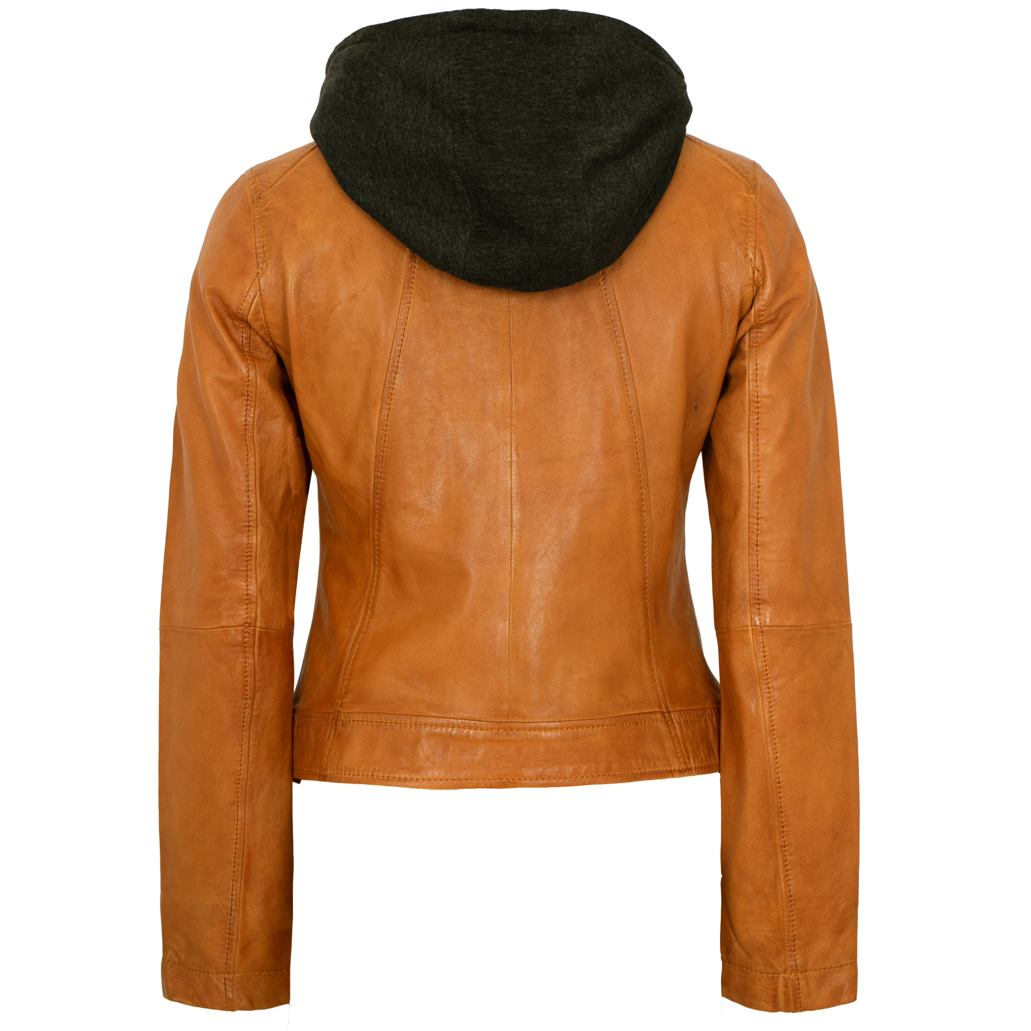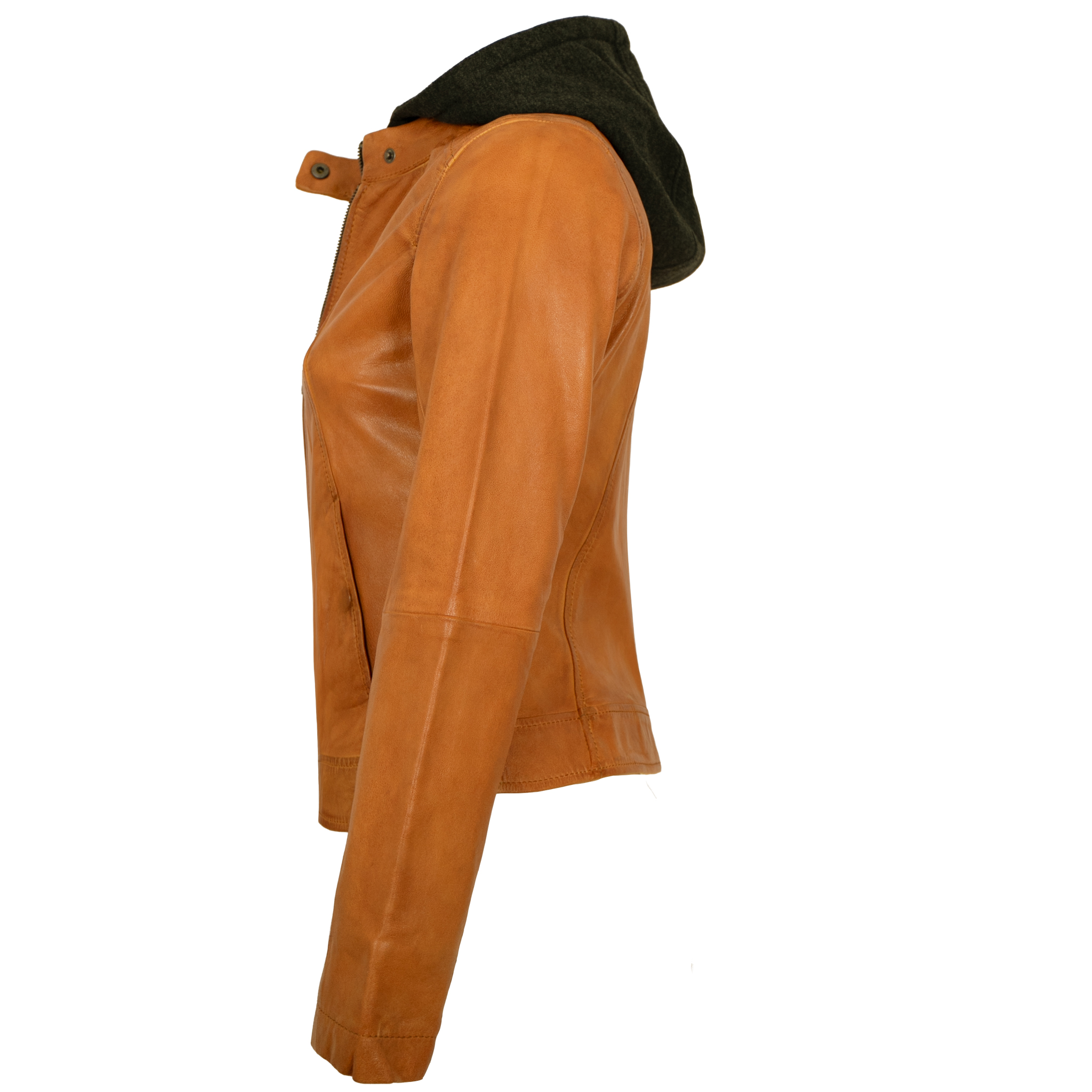 Jilani Collection - Damen Lederjacke Lammnappa Kapuze dunkles gelb