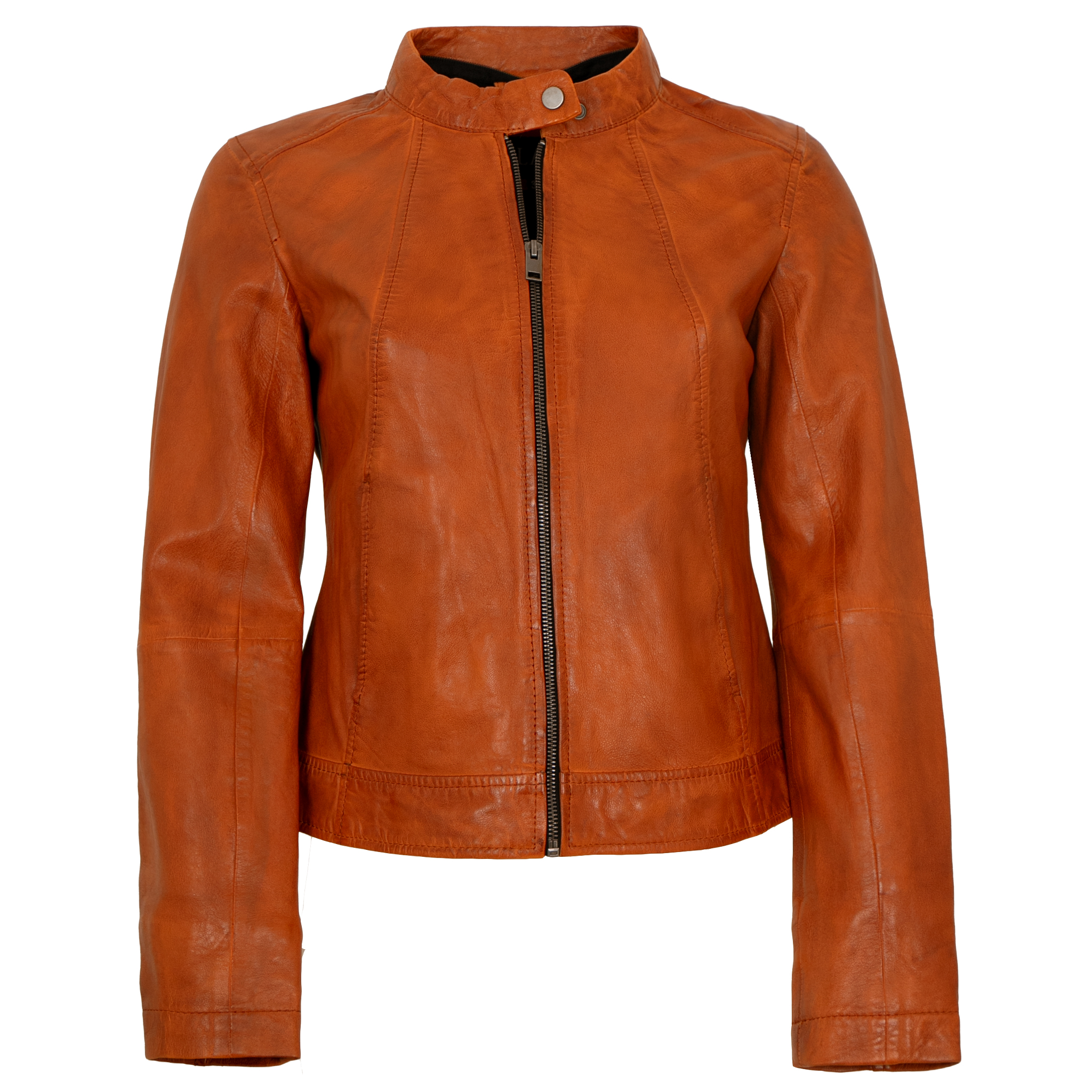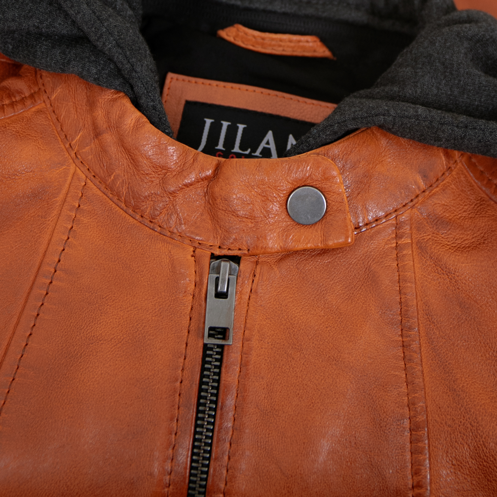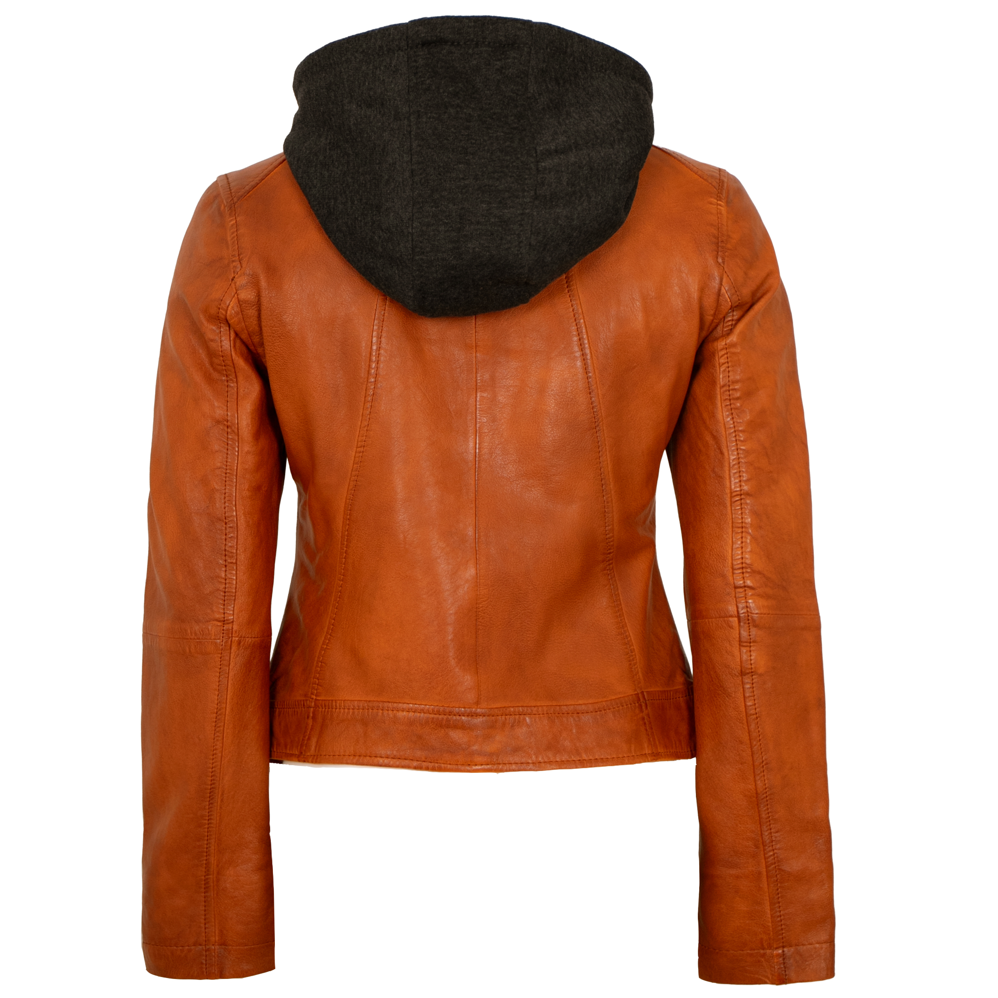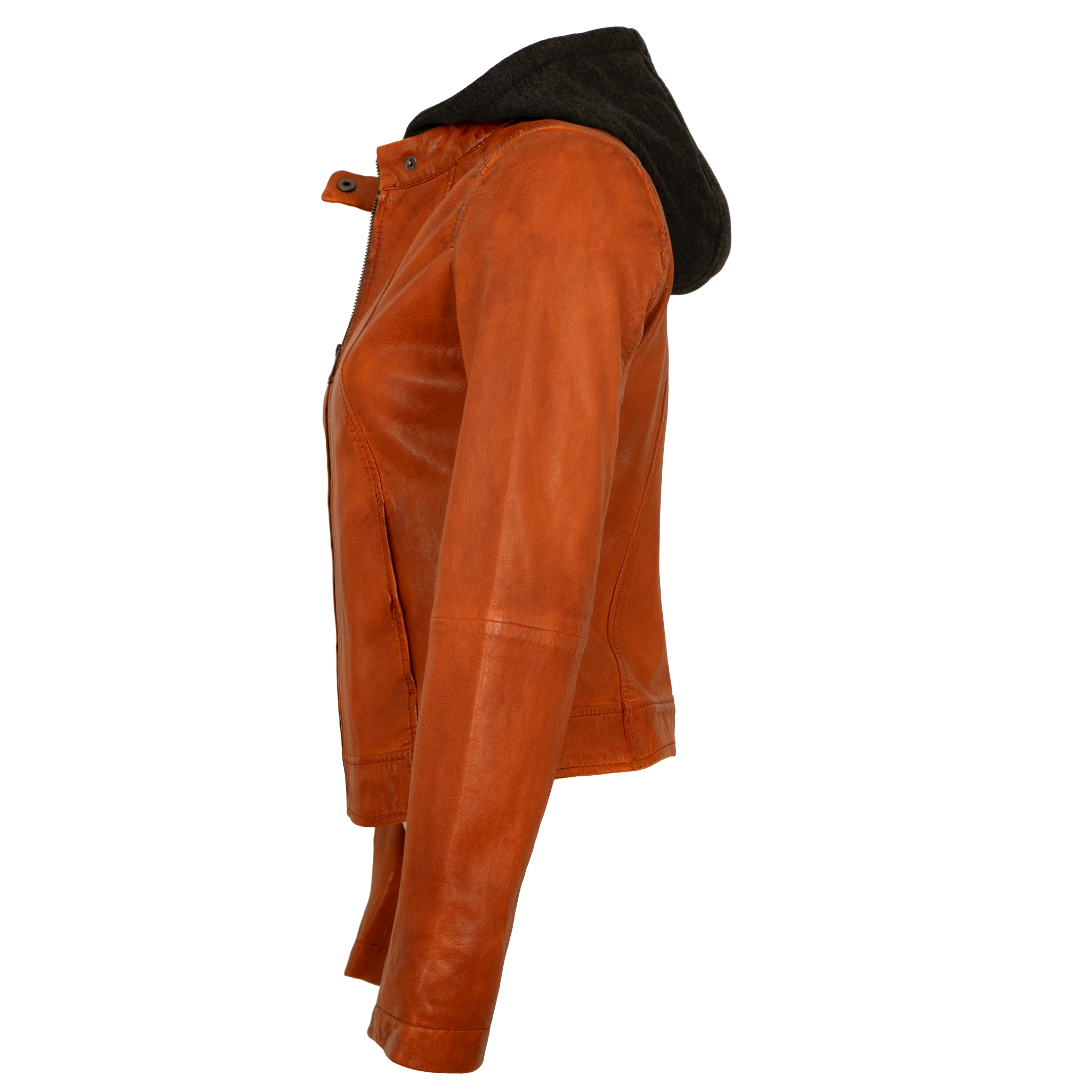 Jilani Collection - Damen Lederjacke Lammnappa Kapuze orange