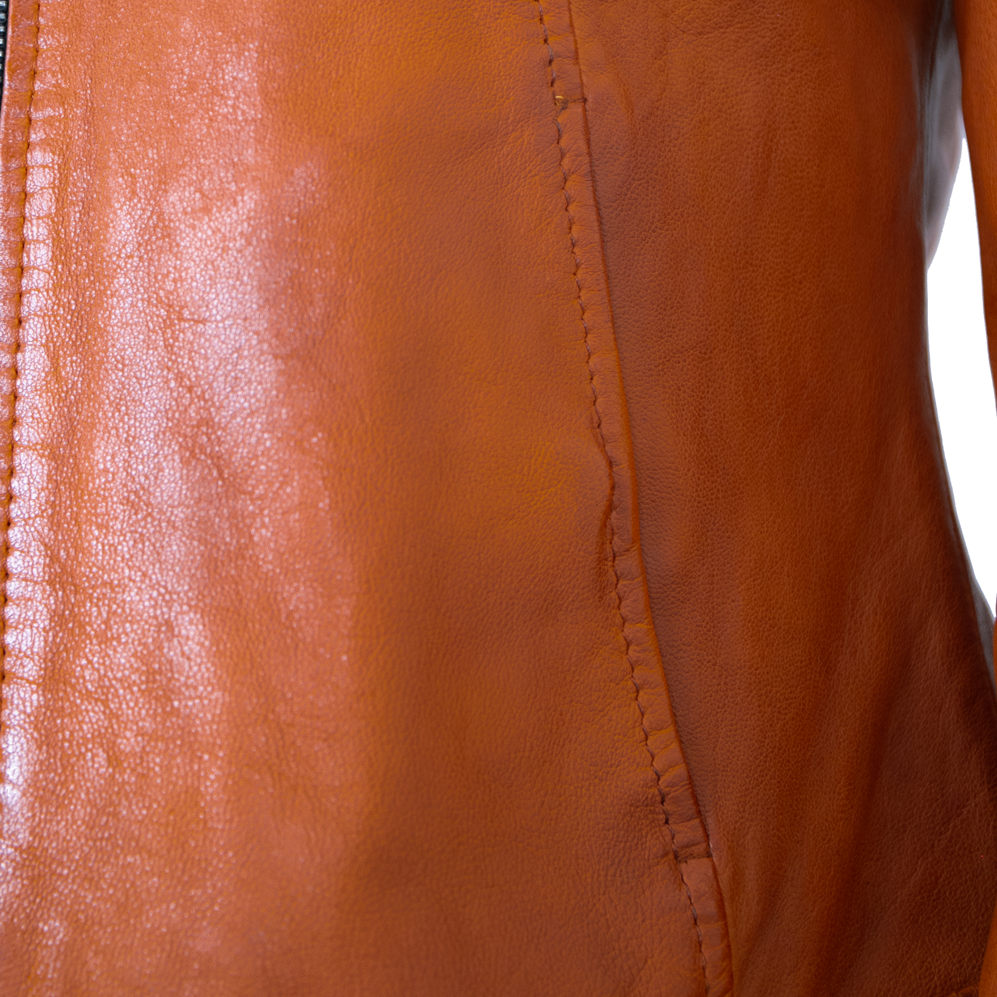 Das smarte Design wird durch einen dekorativen Stehkragen und zwei seitliche Eingrifftaschen mit Druckknopf harmonisch ergänzt. Diese Details verleihen der Jacke nicht nur eine elegante Note, sondern sorgen auch dafür, dass Ihre Wertsachen sicher verstaut sind. Der angesagte Vintage-Look dieser Lederjacke verleiht Ihnen einen antiken Charme, der sofort ins Auge fällt. Kombinieren Sie die Jacke mit Jeans für einen legeren Alltag oder tragen Sie sie über einem Kleid für einen angesagten Kontrast. Genießen Sie den unvergleichlichen Tragekomfort und die hohe Qualität unseres Lammnappa-Leders, das nicht nur schick aussieht, sondern auch langlebig und zeitlos ist.
