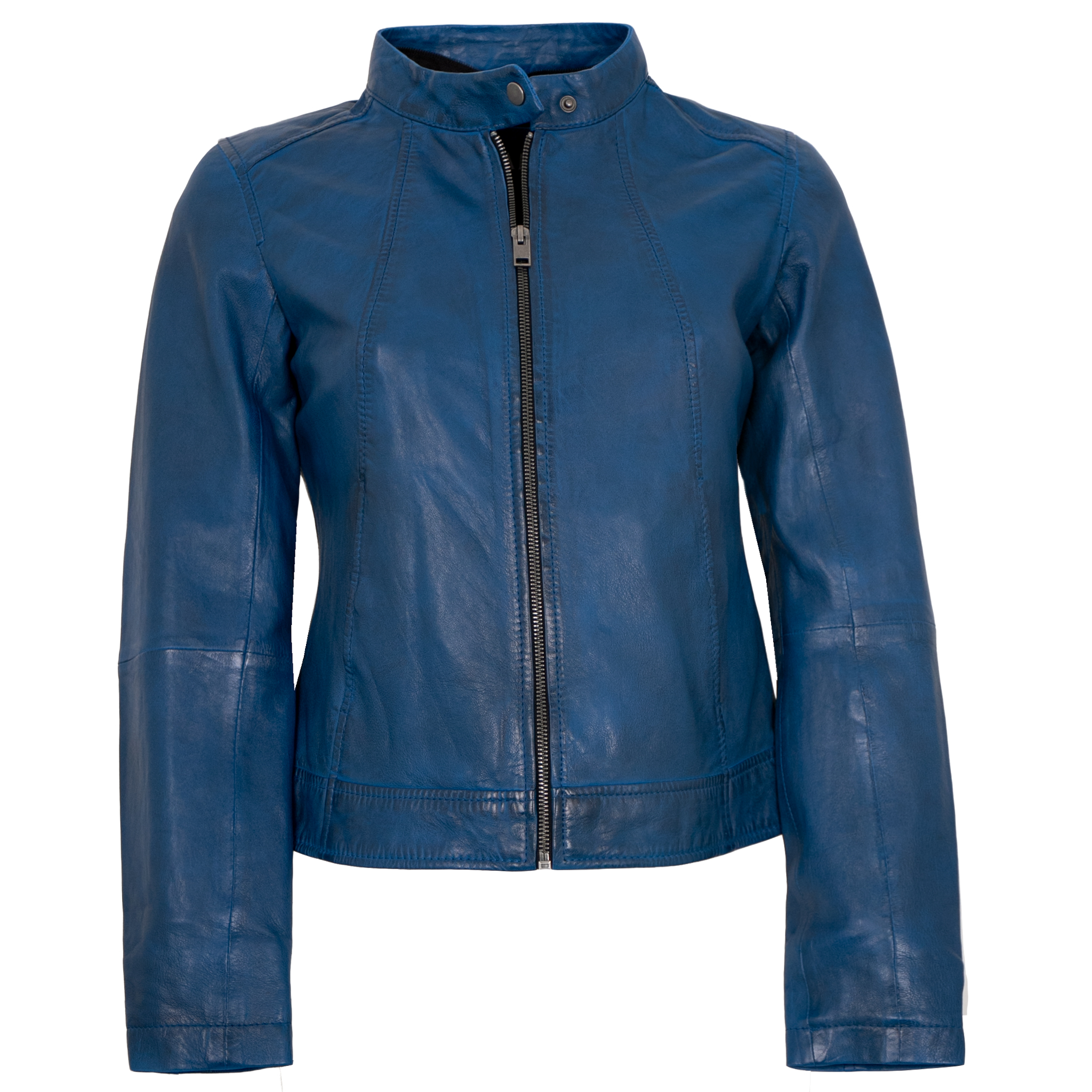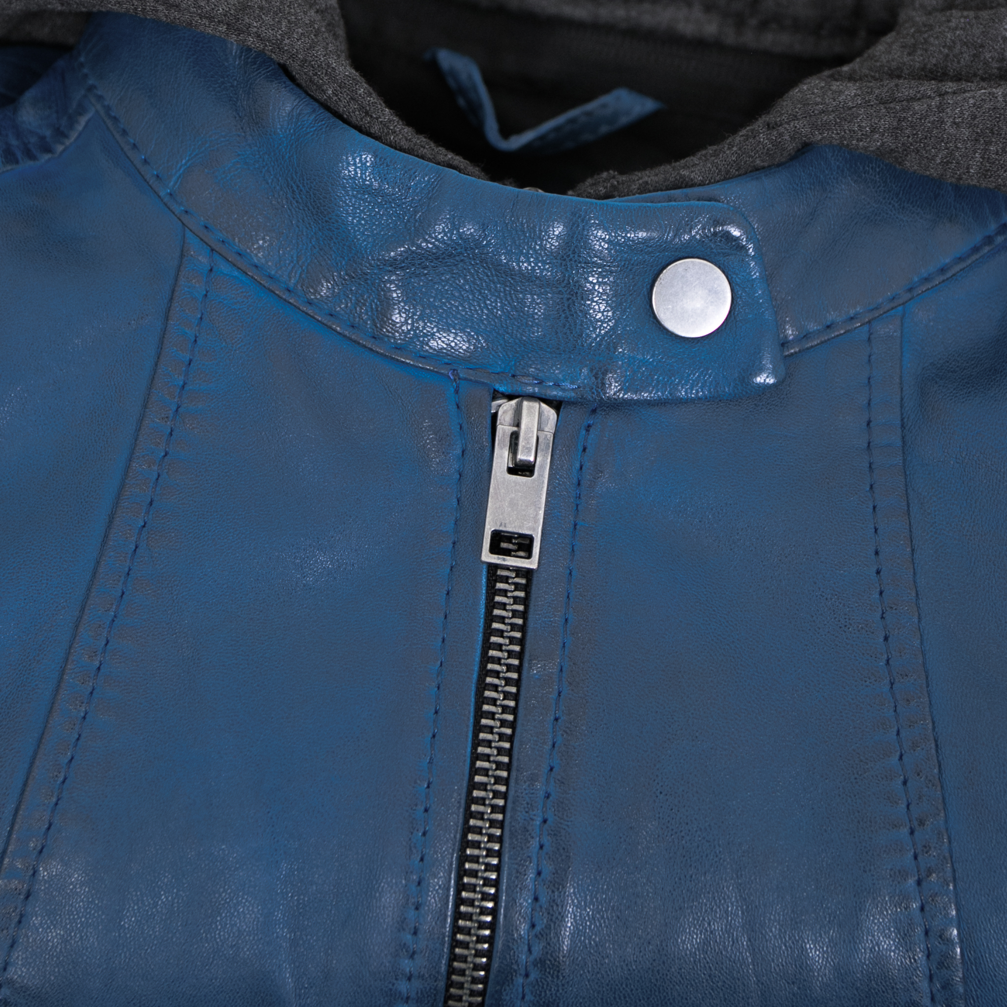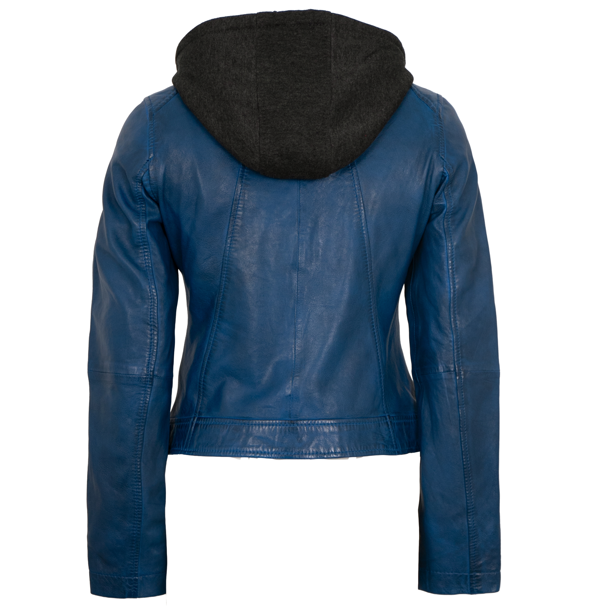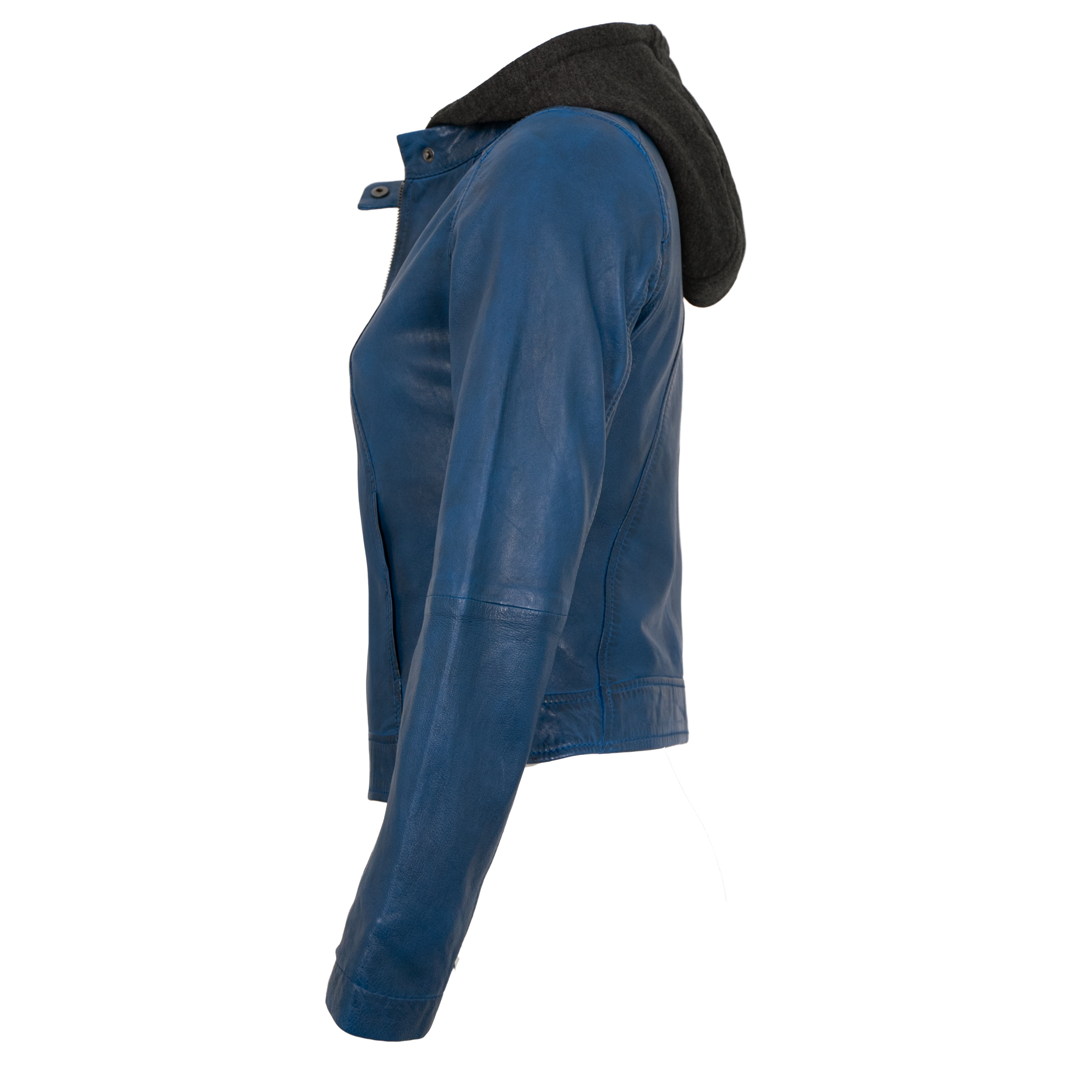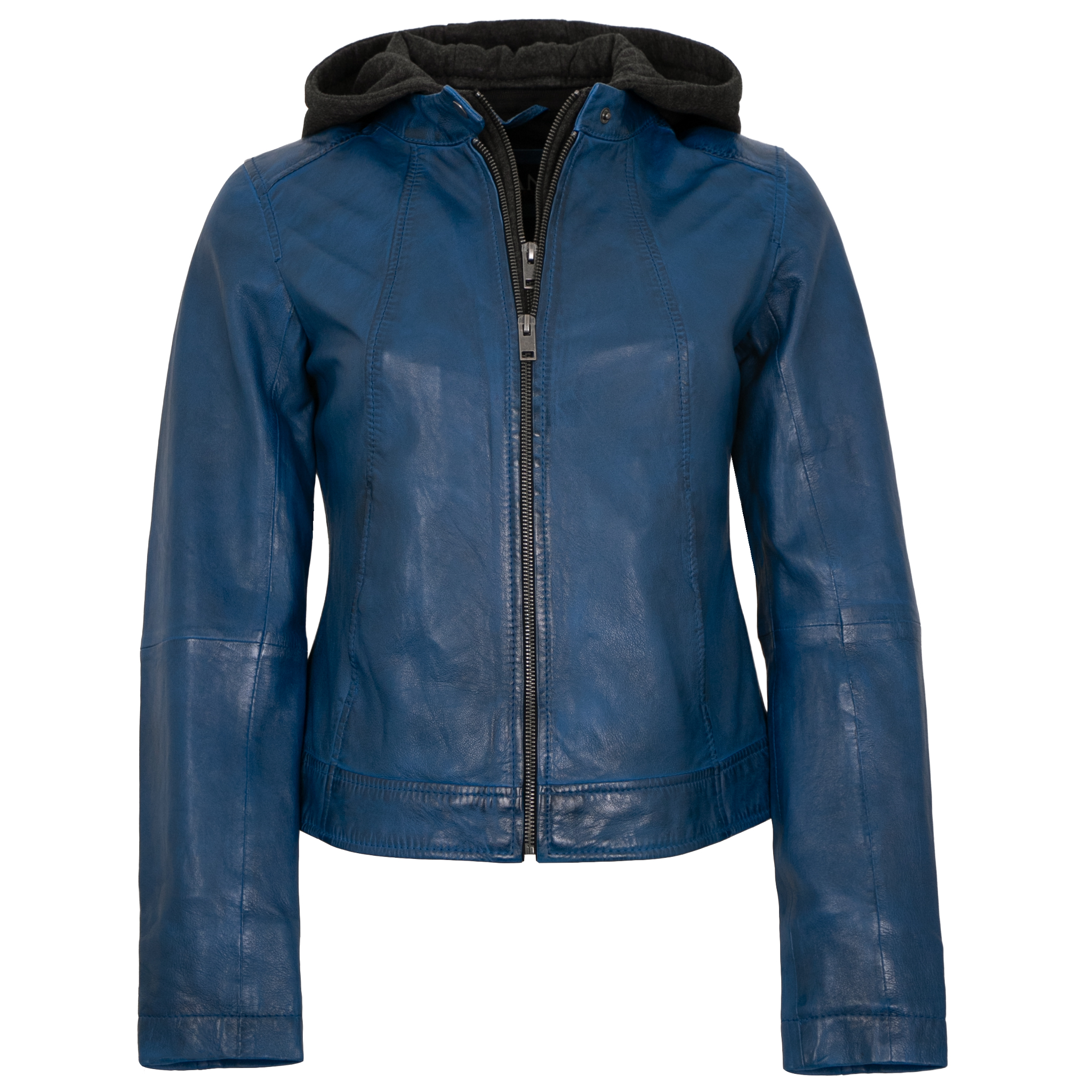 Jilani Collection - Damen Lederjacke Lammnappa Kapuze blau