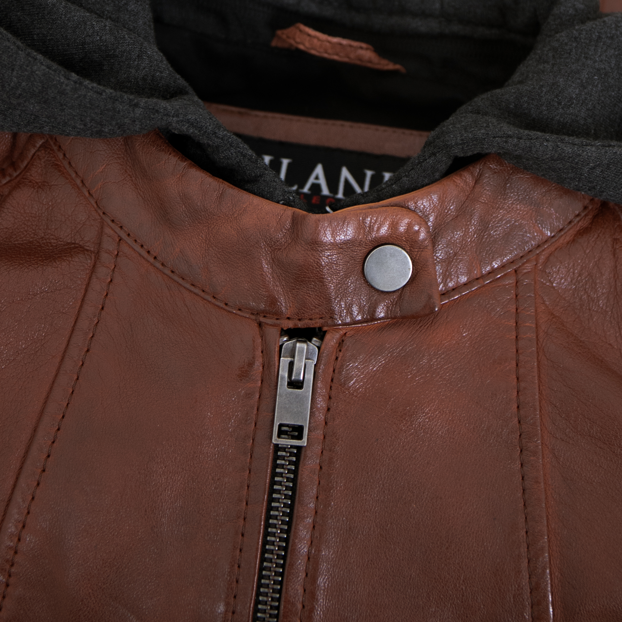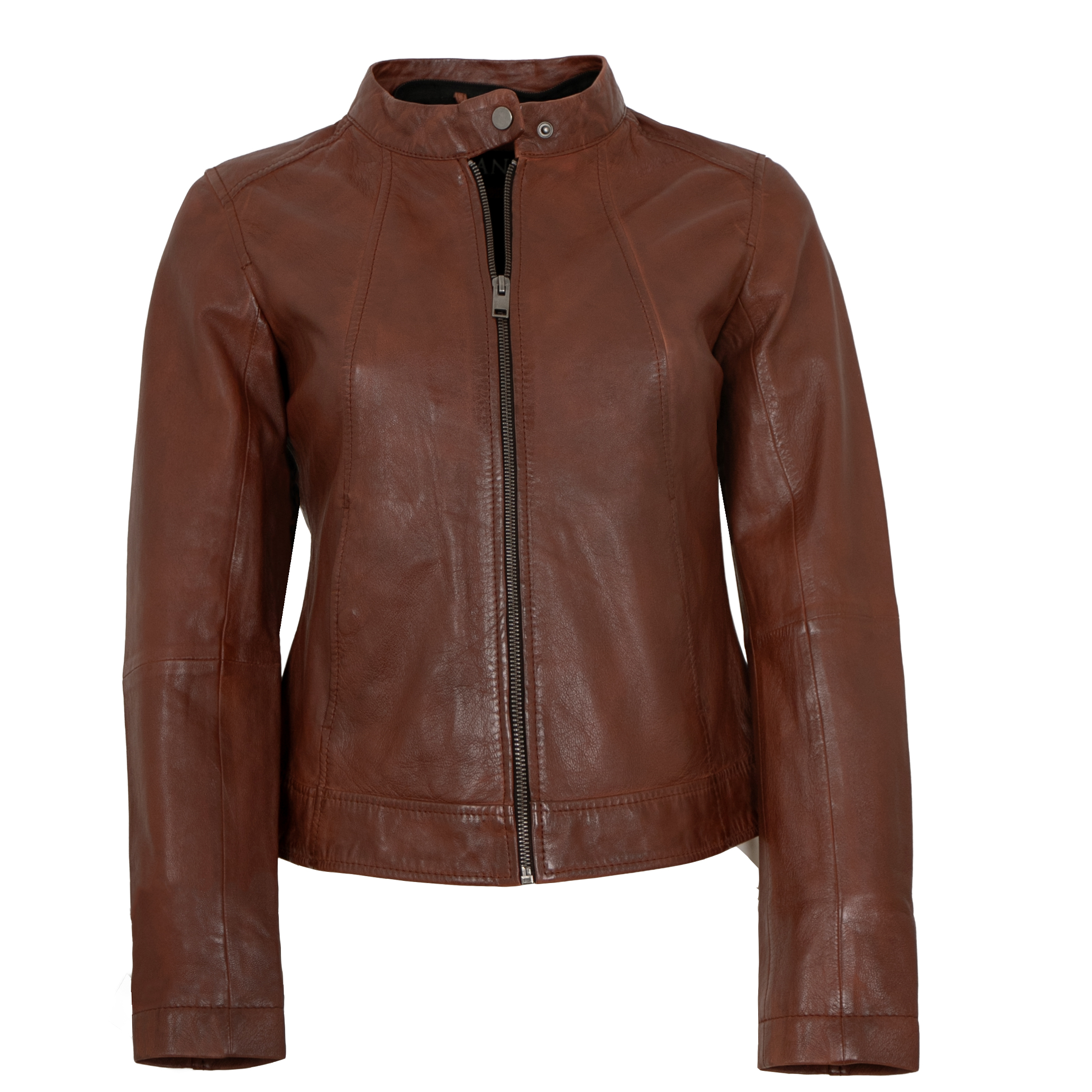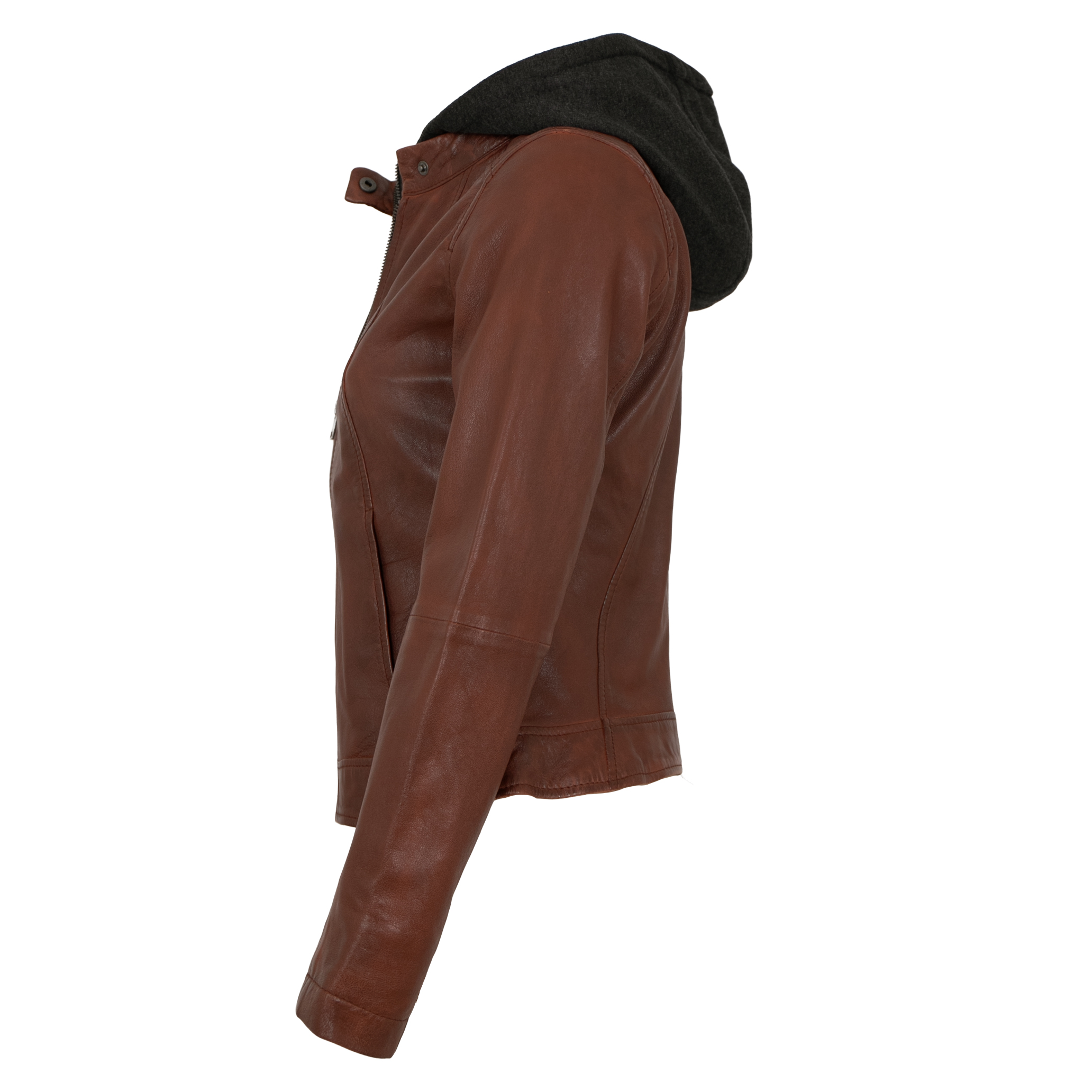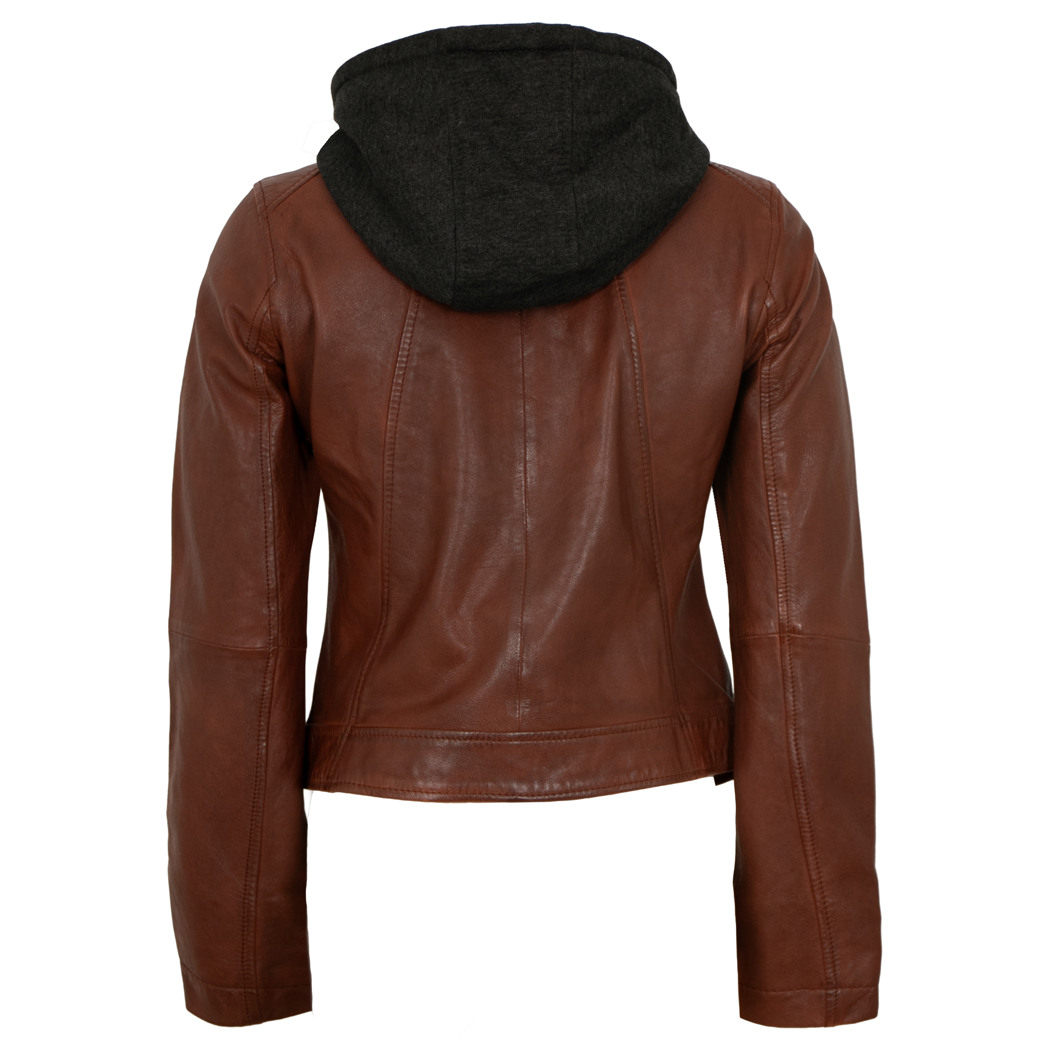 Jilani Collection - Damen Lederjacke Lammnappa Kapuze dunkles cognac