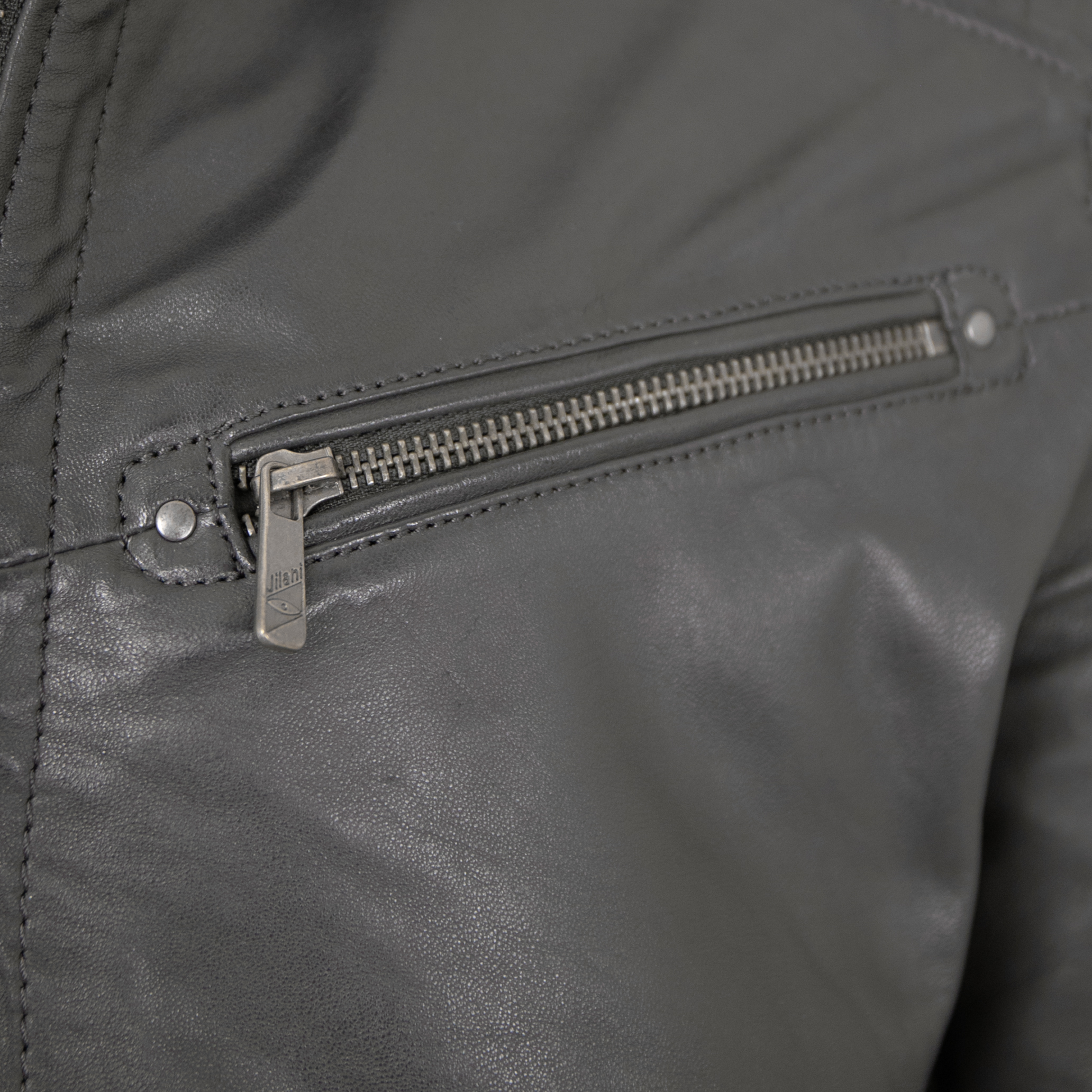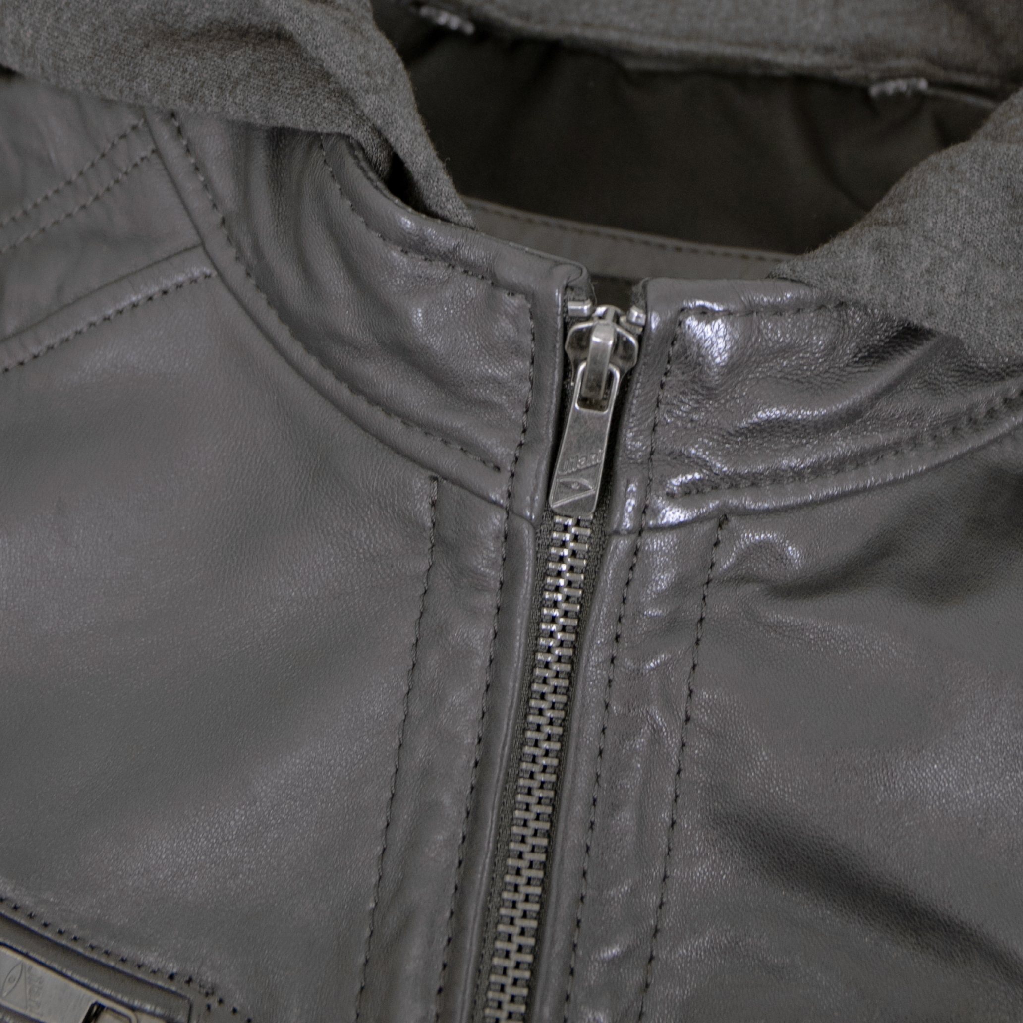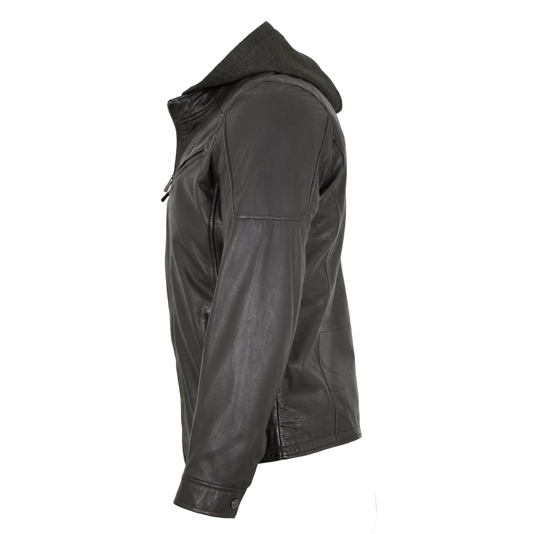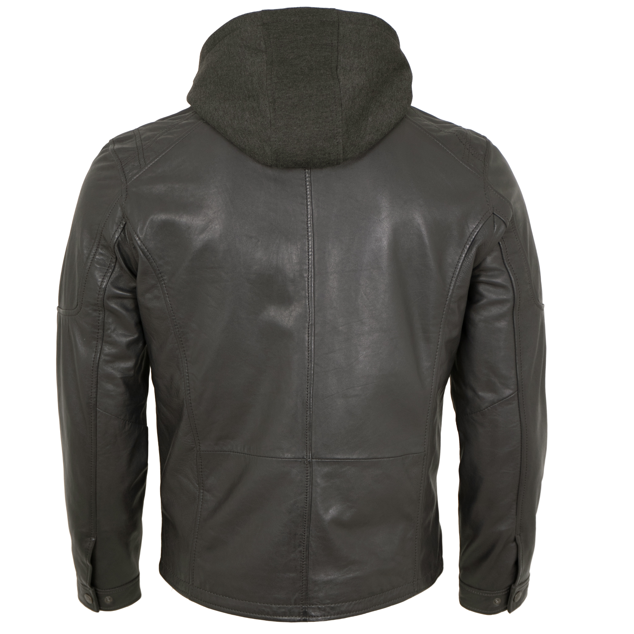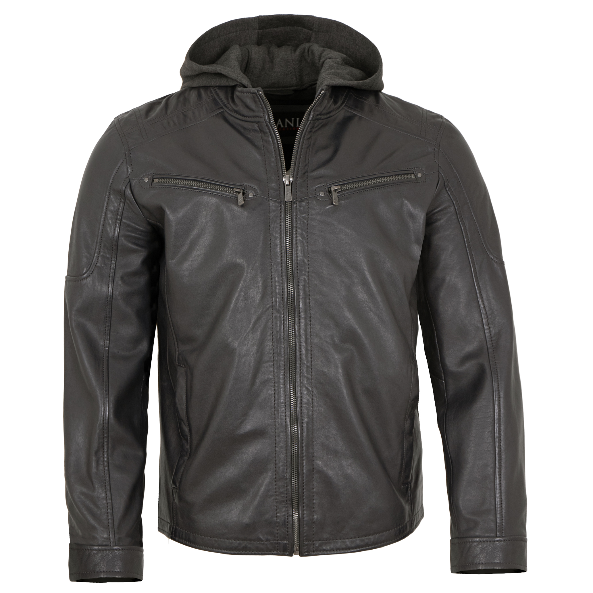 Jilani Collection - Herren Lederjacke Kapuze Lammnappa anthra