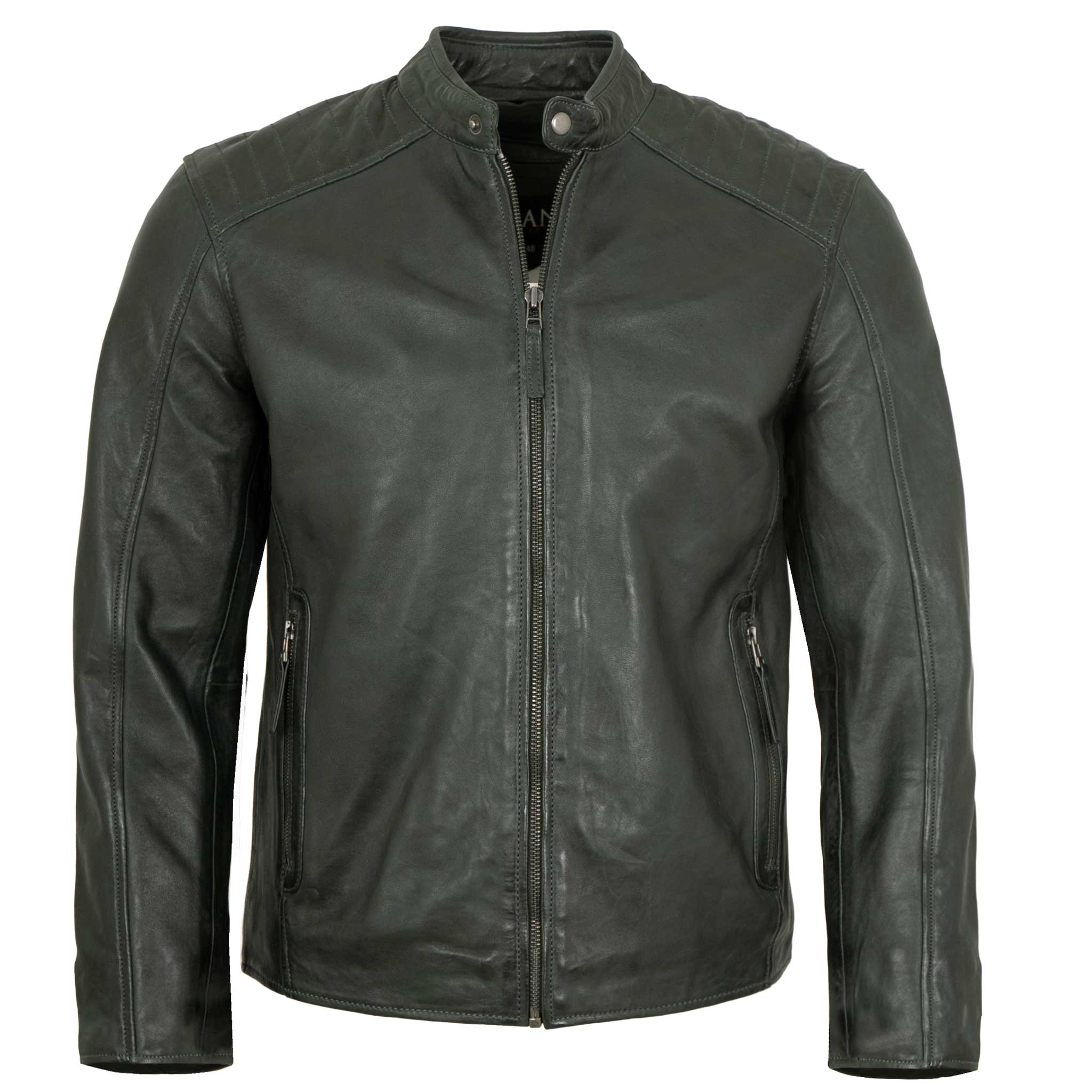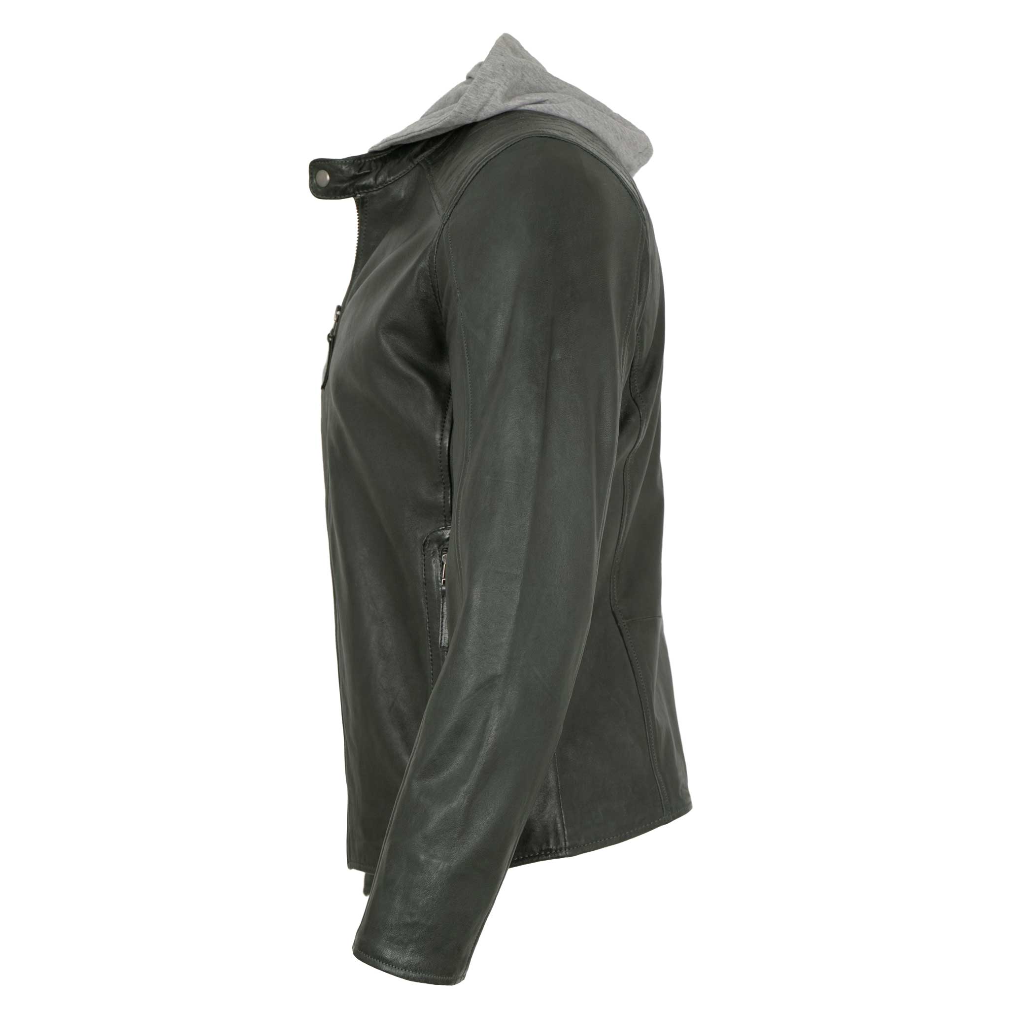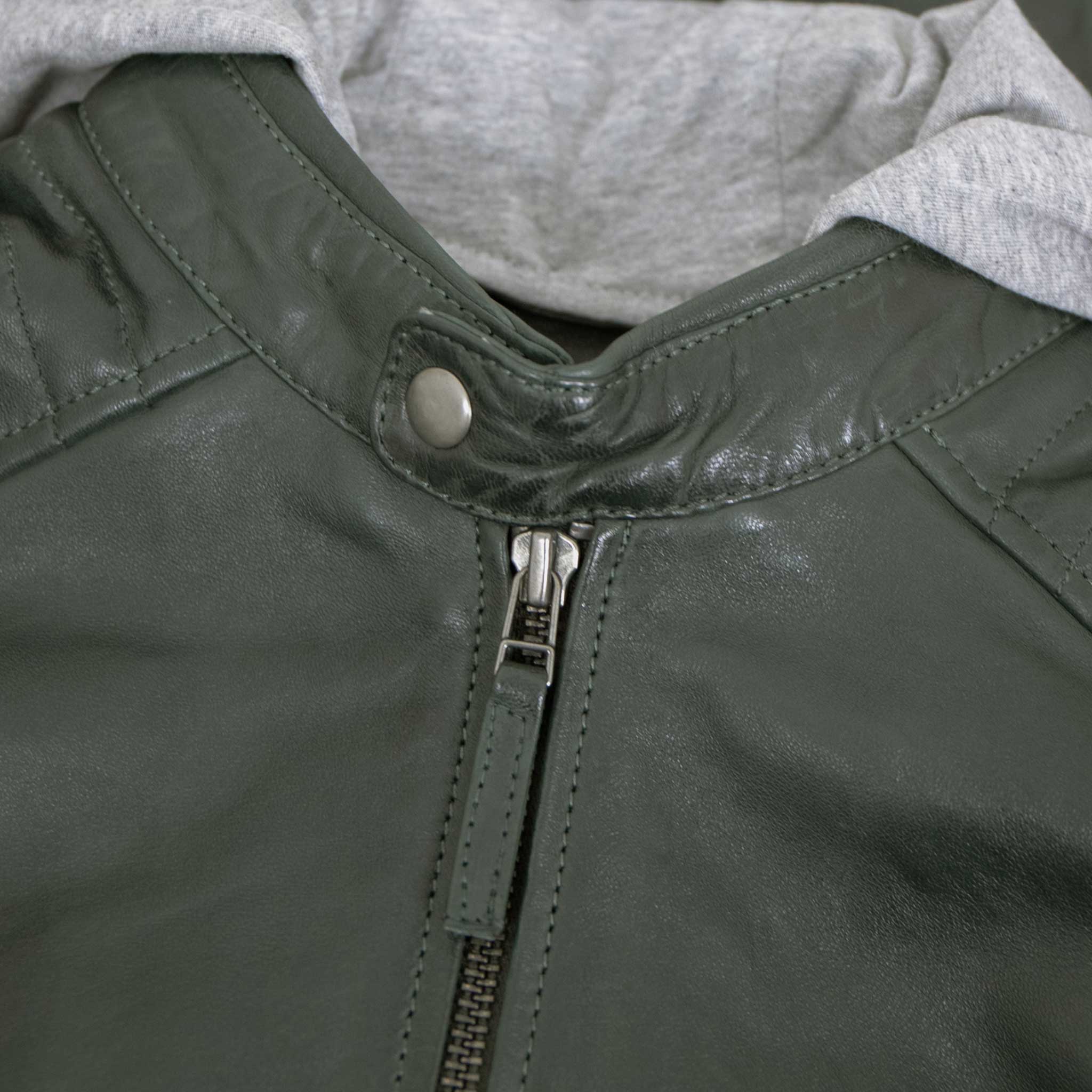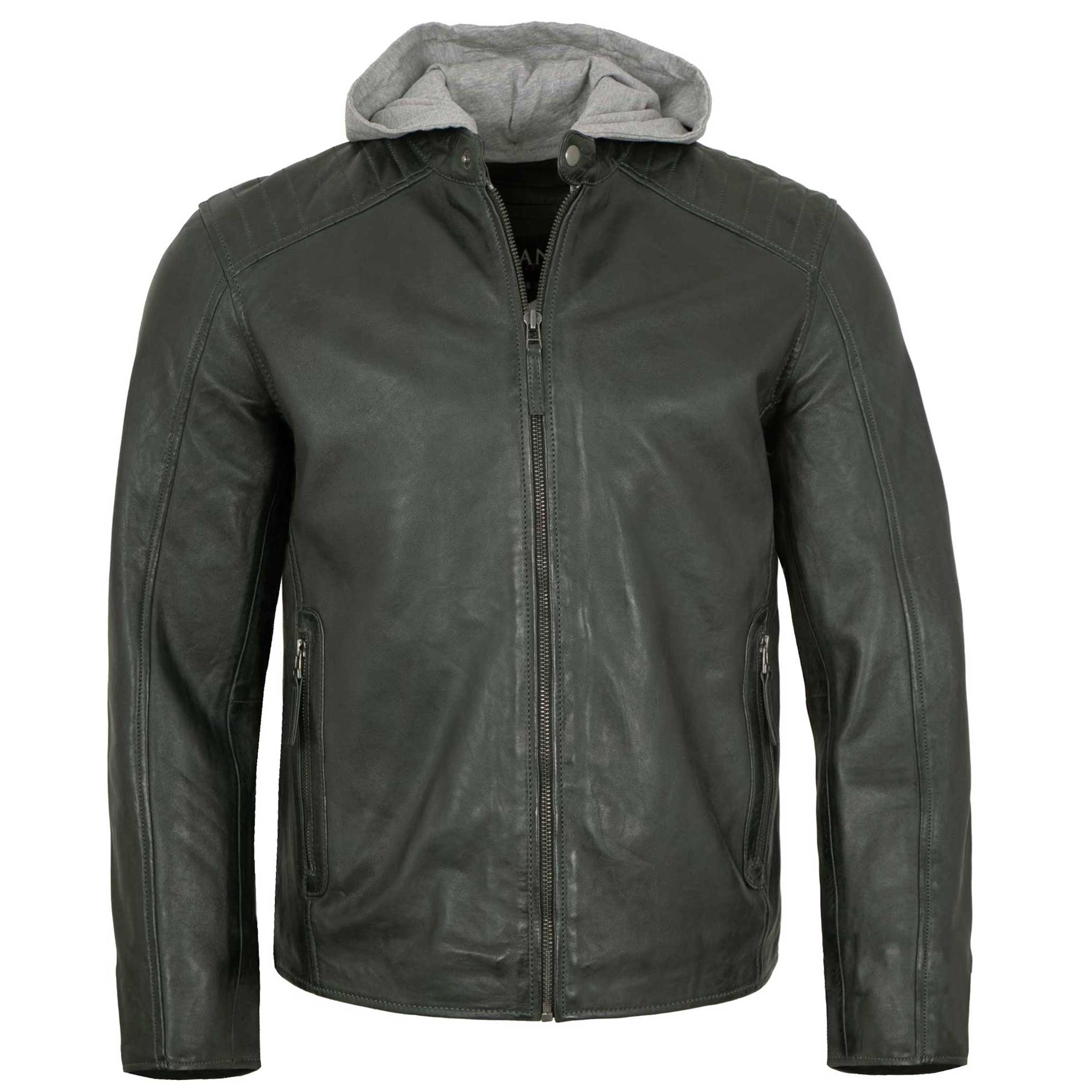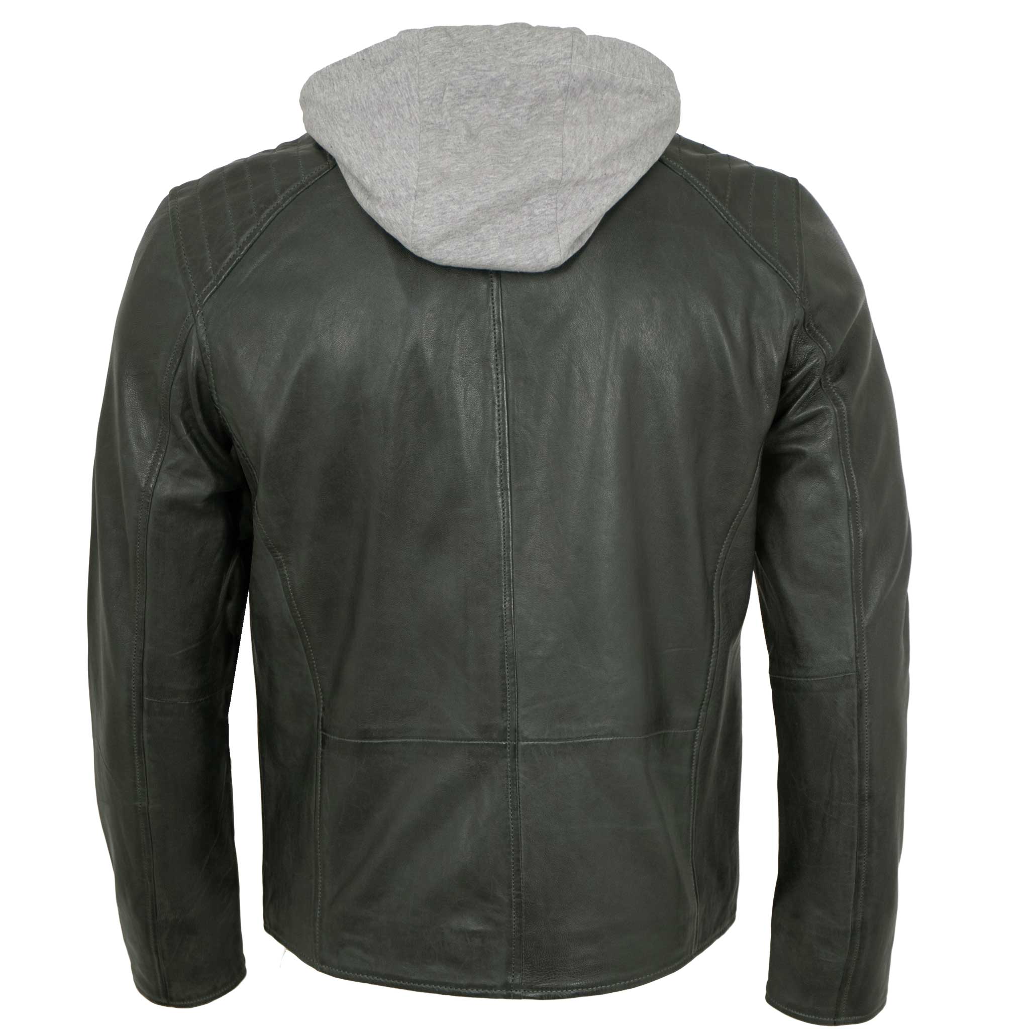 Jilani - Herren Lederjacke Kapuze Lammnappa petrol grün