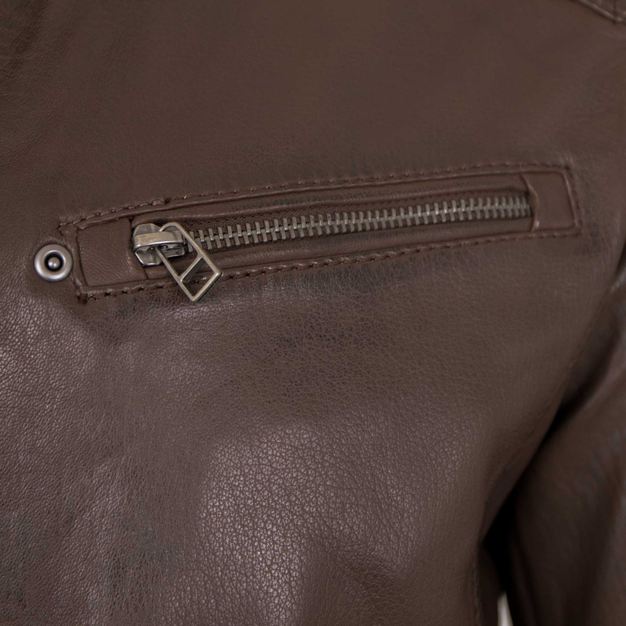 Die aufwendig gestalteten Ziernähte im Schulterbereich unterstreichen den zeitgemäßen Charakter der Jacke und geben ihr zugleich eine raffinierte Note. Ein weiteres herausragendes Detail ist der Stehkragen mit Druckknopf, der sowohl Komfort bietet als auch das harmonische Design gekonnt abrundet. Mit ihrer Vielseitigkeit wird diese Lederjacke schnell zu einem essenziellen Bestandteil Ihrer Garderobe und verleiht jedem Outfit eine perfekte Mischung aus modischem Flair und stilvoller Eleganz.