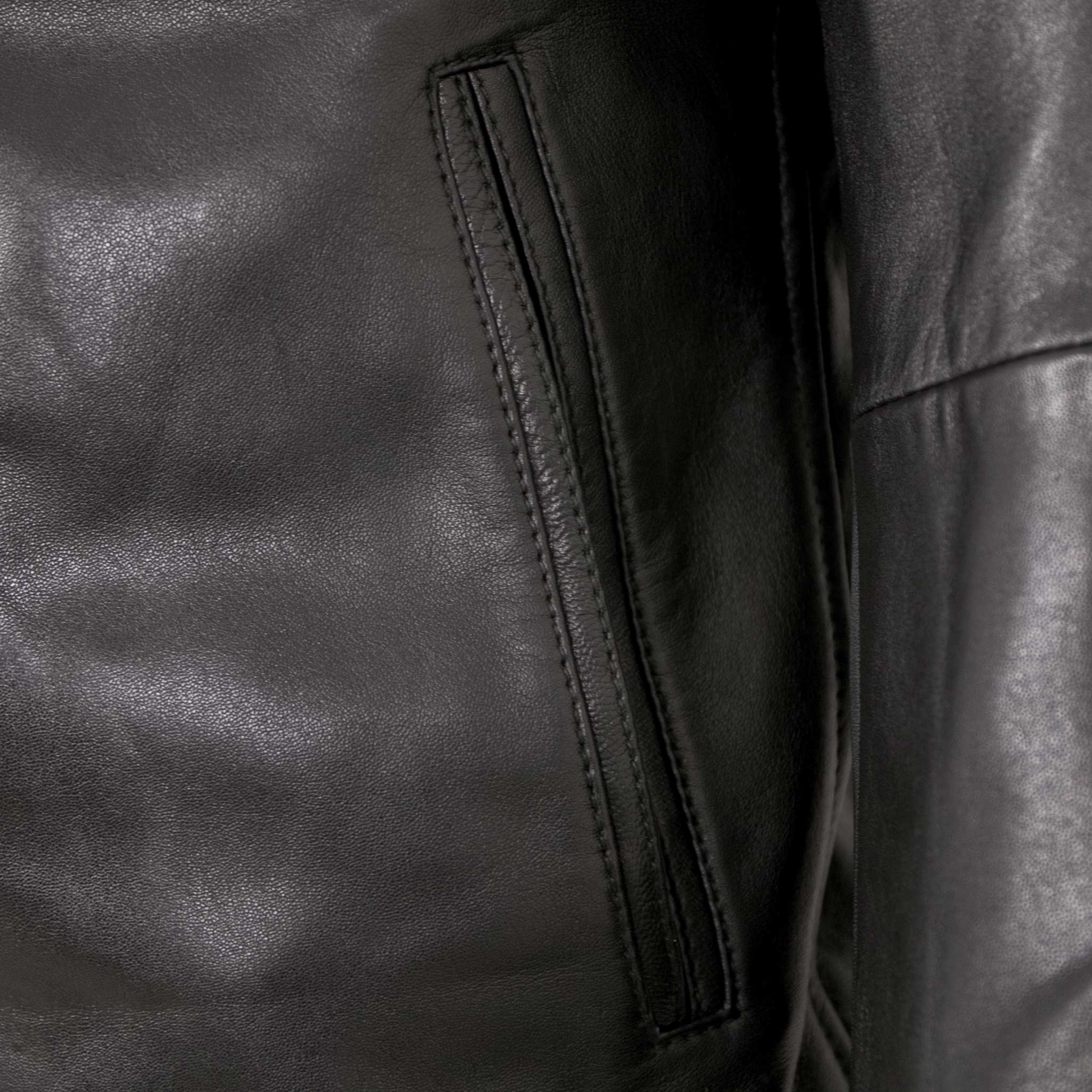 Die Strickabschlüsse an Ärmeln und Bund sorgen nicht nur für einen perfekten Sitz, sondern unterstreichen gleichzeitig den sportiven Charakter der Jacke. Seitliche Eingrifftaschen bieten praktischen Stauraum und fügen sich dezent in das Design ein. Abgerundet wird das Gesamtbild durch den modischen Umlegekragen, der den lässig-sportlichen Stil gekonnt hervorhebt. Ob im Alltag oder zu besonderen Anlässen – diese Lederjacke ist der ideale Begleiter für modebewusste Männer, die Wert auf Qualität, Komfort und Stil legen.