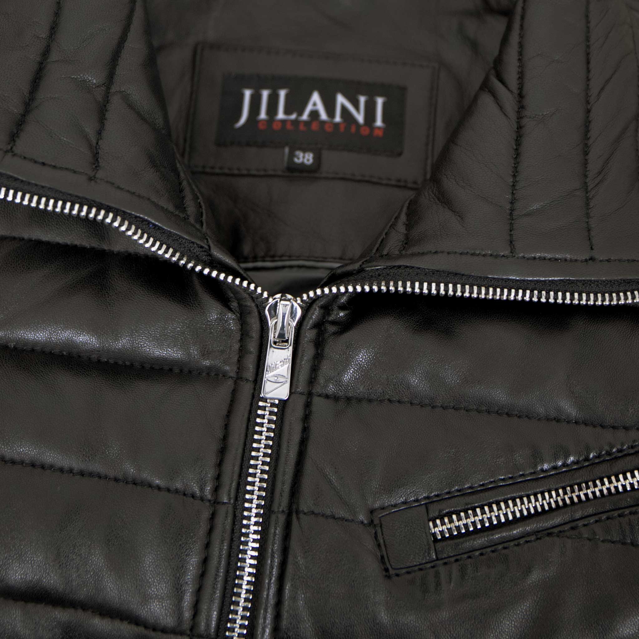 Jilani Collection - Damen Lederjacke Steppjacke Lammnappa schwarz