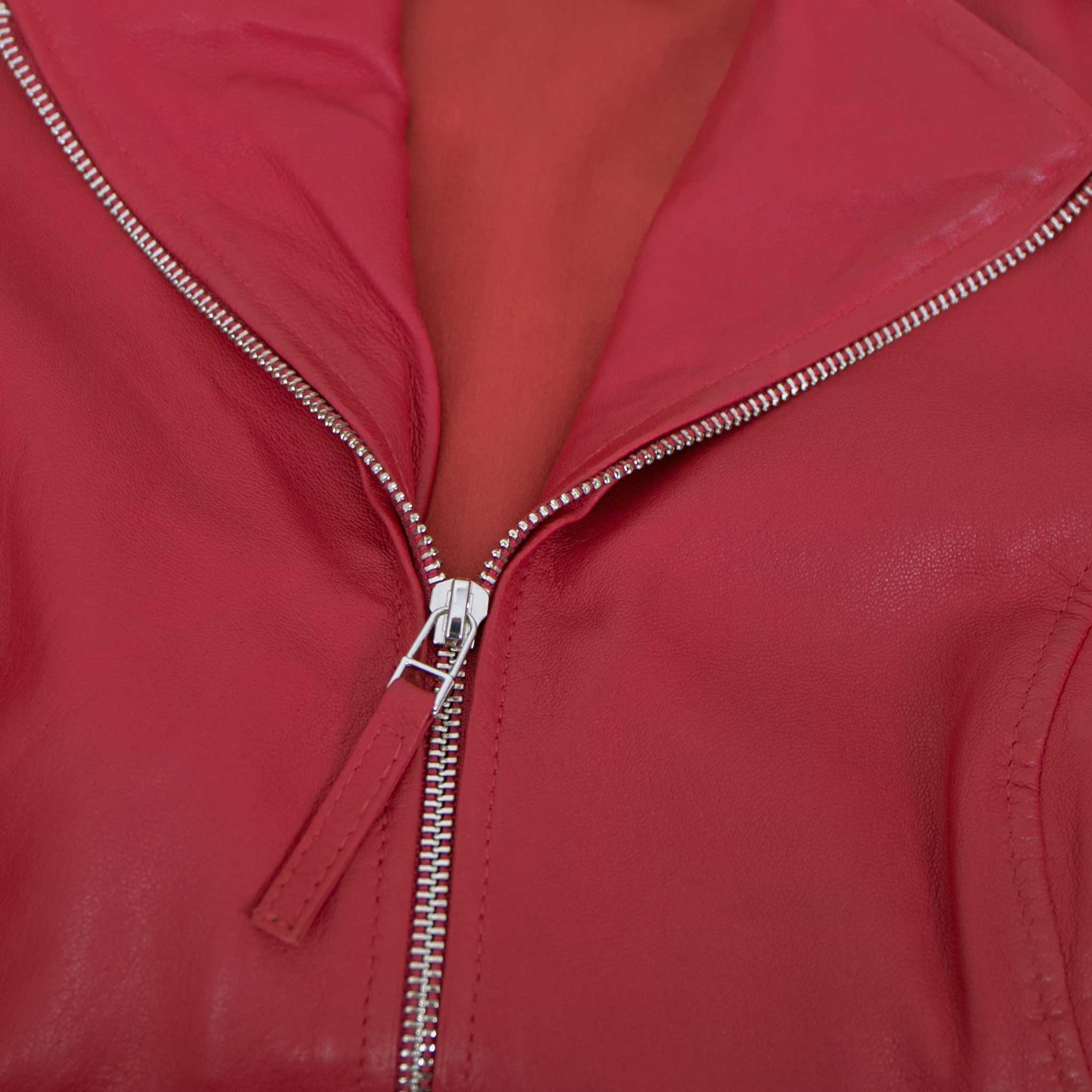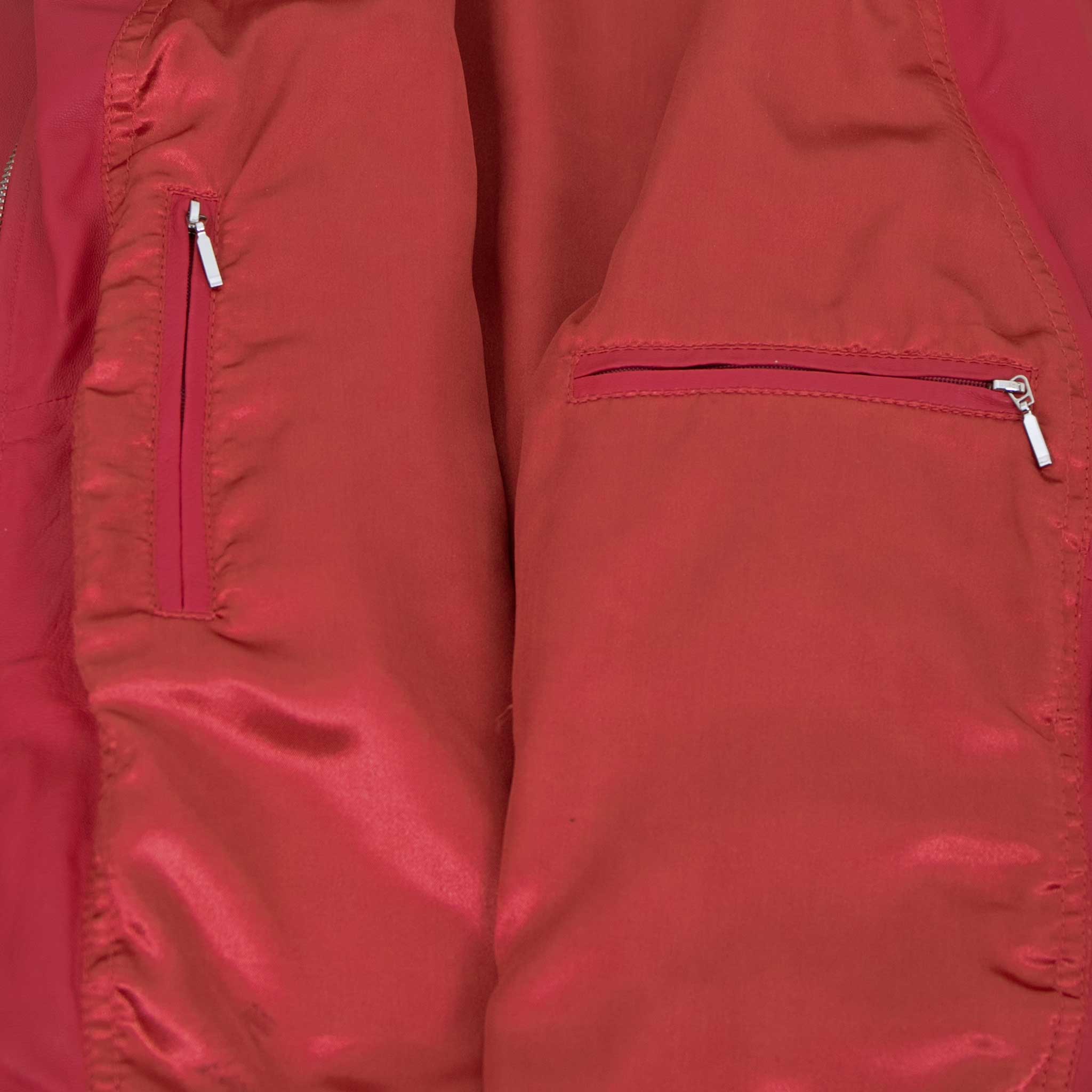 Zwei seitliche Reißverschlusstaschen bieten praktischen Stauraum für Ihre Wertsachen und unterstreichen zugleich den lässigen, urbanen Stil. Ein seitlicher Dehnbund sorgt für eine optimale Passform und maximale Bewegungsfreiheit – ideal für den Alltag ebenso wie für spontane Ausflüge. Vielseitig kombinierbar mit Jeans, Rock oder Kleid, ist diese Lederjacke ein echtes Must-have, das jedem Outfit eine individuelle und selbstbewusste Note verleiht.