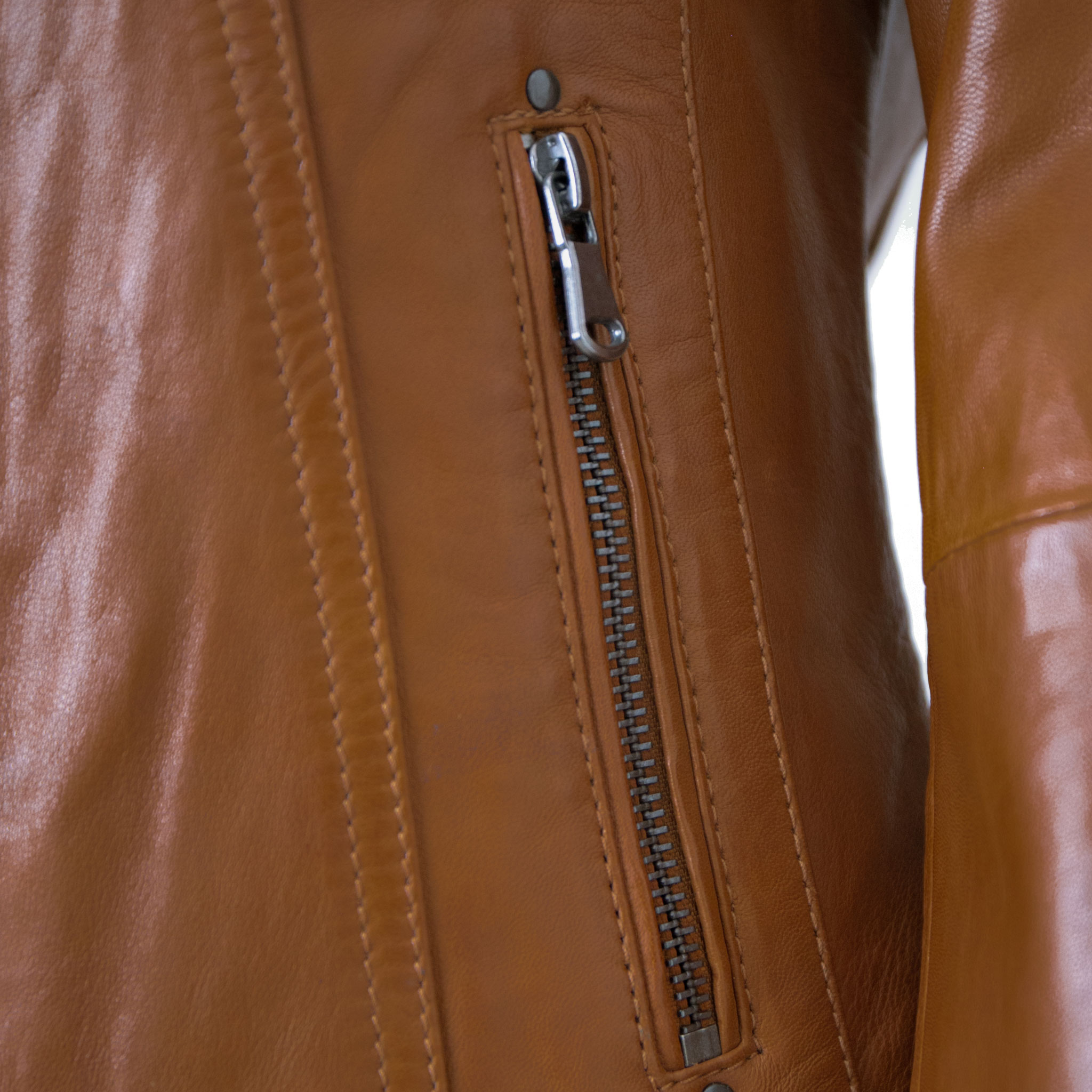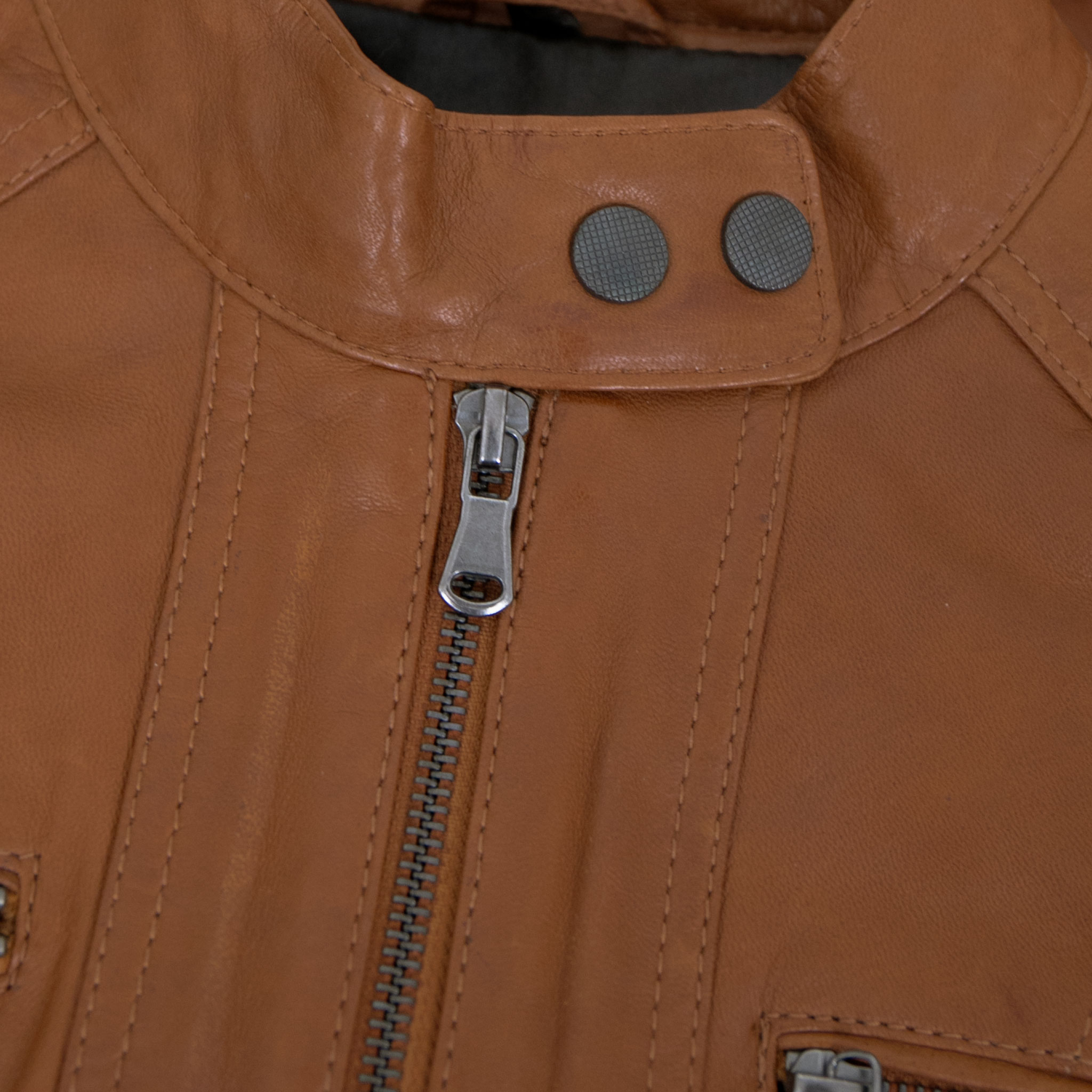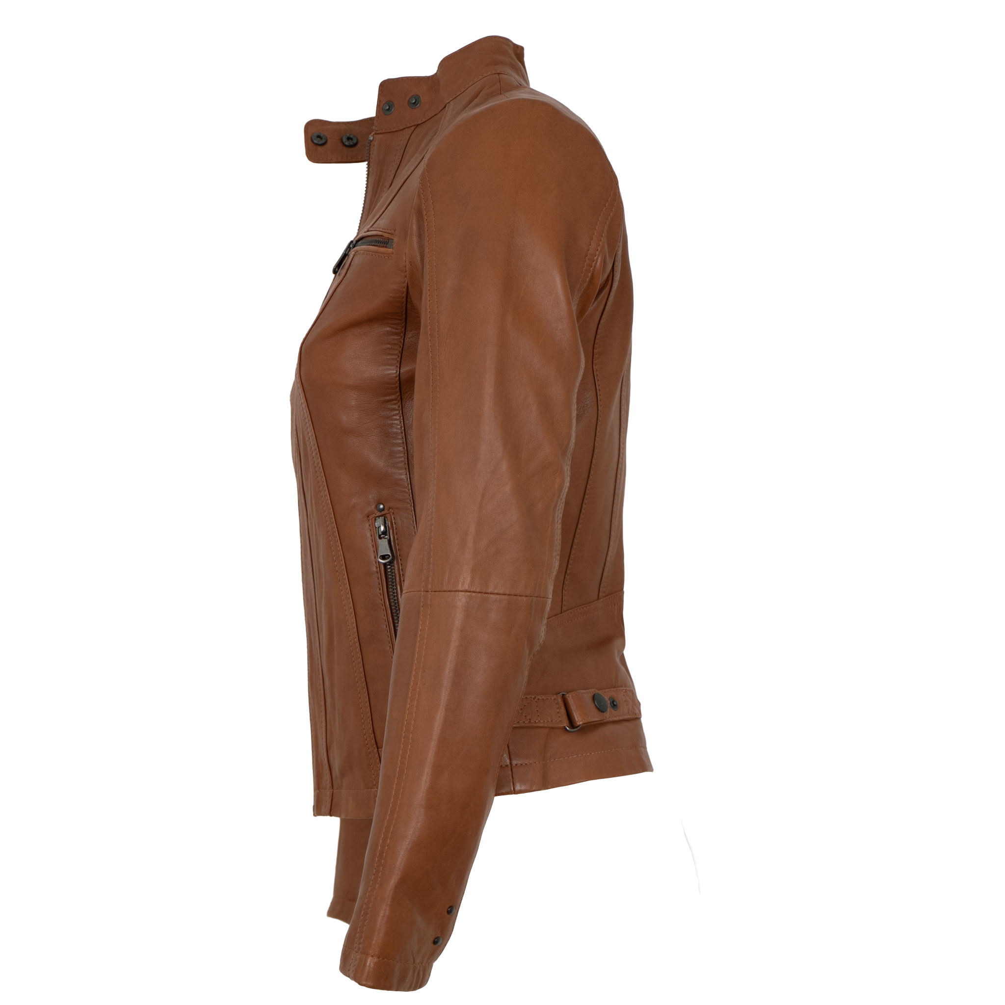 Die hochwertige Lederqualität begeistert zudem mit einer edlen, antiken Optik, die dem Design einen individuellen Charakter verleiht. Insgesamt vier Außentaschen mit Reißverschluss bieten Platz um wichtige Dinge sicher und griffbereit unterzubringen. Ob lässig kombiniert oder elegant gestylt – diese Lederjacke passt sich mühelos jedem Outfit an und wird schnell zum unverzichtbaren Lieblingsstück.