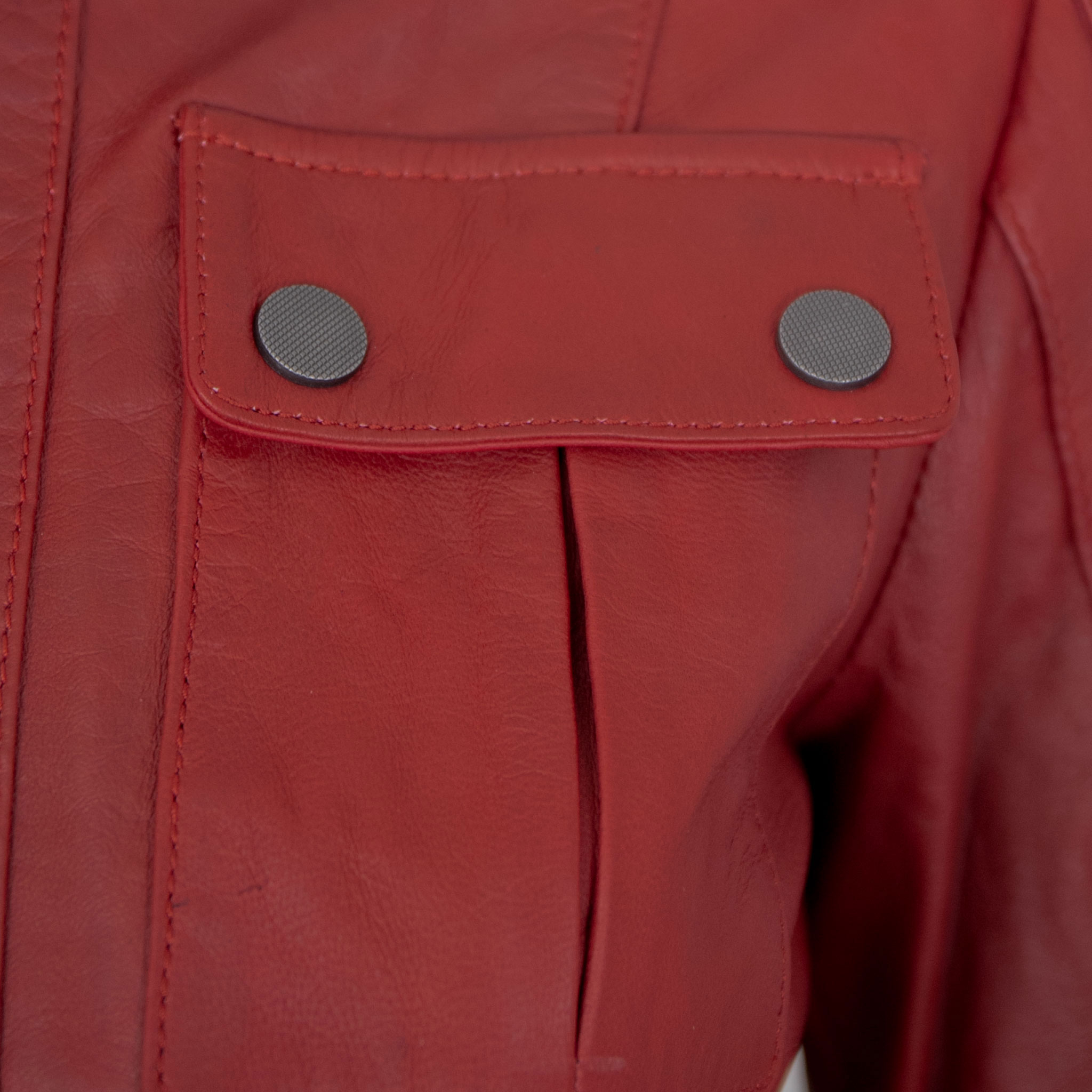 Sportive Details setzen moderne Akzente: Die aufgesetzten Brusttaschen mit Patte unterstreichen den lässigen Look, während der Stehkragen mit Druckknopf-Riegel der Jacke eine markante Note verleiht. Dekorative Abnäher im Schulterbereich runden das Design harmonisch ab und betonen den dynamischen Stil. Ob casual kombiniert oder als stilvoller Hingucker – diese Lederjacke verbindet zeitlose Eleganz mit sportivem Flair und wird schnell zum vielseitigen Lieblingsstück in jeder Garderobe.