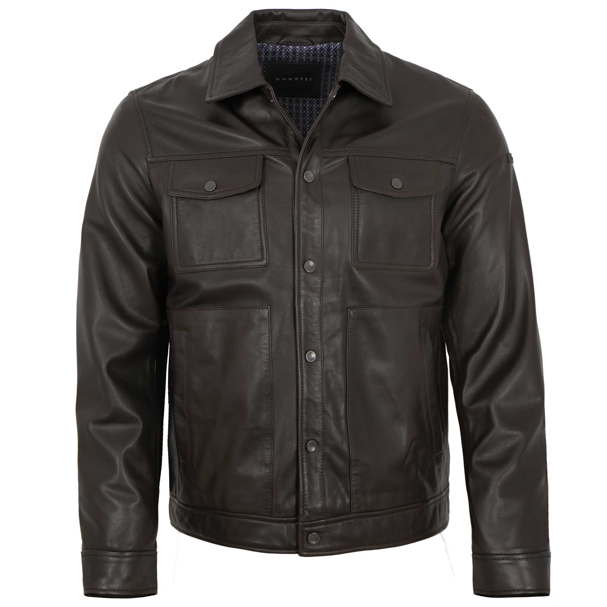 Bugatti - Herren Lederjacke Fieldjacket-Schnitt Lammnappa dunkelbraun