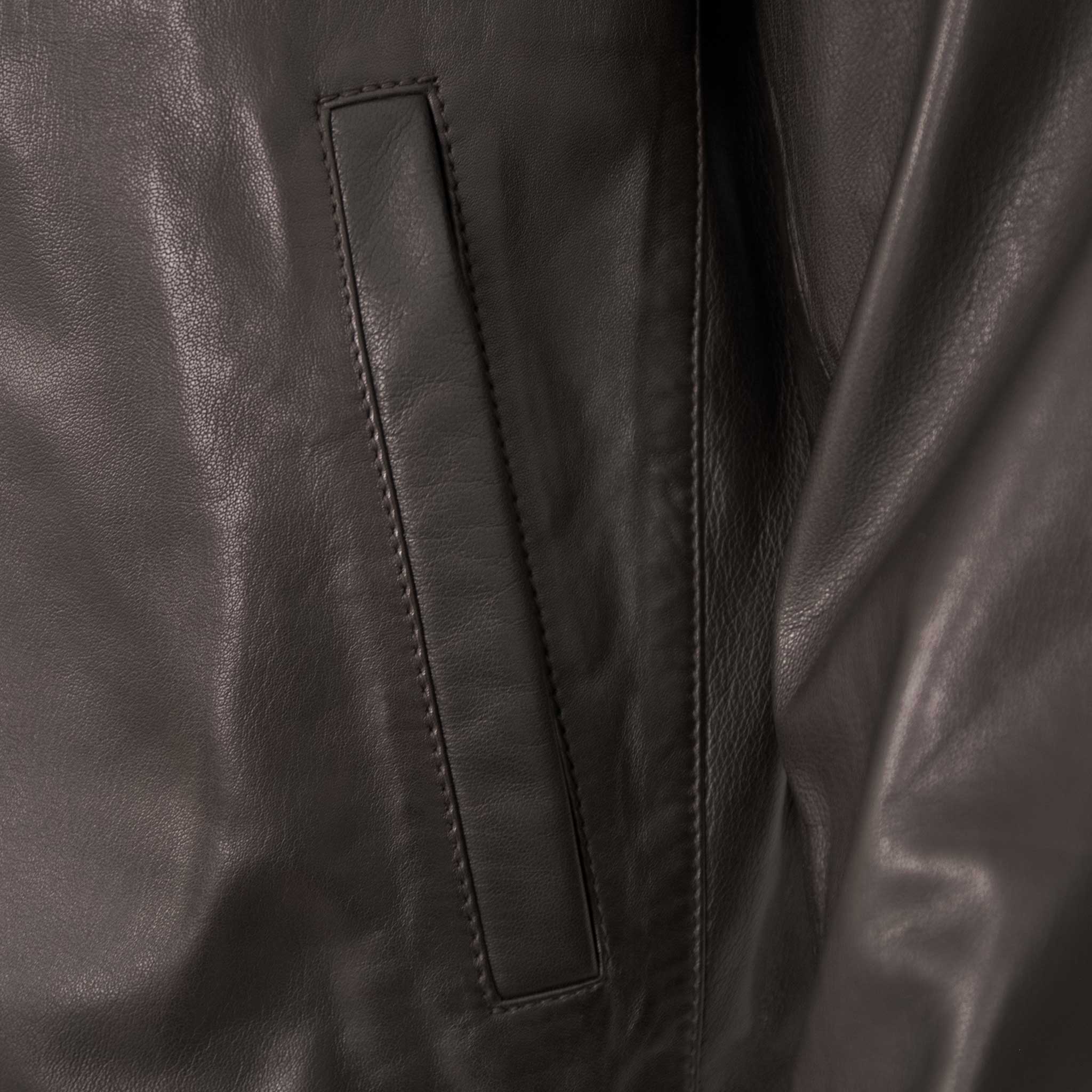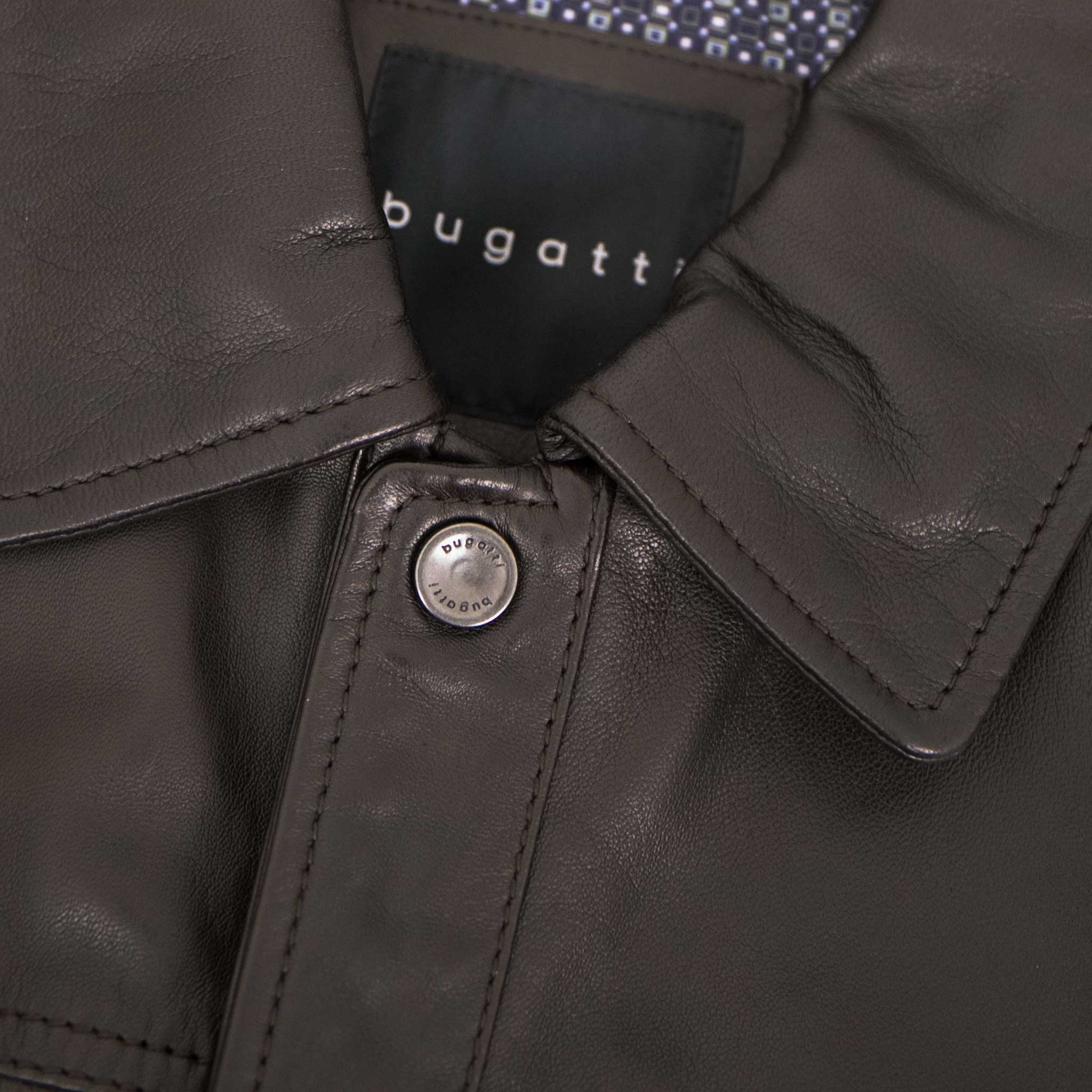 Die markante Anordnung der Taschen und der durchgehende Druckknopfverschluss sind charakteristisch für diesen robusten und stilvollen Schnitt. Gefertigt aus geschmeidigem, hochwertigem 100 % Lammnappa, besticht die Jacke durch ihre angenehme Haptik und lässt sich fantastisch tragen. Diese Lederjacke ist der Inbegriff von zeitloser Eleganz und funktionalem Design.