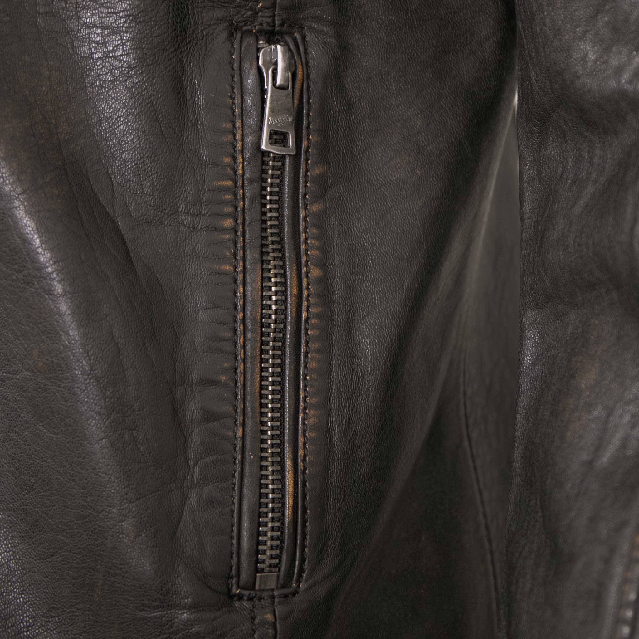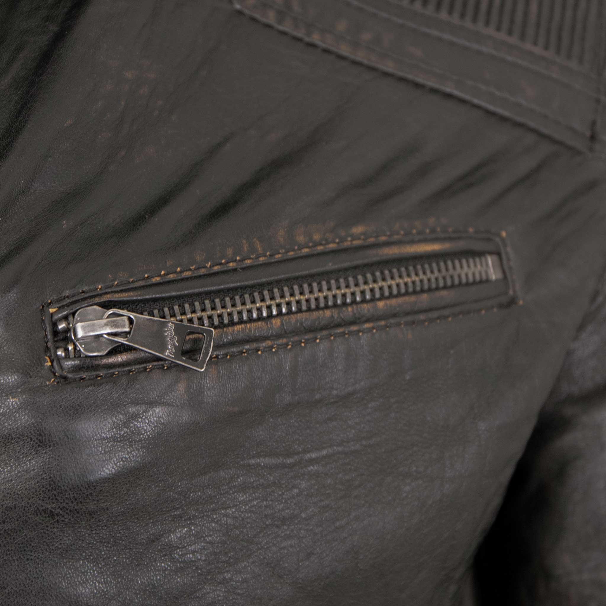 Das Leder dieser Lederjacke wurde in einem aufwändigen Verfahren nach der Färbung gewaschen, um den speziellen „Vintage Washed Look“ und den einzigartigen softigen Griff zu erzielen. Farbabweichungen (sog. „Fading“) und Schattierungen im Leder sind typische Merkmale und kennzeichnen den speziellen Look dieser Lederjacke. Die Veredelung dieser Lederjacke macht sie zu einem wertvollen Einzelstück.