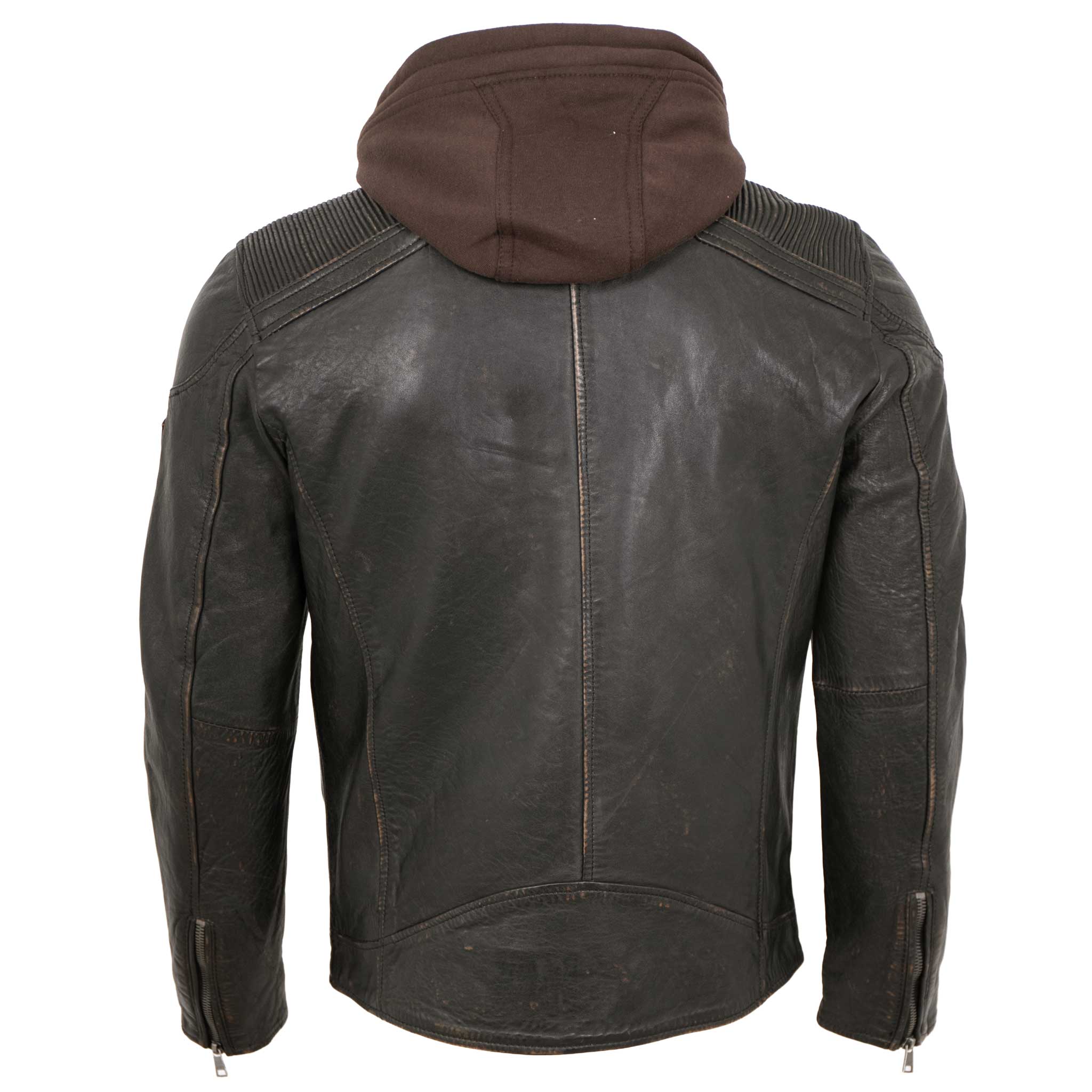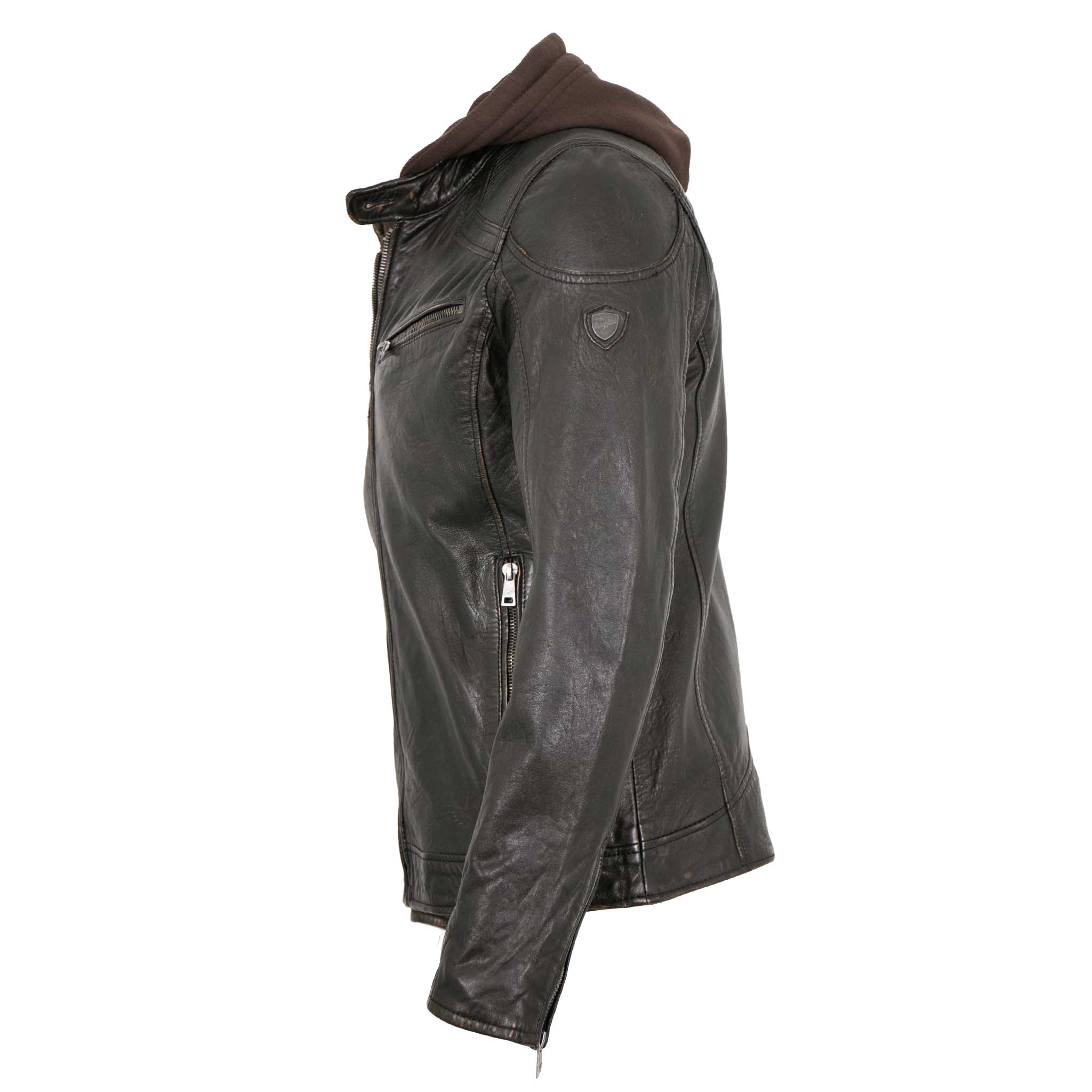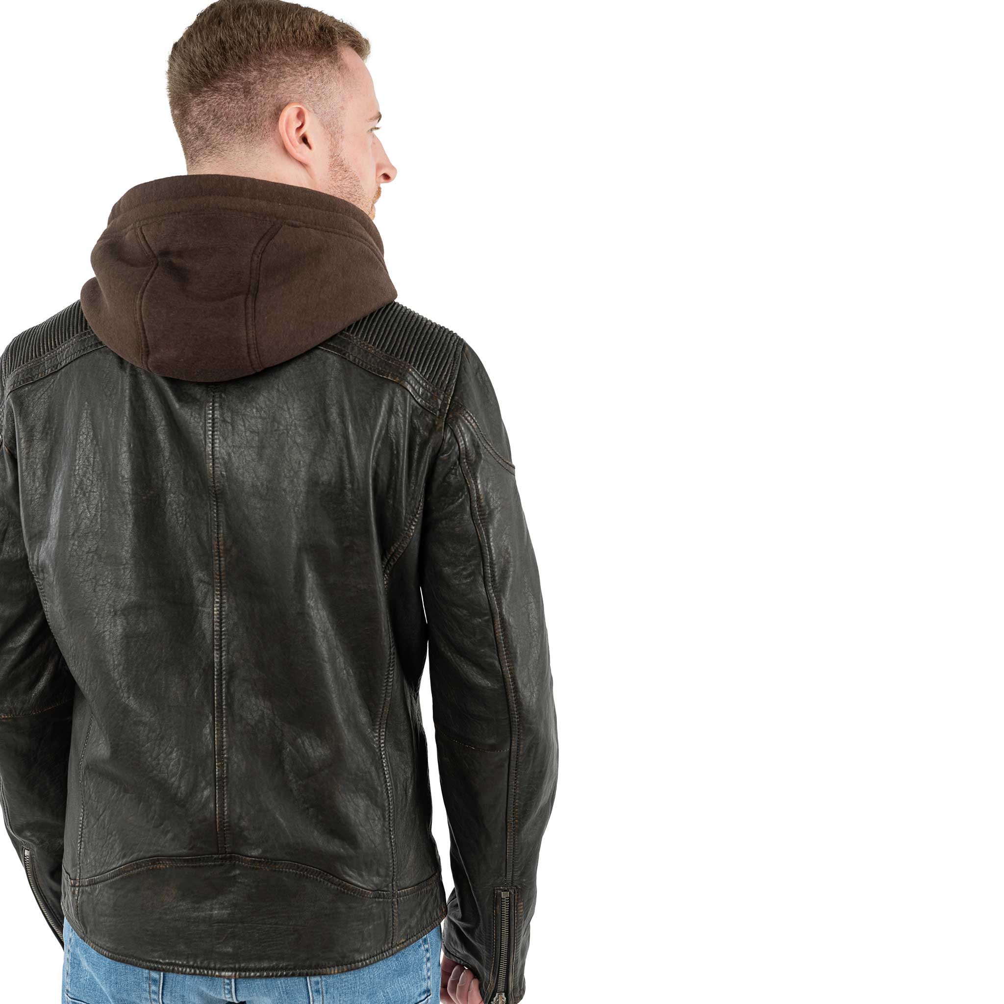 Diese markante Lederjacke ist der ideale Begleiter für Männer, die einen authentischen und zugleich praktischen Style suchen. Gefertigt aus hochwertigem, leicht strukturiertem 100 % echtem Lammnappa, besticht sie durch ihren dezenten Vintage-Charakter und die durchdachten Details. Der integrierte Kapuzen-Einsatz verleiht der Jacke einen lässigen Layering-Look. Bei Bedarf kann dieser per Reißverschluss einfach entfernt werden und gibt die Möglichkeit diese Jacke auf ihr Outfit abzustimmen.