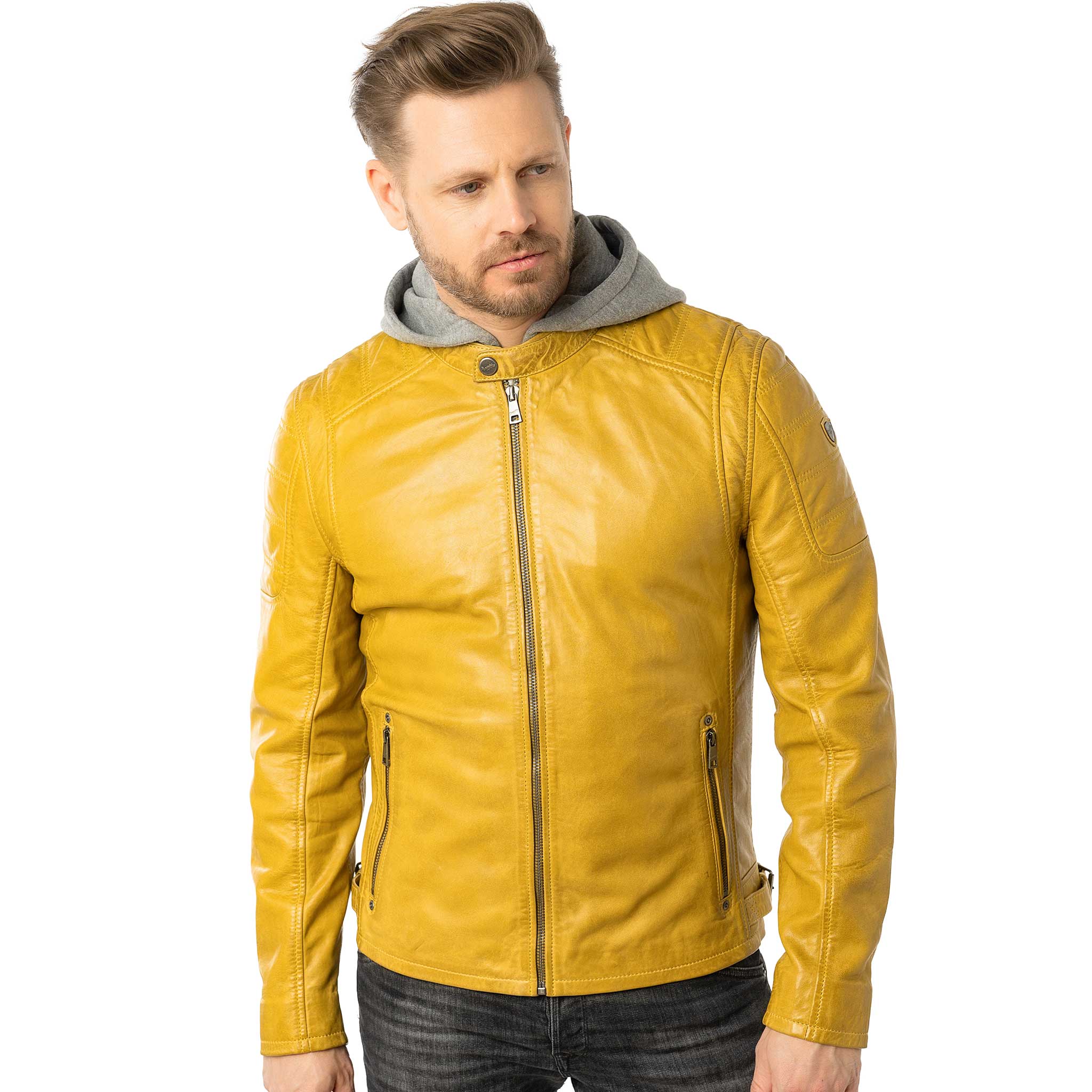 Mauritius - Herren Lederjacke Bikerjacke Lammnappa gelb