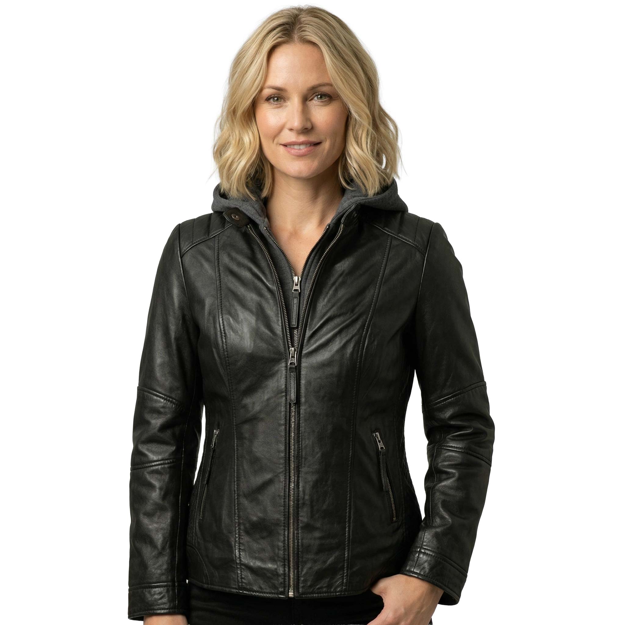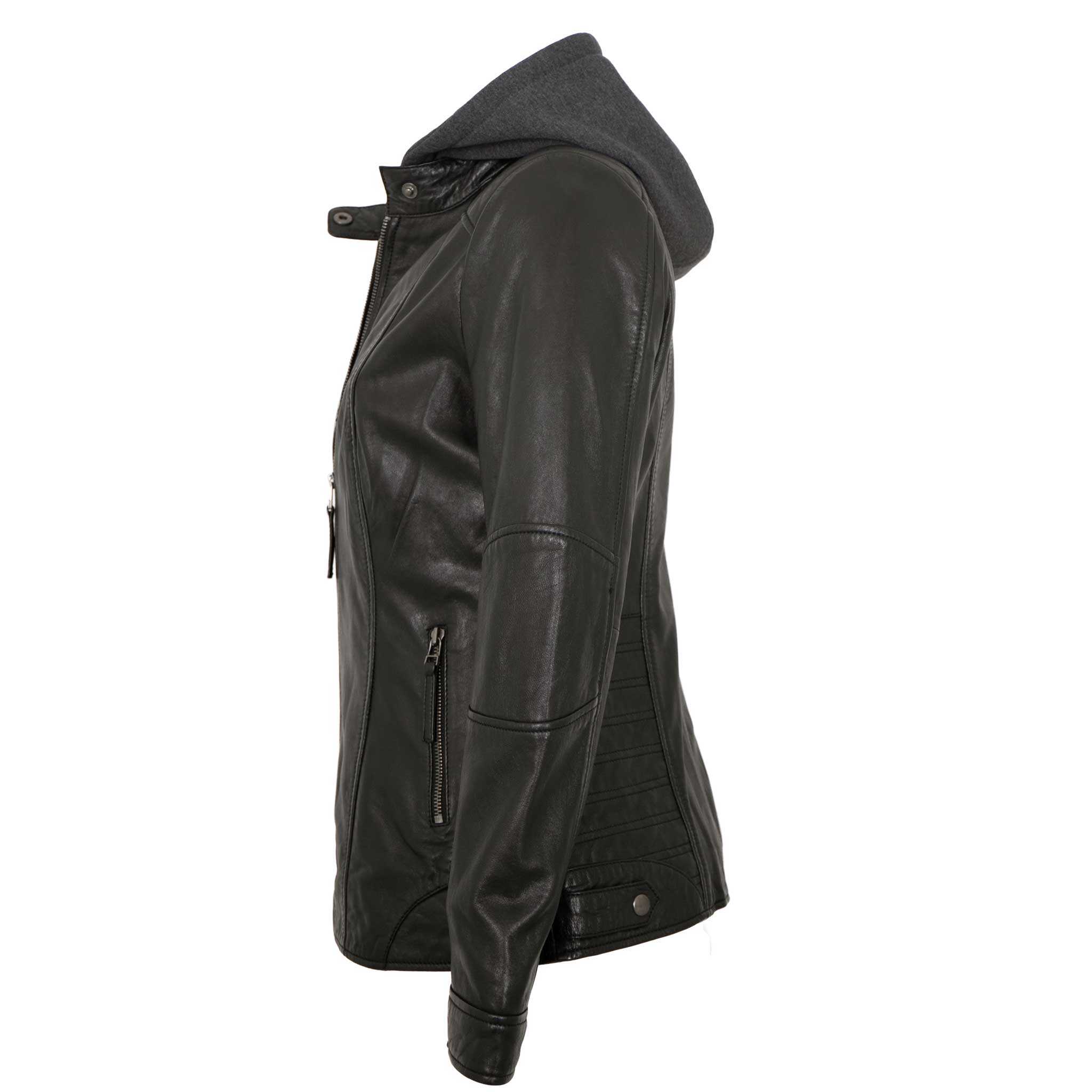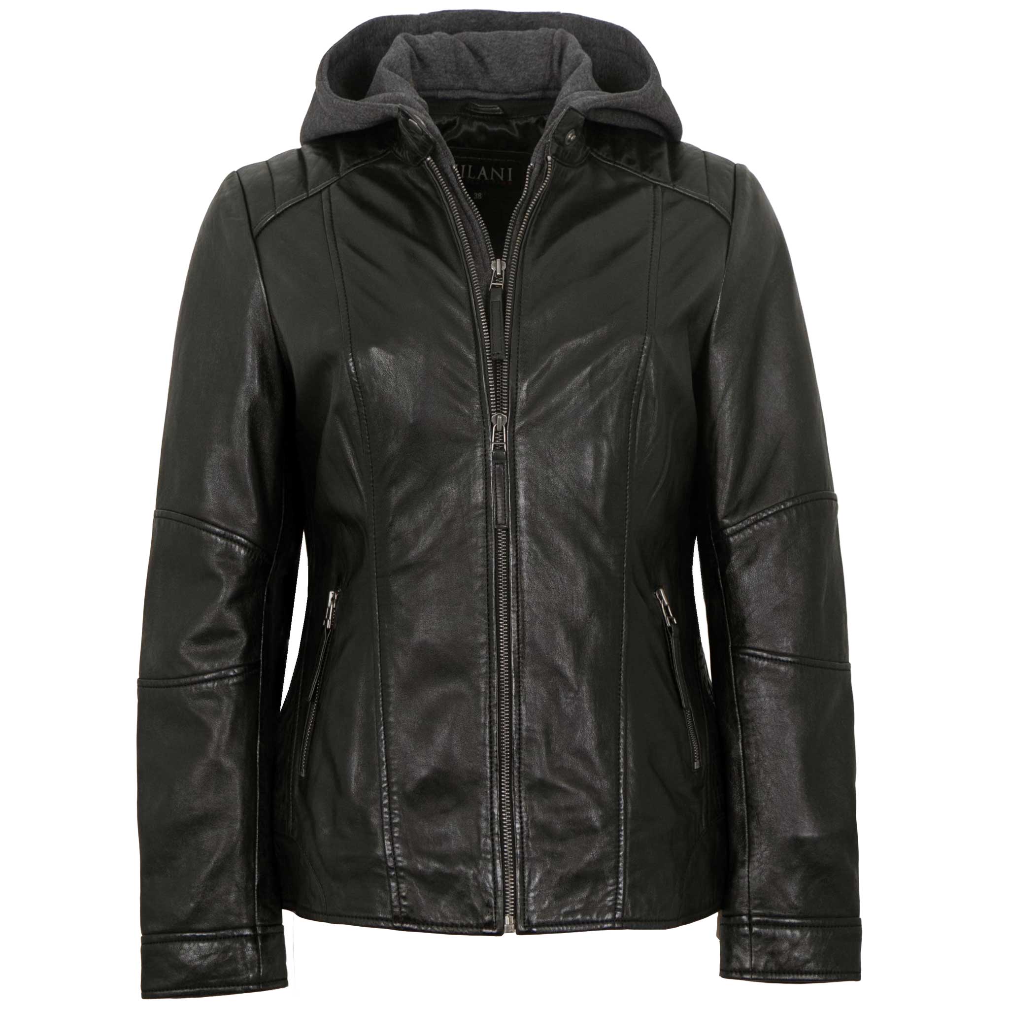 Jilani Collection - Damen Lederjacke Lammnappa Kapuze schwarz