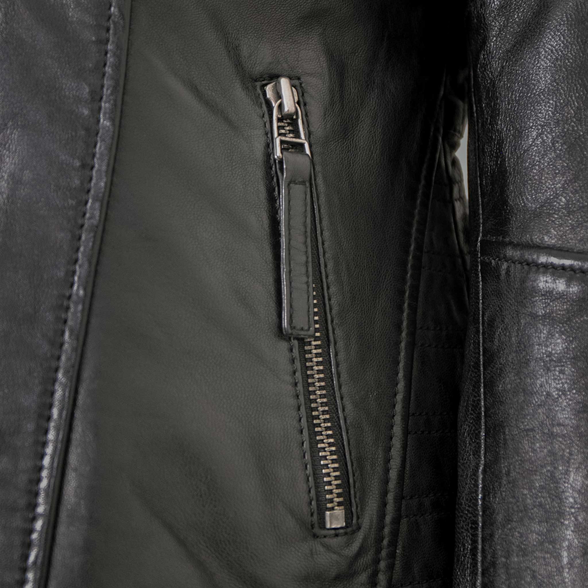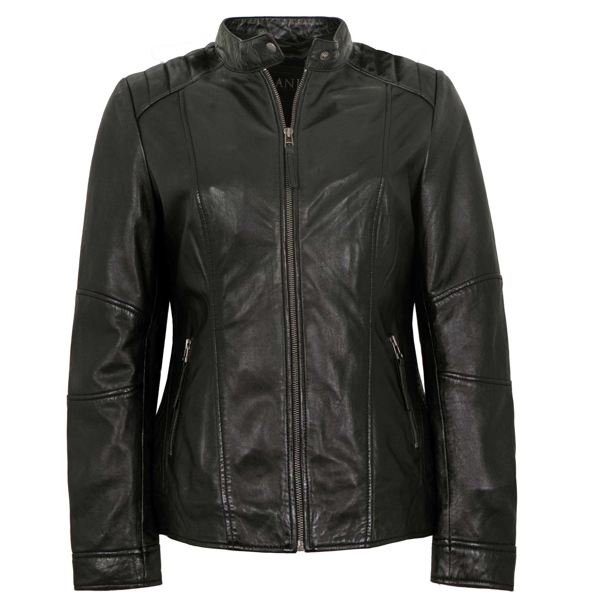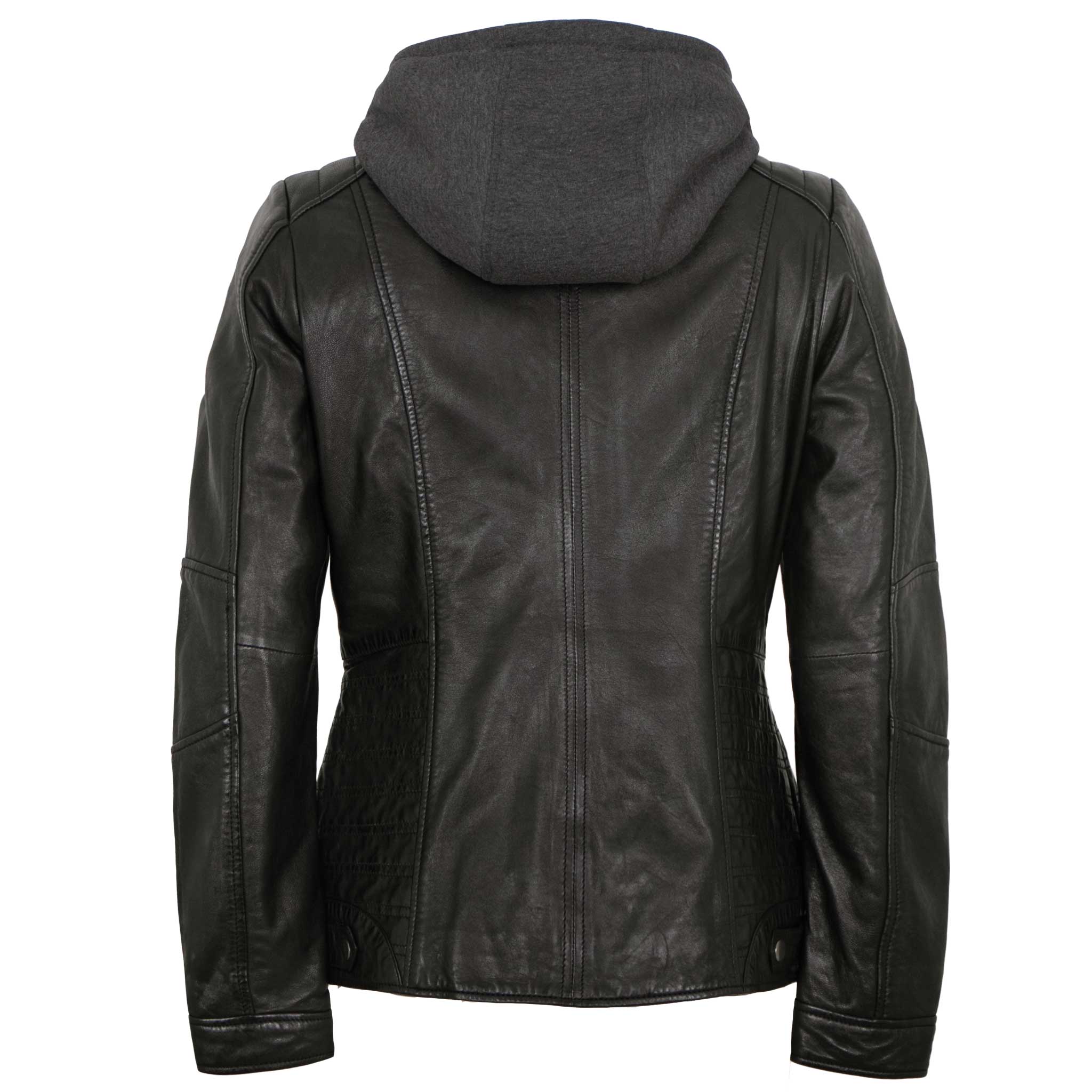 Jilani Collection - Damen Lederjacke Lammnappa Kapuze schwarz