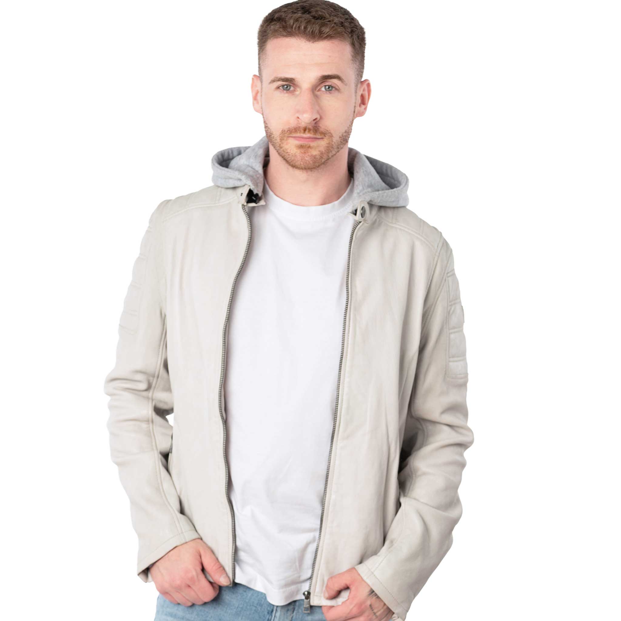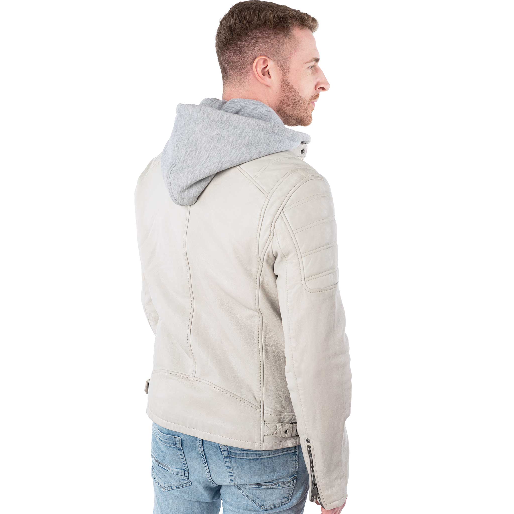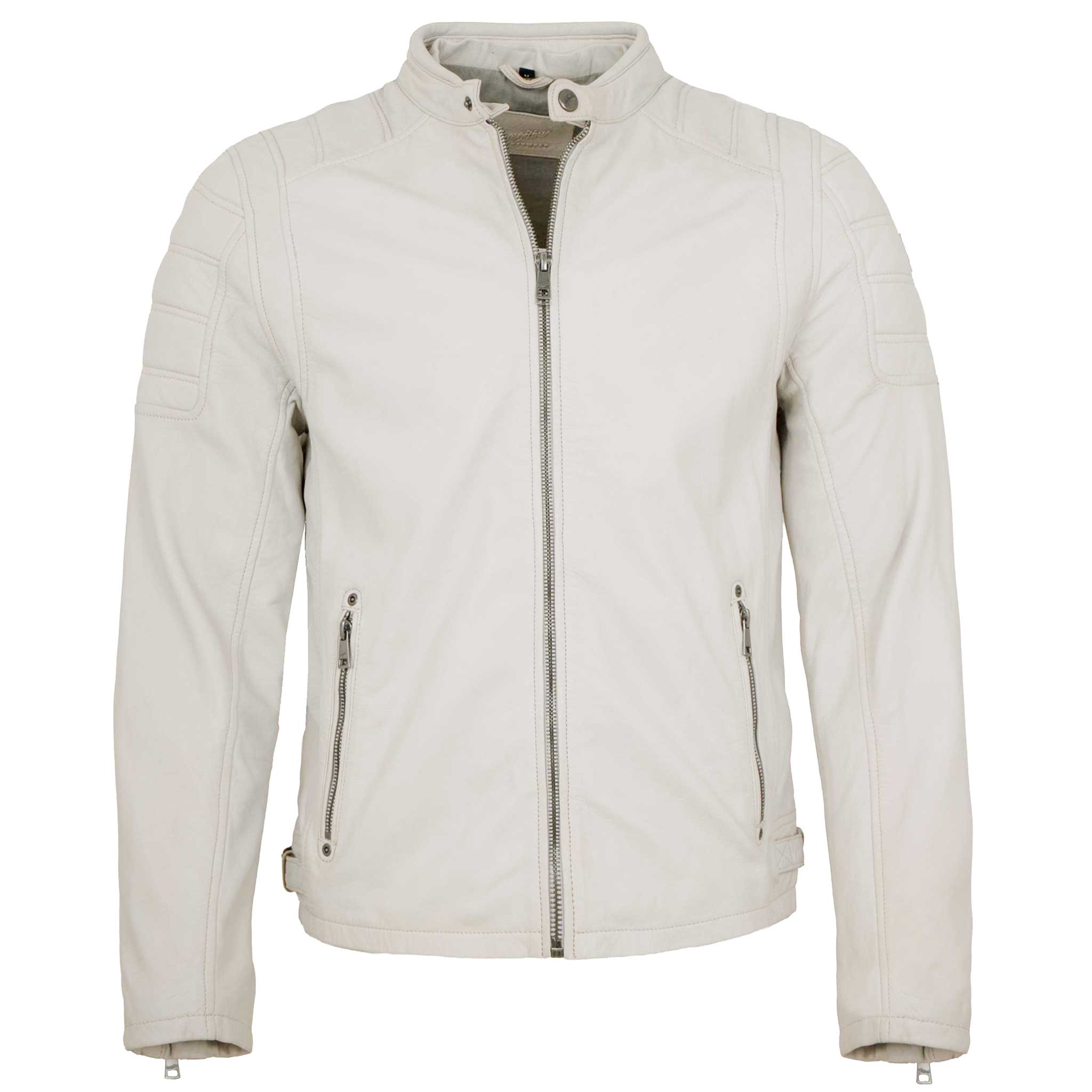 Mauritius - Herren Lederjacke Bikerjacke Lammnappa offwhite