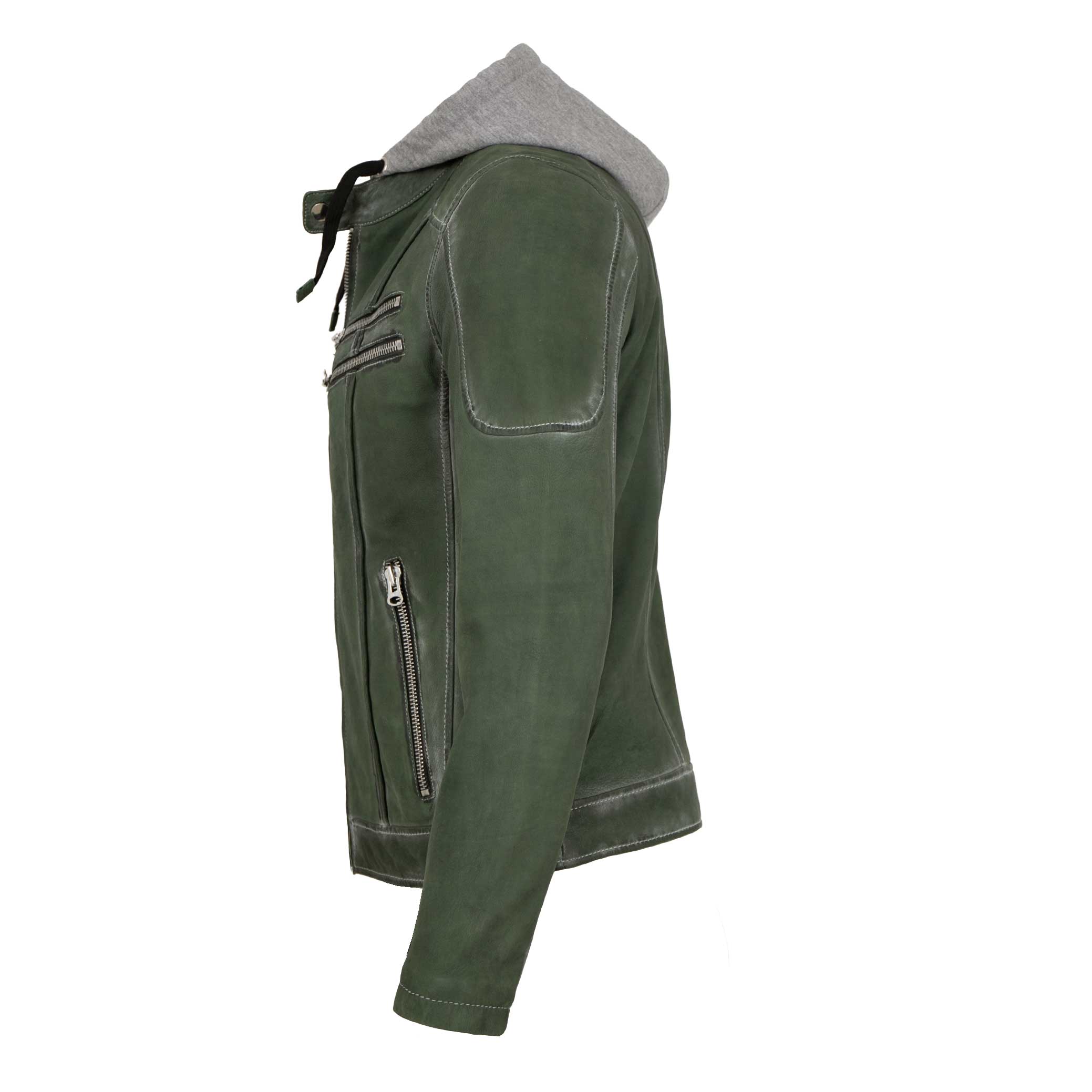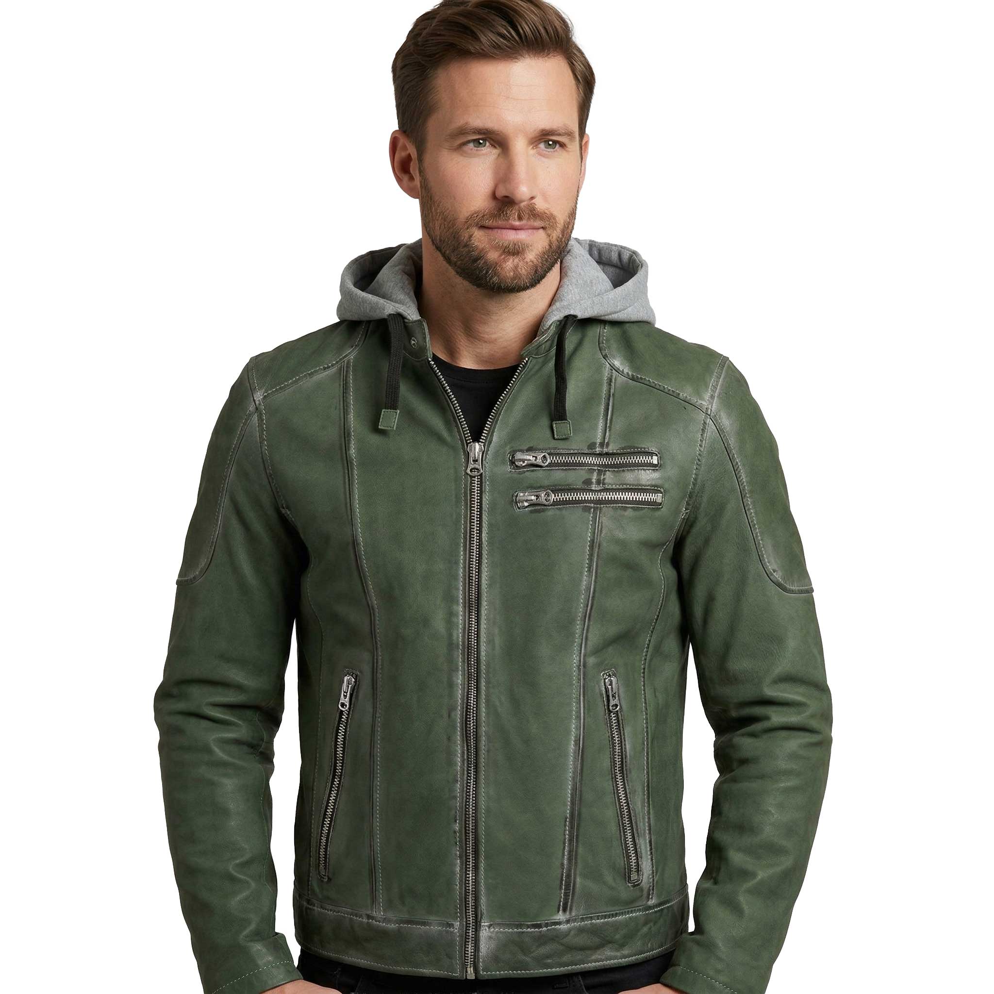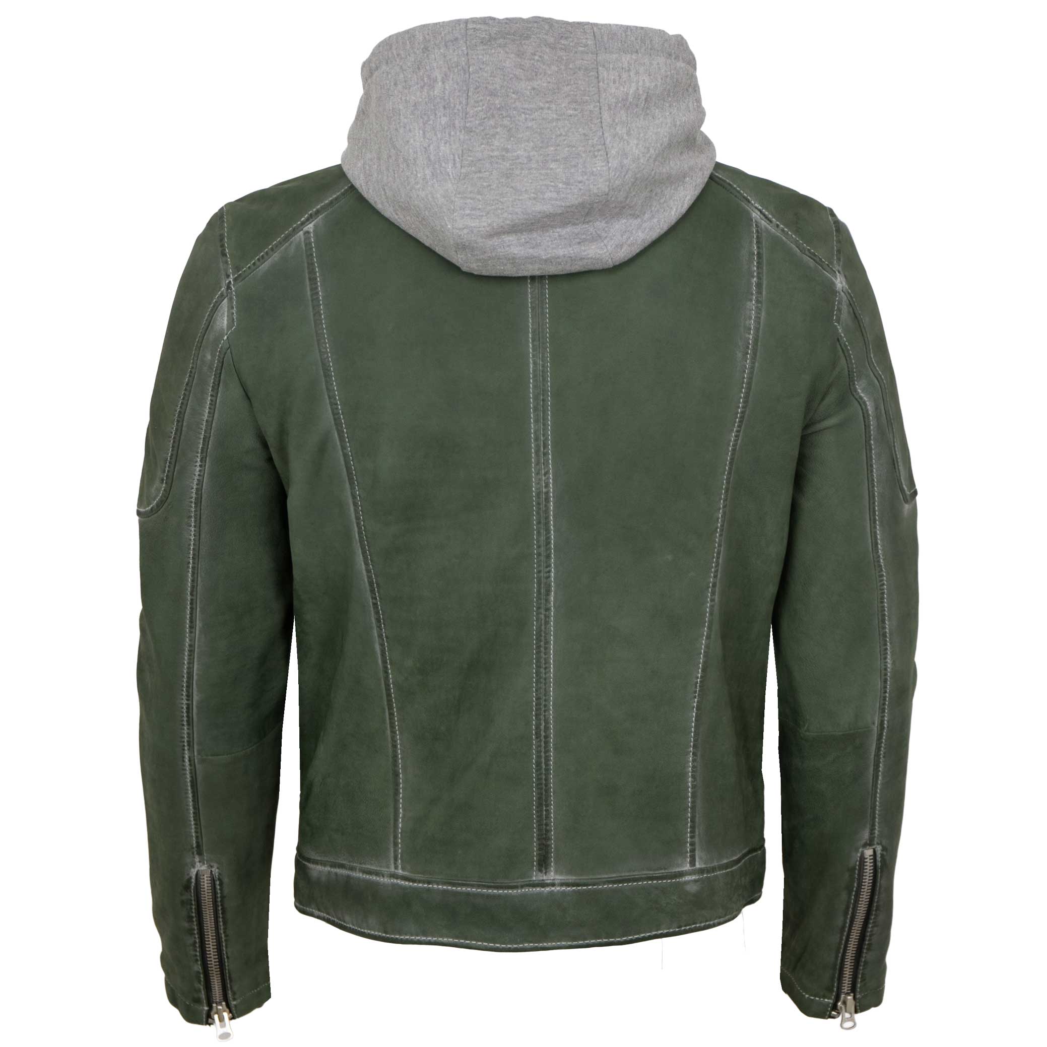 Punchball - Herren Lederjacke Kapuze Lammnubuk grün antik