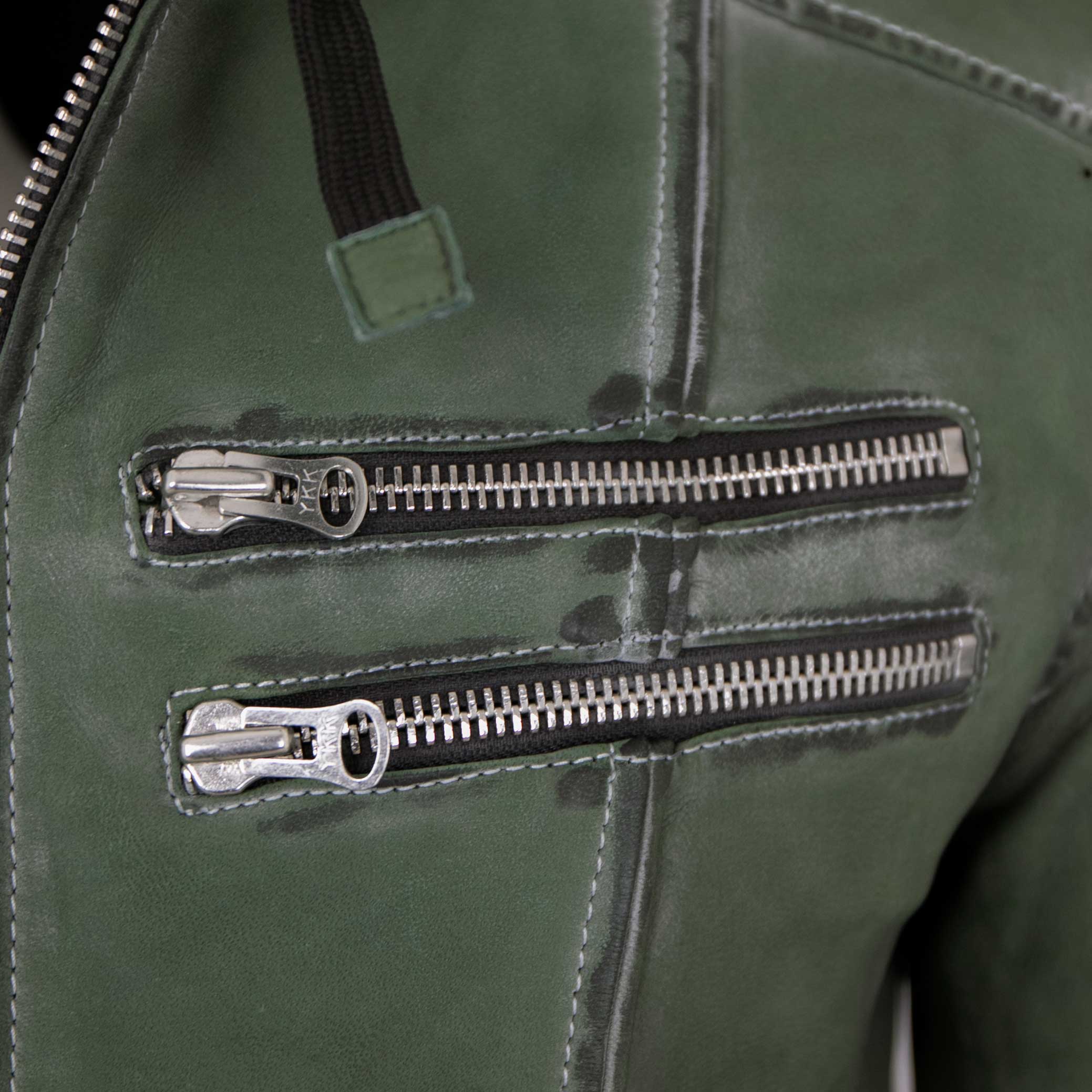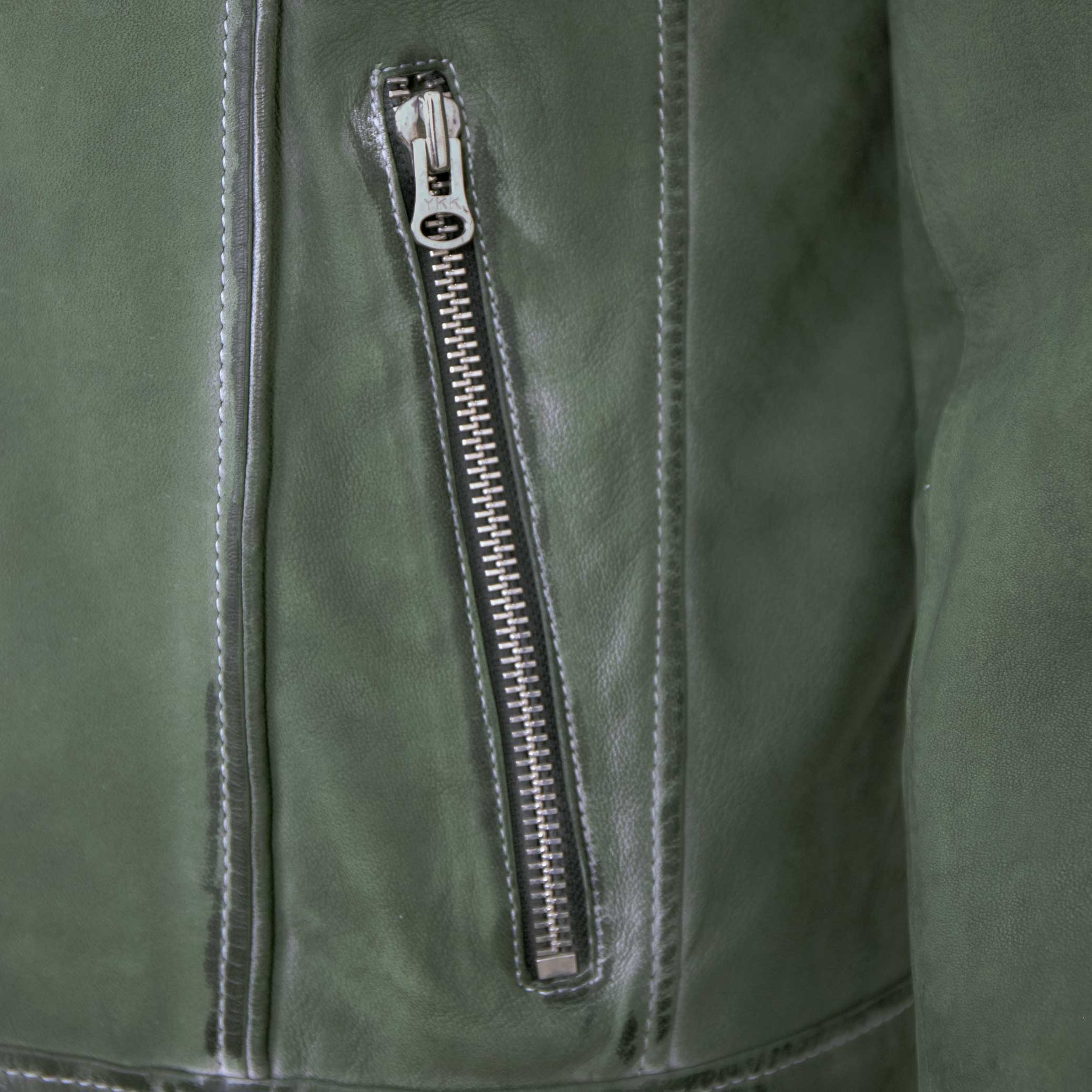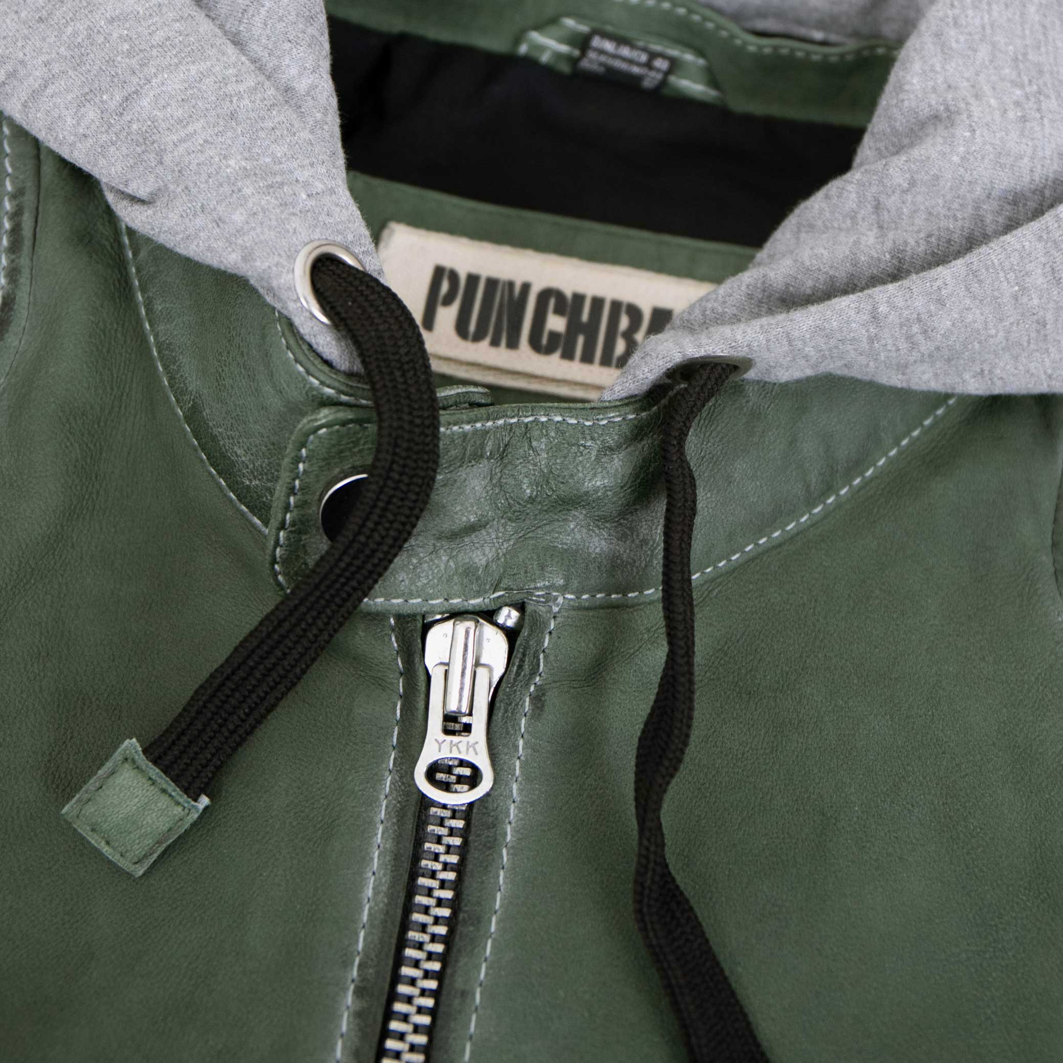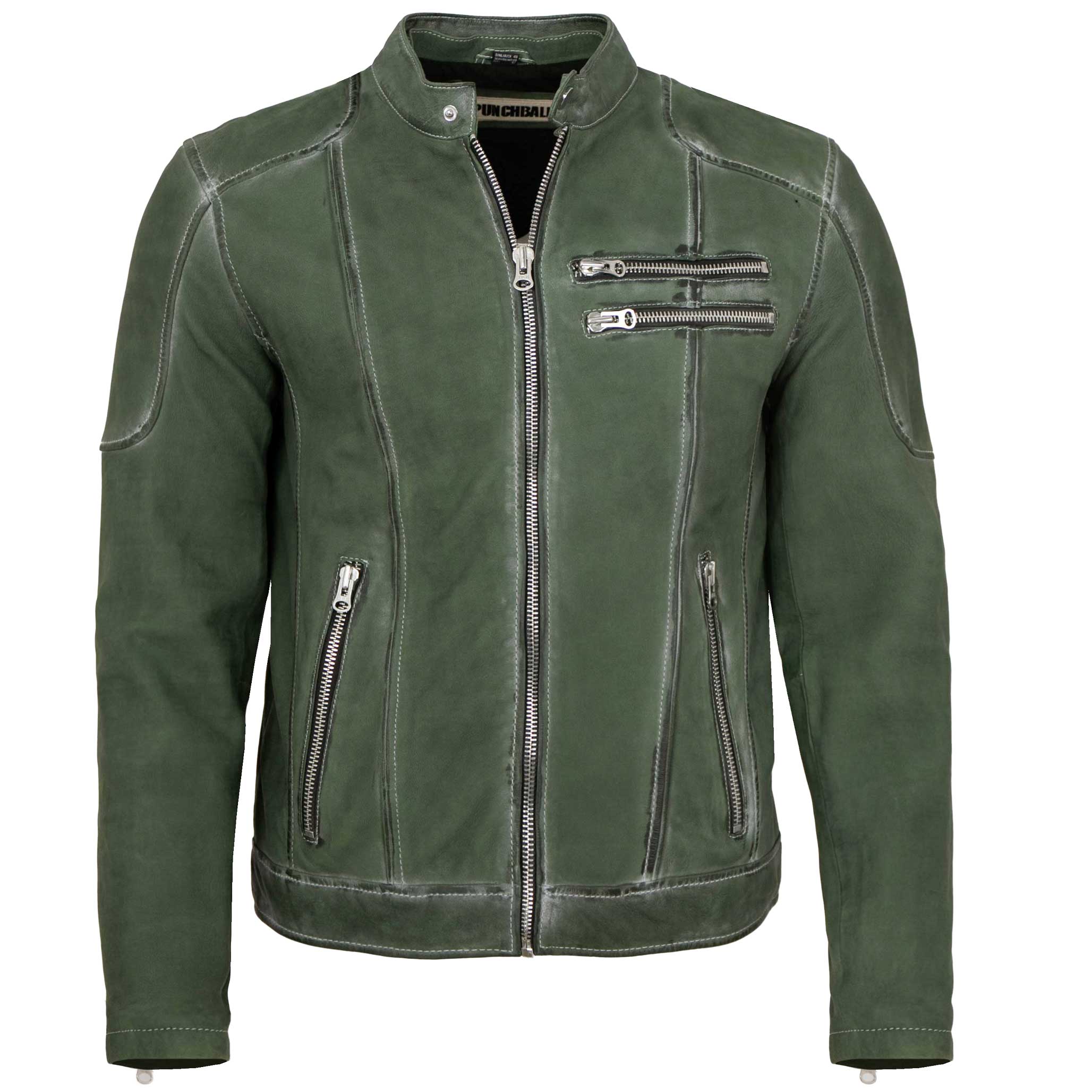 Punchball - Herren Lederjacke Kapuze Lammnubuk grün antik