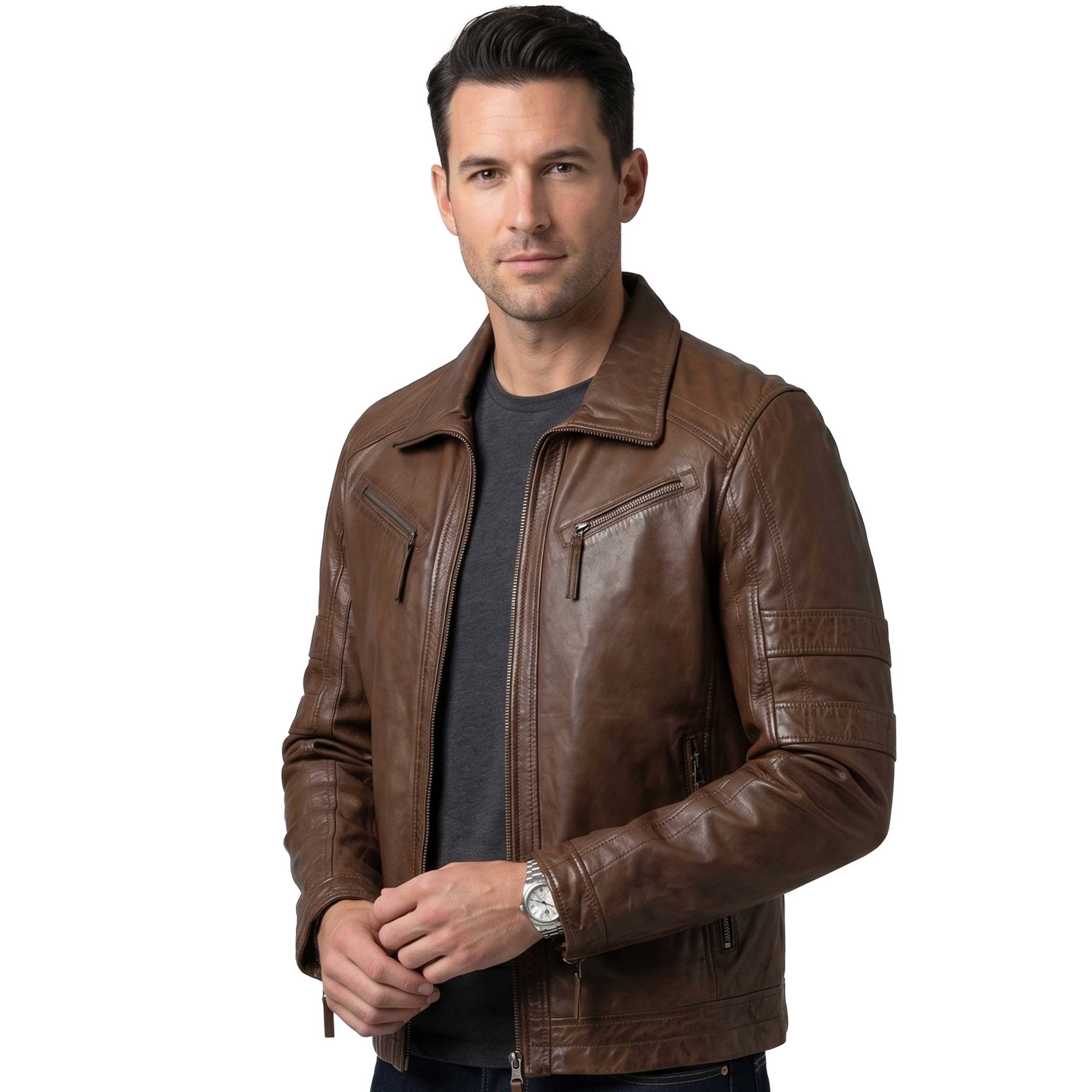 Jilani - Herren Lederjacke Lammnappa dark cognac