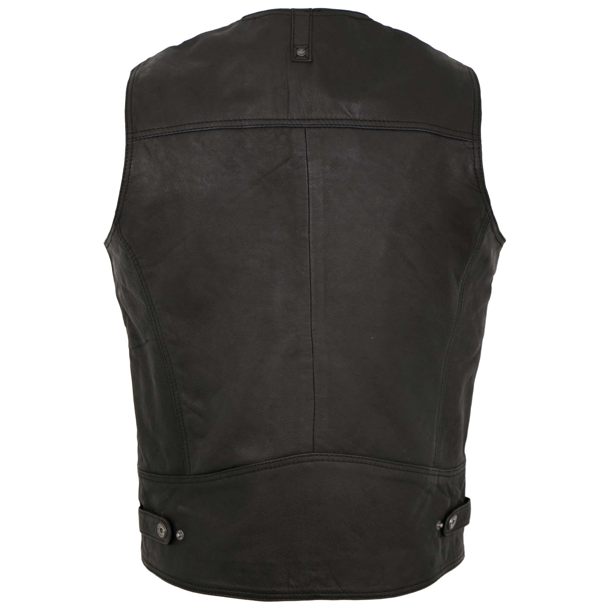 Vier praktische Außentaschen sowie zwei Innentaschen bieten ausreichend Platz für persönliche Essentials. Der elegante Knopfverschluss unterstreicht den klassischen Look, während die seitlichen Drucker-Riegel am Bund für eine optimale Passform sorgen und das harmonische Gesamtbild abrunden. Ob lässig kombiniert oder stilvoll getragen – diese Lederweste vereint Komfort, Funktionalität und maskuline Eleganz auf höchstem Niveau.