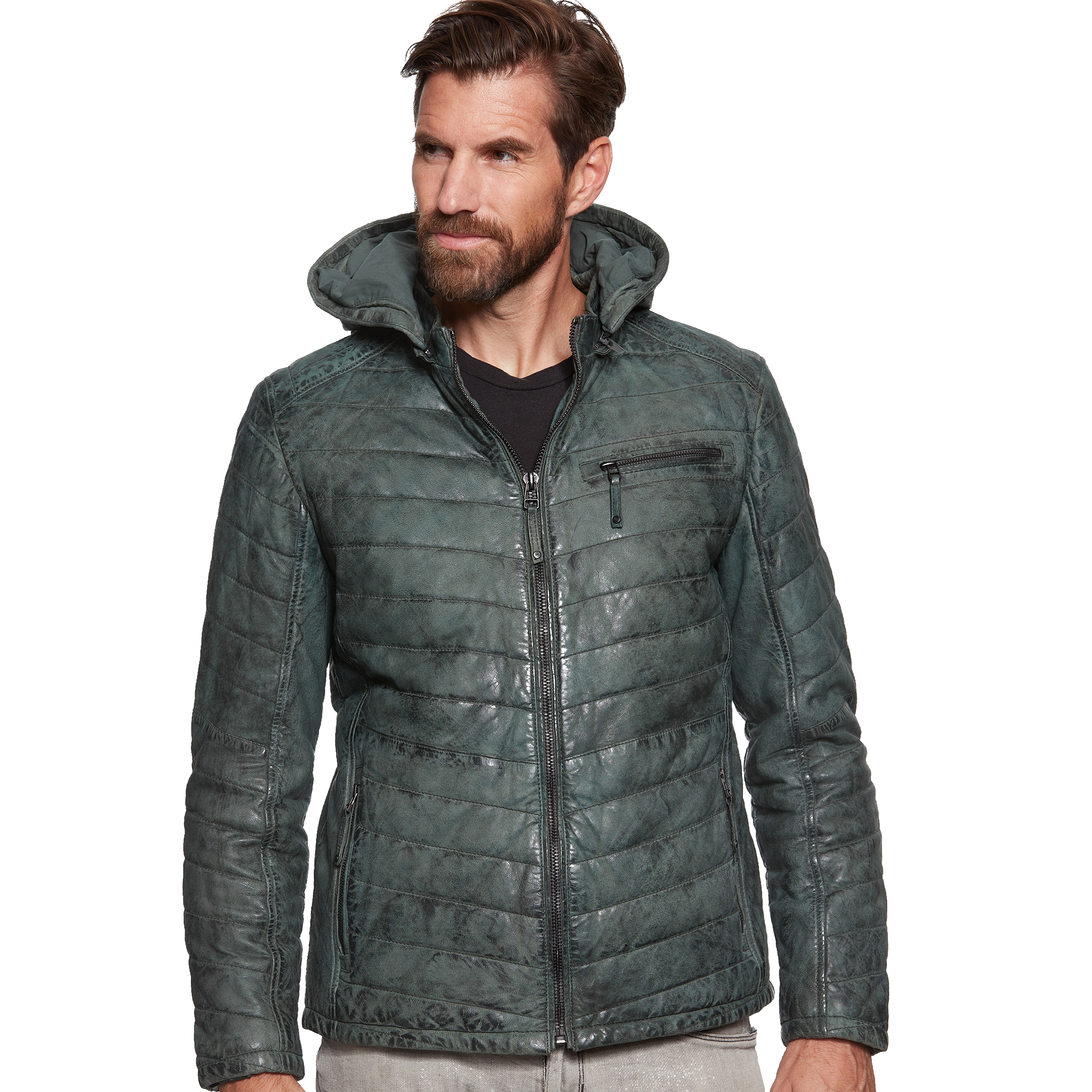 Jilani - Herren Lederjacke Steppjacke Kapuze Lammnubuk dunkelgrün